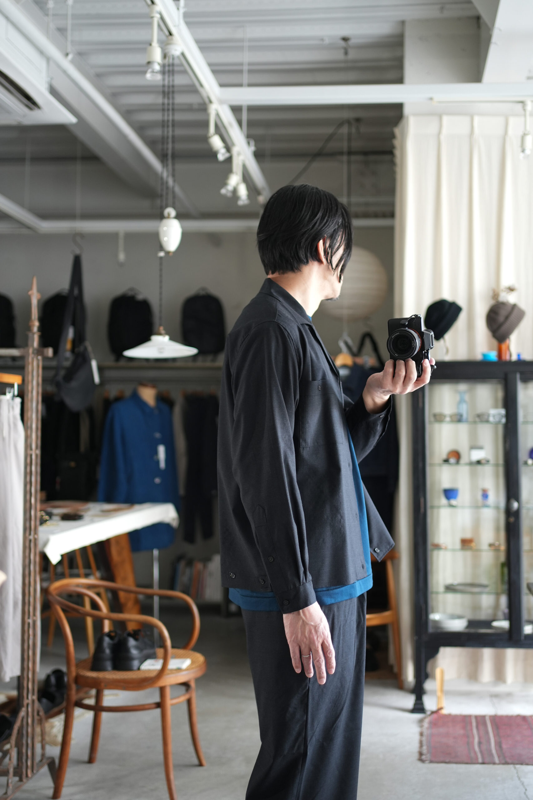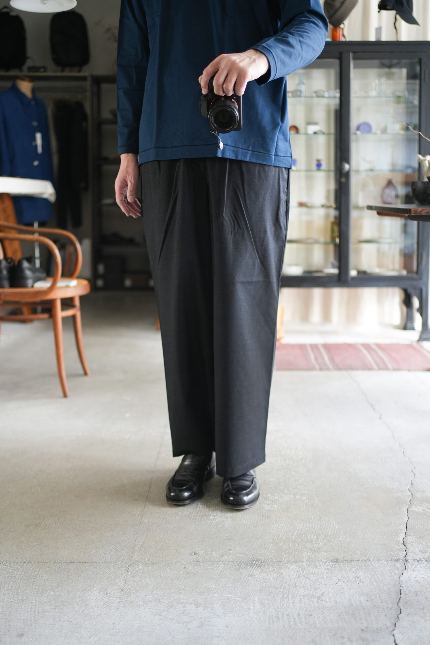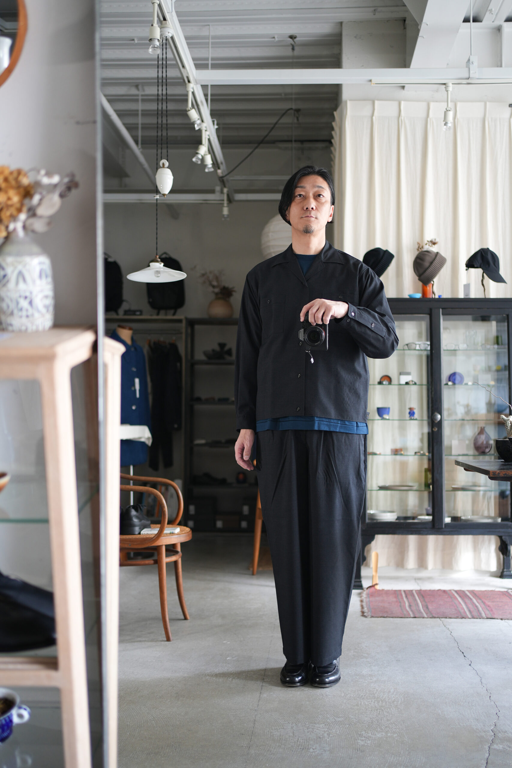 「marka」WOOL TROPICAL WASHER DOUBLE POCKET OPEN COLLAR SHIRT & WIDE CYLINDER FIT EASY PANTS