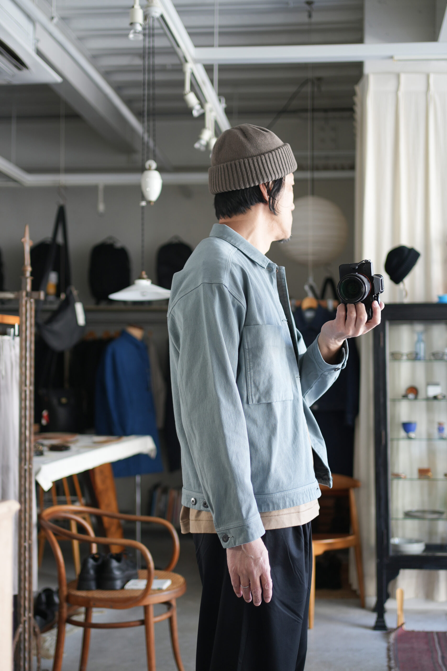 「crepuscule」定番の浅めフォルムニットキャップ、コットンアクリル素材で秋から春まで長く活躍できるモデルです。