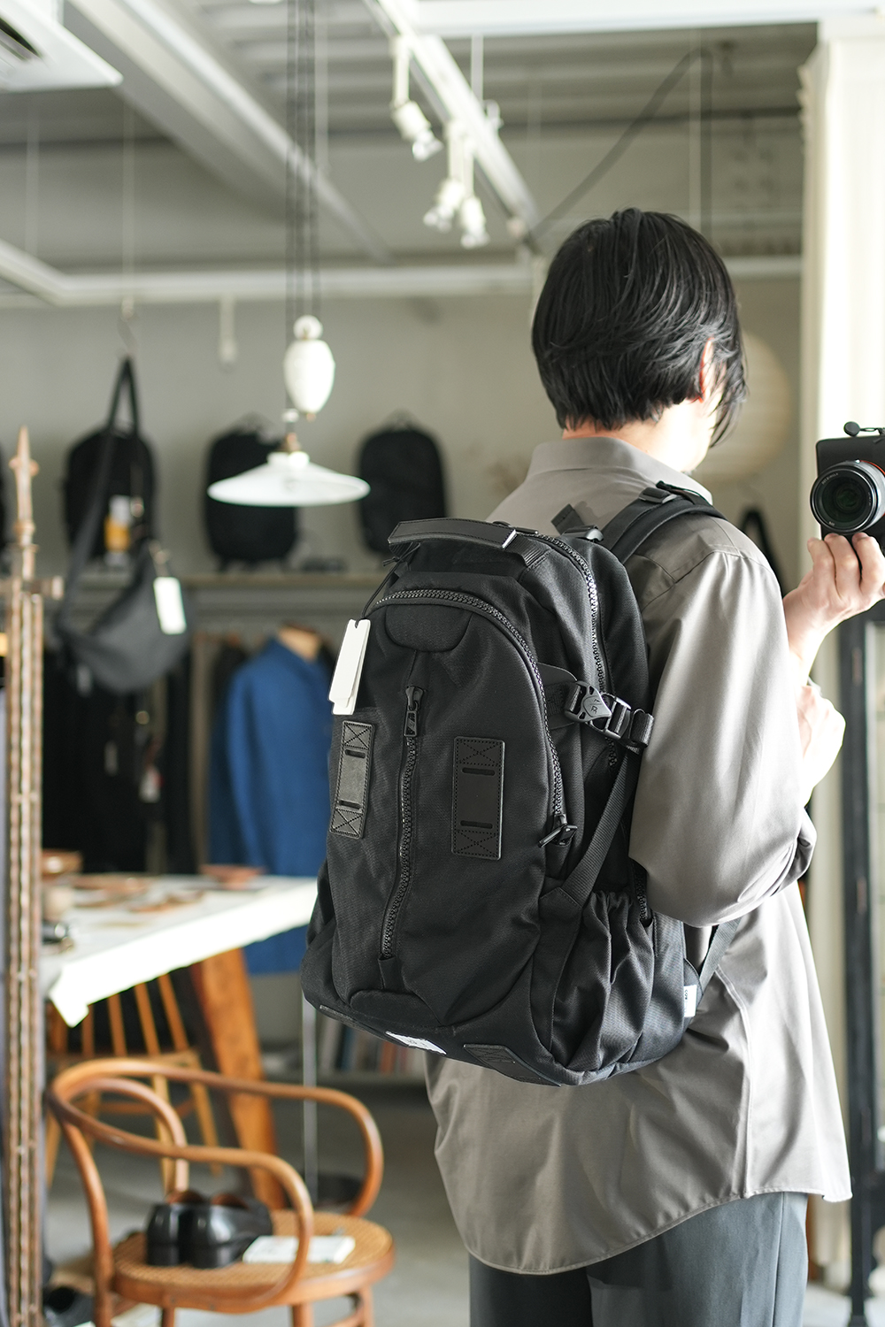 軽量性・耐久性に長けた915デニール・ポリエステル・コーデュラファブリックを使用した、タウン使いとしての耐久性を備えたライン。ショルダーにはサコシュや、ポーチなど取り付けられるMOUNTING T SYSTEMを搭載しアップデート。1 泊2 日用の旅を想定し設計された33L のデイパックです。フロントにはマルチガジェットポケット装備。背面には15 インチまでのラップトップも収納可能。 テープのロールエンド処理や、肩のカーブに沿うように工夫されたショルダーは、長時間背負っていても疲れにくい設計で、機能と快適さを追求しました。・軽量性・耐久性を備えた915デニール のポーリーCORDURA 素材使用・栃木レザー使用・15インチラップトップ収納可能。