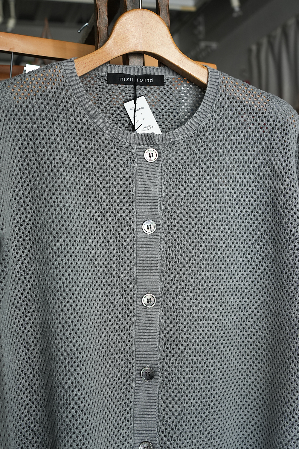 「mizuiro ind」 stone wash mesh crew neck C/D ¥17,600-