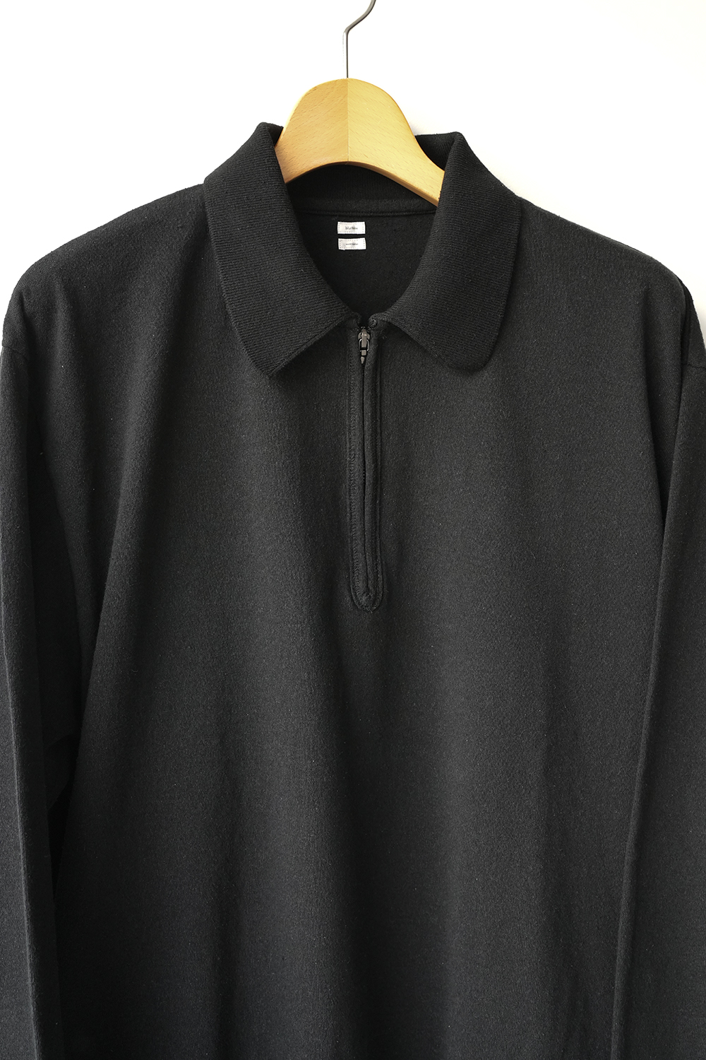 ローシルクの裏側にコットンを入れ、ローシルク独特な生地のダレ感を解消し、滑りのある質感などはそのままに生かした生地のハーフジッププルオーバー。
