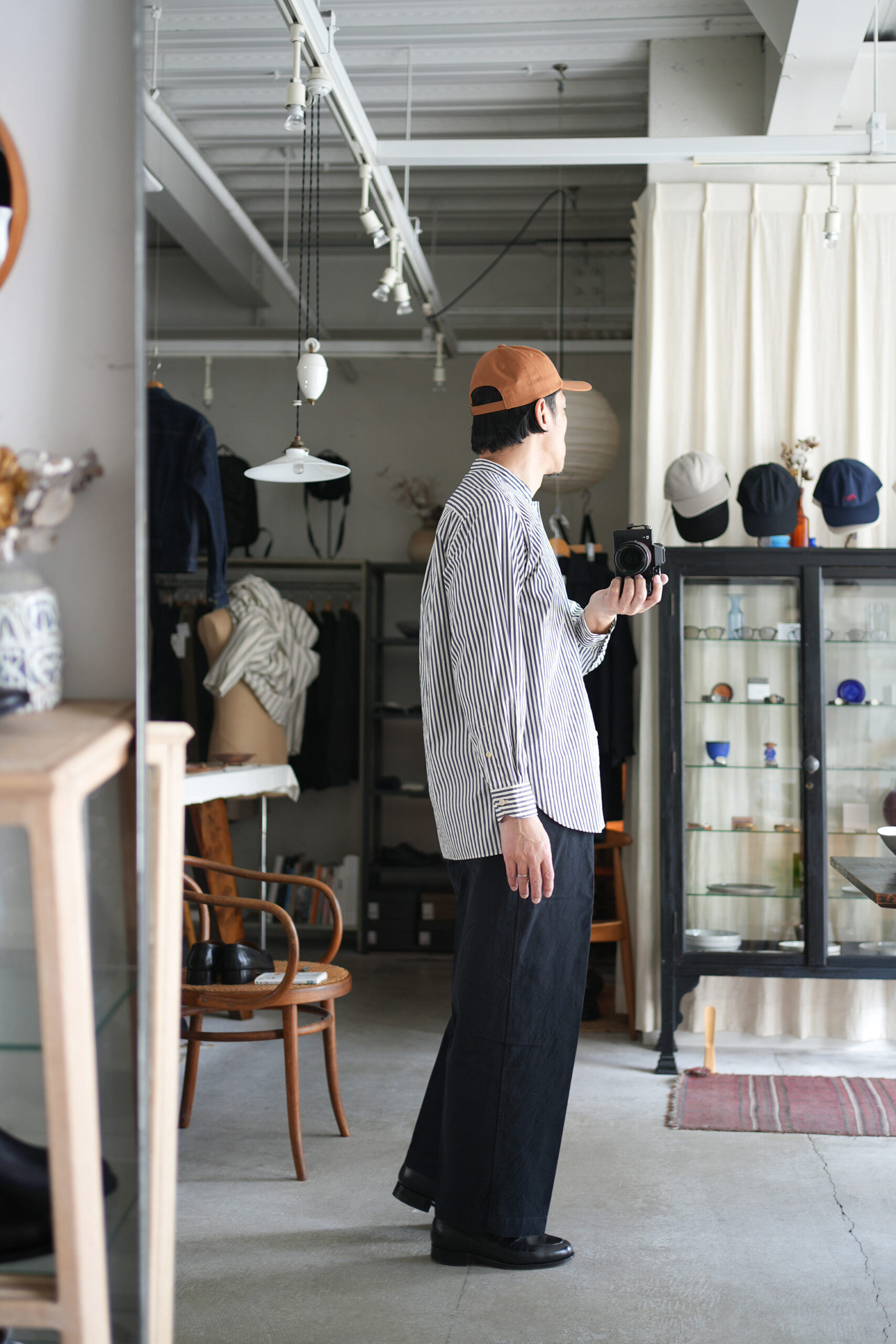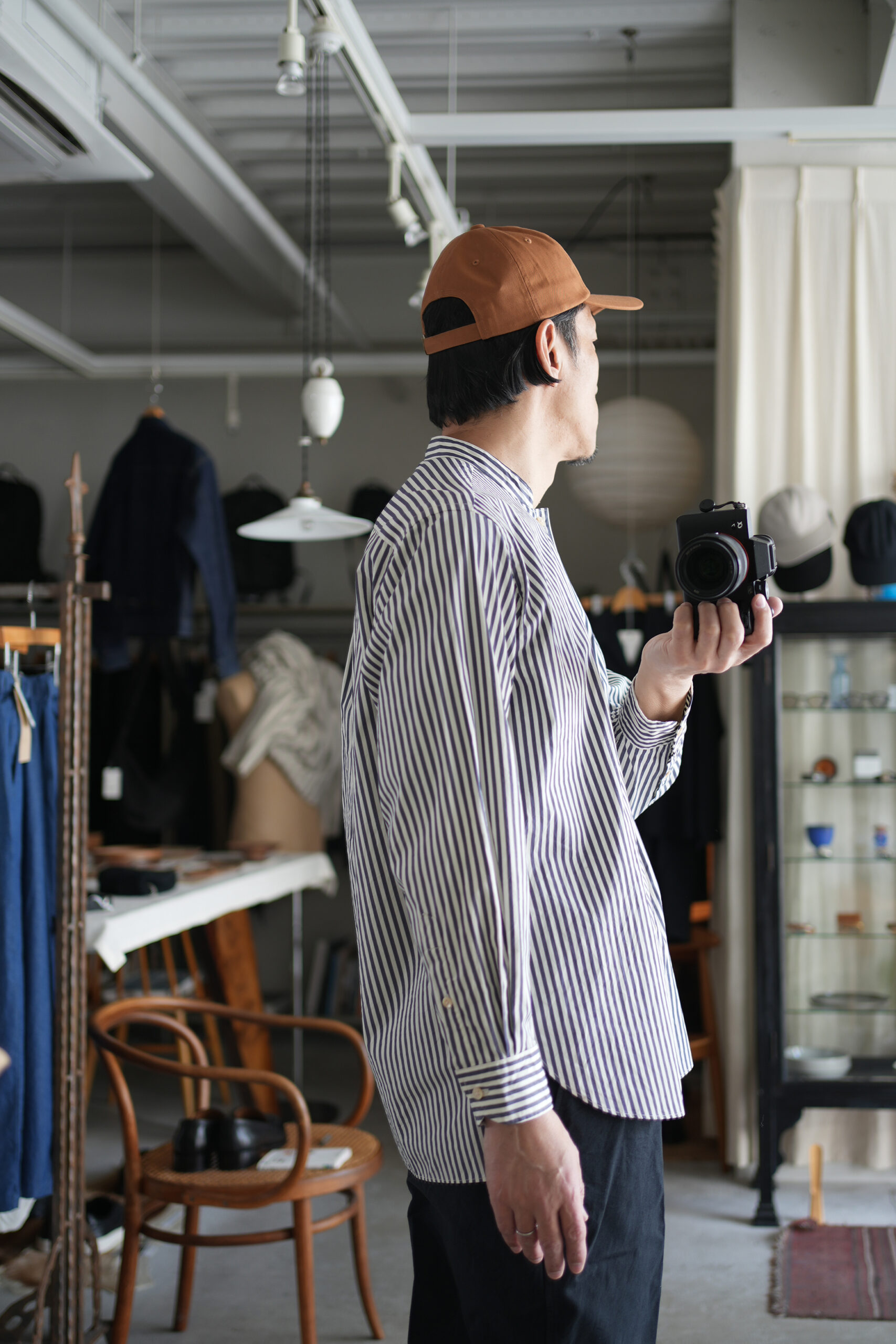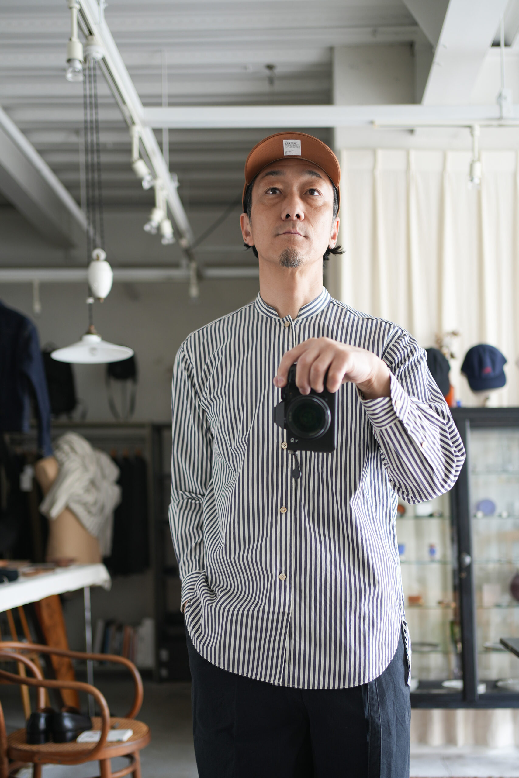 「blurhms」 Stripe Standing-Collar Shirt ¥34,100-