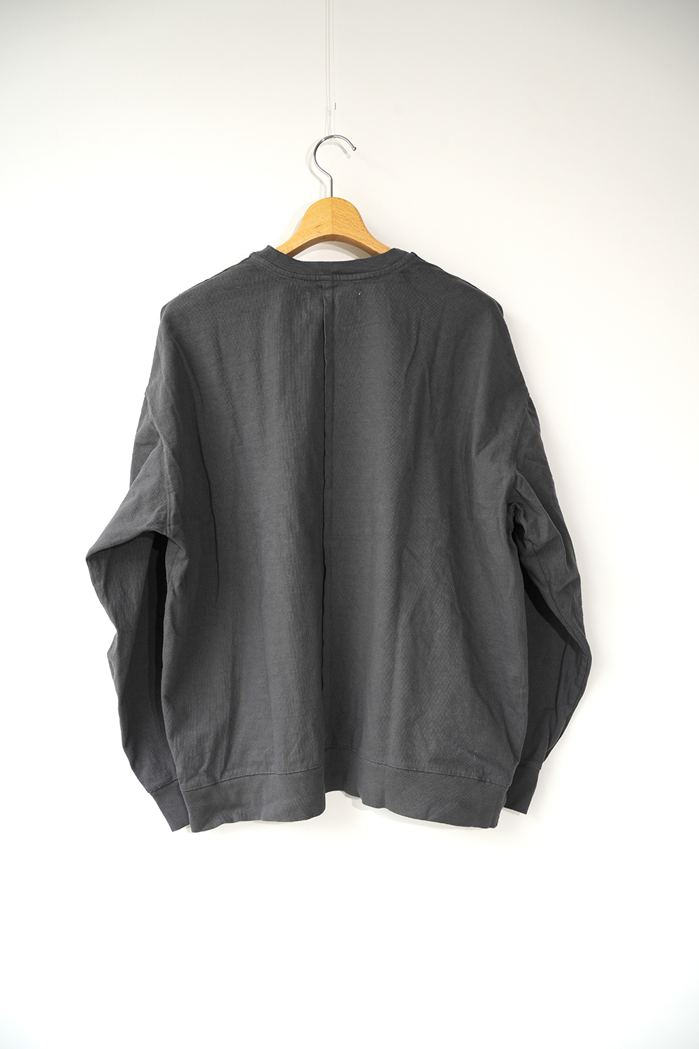 粗野でヘビーな肉感が特徴のUS天竺を製品染めしヴィンテージの風合いに洗い加工を加え仕上げられたロンTとショートパンツ。