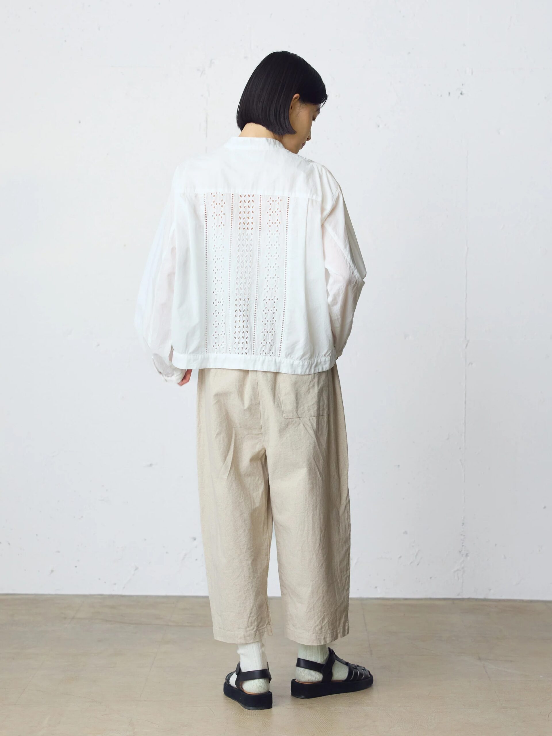 洗いざらしの風合いが魅力の、コットンリネンキャンバス地を使用したワイドイージーパンツ。柔らかさの中にほどよいハリと膨らみがあり、透けにくく安心感のある素材感が特徴です。ゆったりとしたワイドシルエットに、ウエストはイージー仕様でリラックスした履き心地。日常使いしやすく、気負わず取り入れられる一本に仕上がっています。や短めの丈感がポイント。足元がすっきりと見えるバランスで、小柄な方にもおすすめです。洗いざらしならではのナチュラルな表情と、程よいハリのある生地がシルエットをきれいにキープします。シンプルなカットソーやライトジャケットと合わせるだけで、春らしくリラックスした着こなしに仕上がります。透けにくく、デイリーに活躍する着回しやすいパンツです。