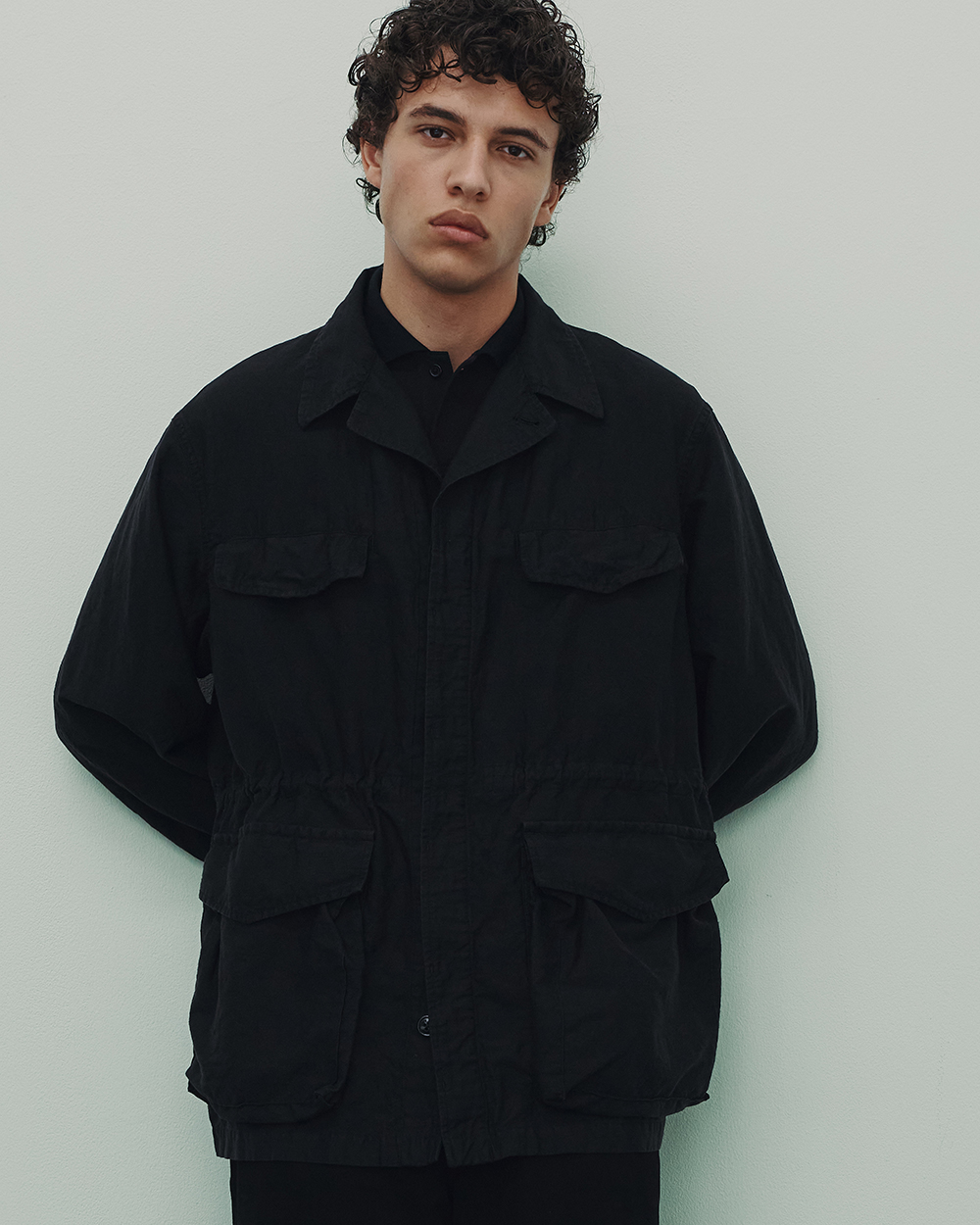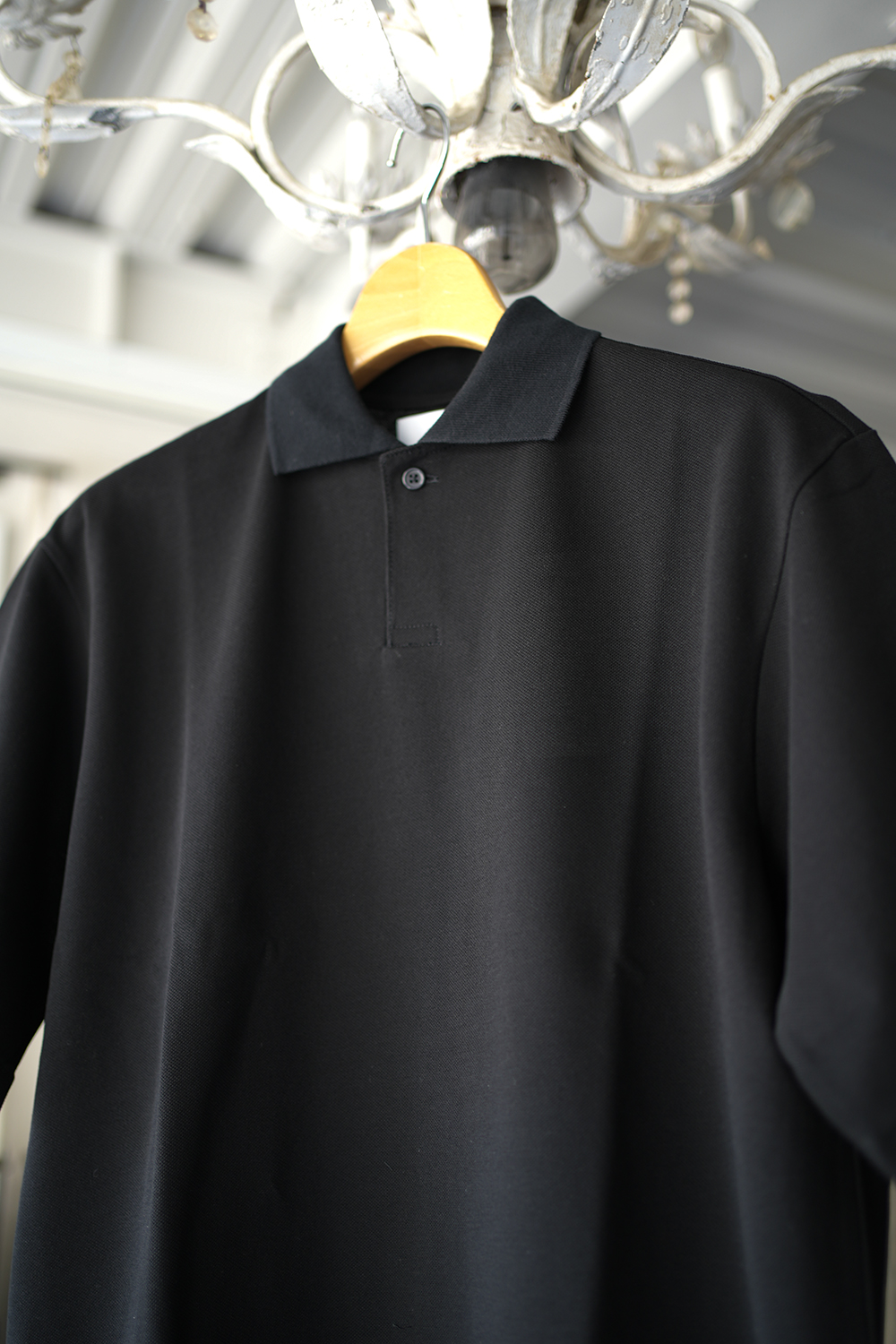 継続展開している「One Button Tee」。ワンボタンのみで構成されたミニマルなフロントが特徴です。前立ては深さを抑え、自然なVラインを形成しています。ポロシャツの装飾性を削ぎ落とし、構造で整えたデザイン。シンプルなディテールながら、首元に程よいアクセントを加えています。肩・身幅・着丈のバランスは、一枚で着用した際に成立するプロポーション。ジャケットや軽い羽織りのインナーとしても収まりの良い設計です。インド産オーガニックコットンを使用した強撚ドライカノコ。今季は紡績工程を見直し、糸をコンパクトヤーンへアップデートしました。毛羽を抑えた糸により表面はよりクリアに整い、発色の精度も向上しています。ブラックはより深い色味に仕上がりました。強撚によるドライなタッチと、カノコ特有の凹凸が優れた肌離れを生みます。汗ばむ季節でも肌に張り付きにくく、通気性を備えた編地です。適度なハリを持ちながら軽やかな着心地で、春から盛夏まで快適に着用できます。