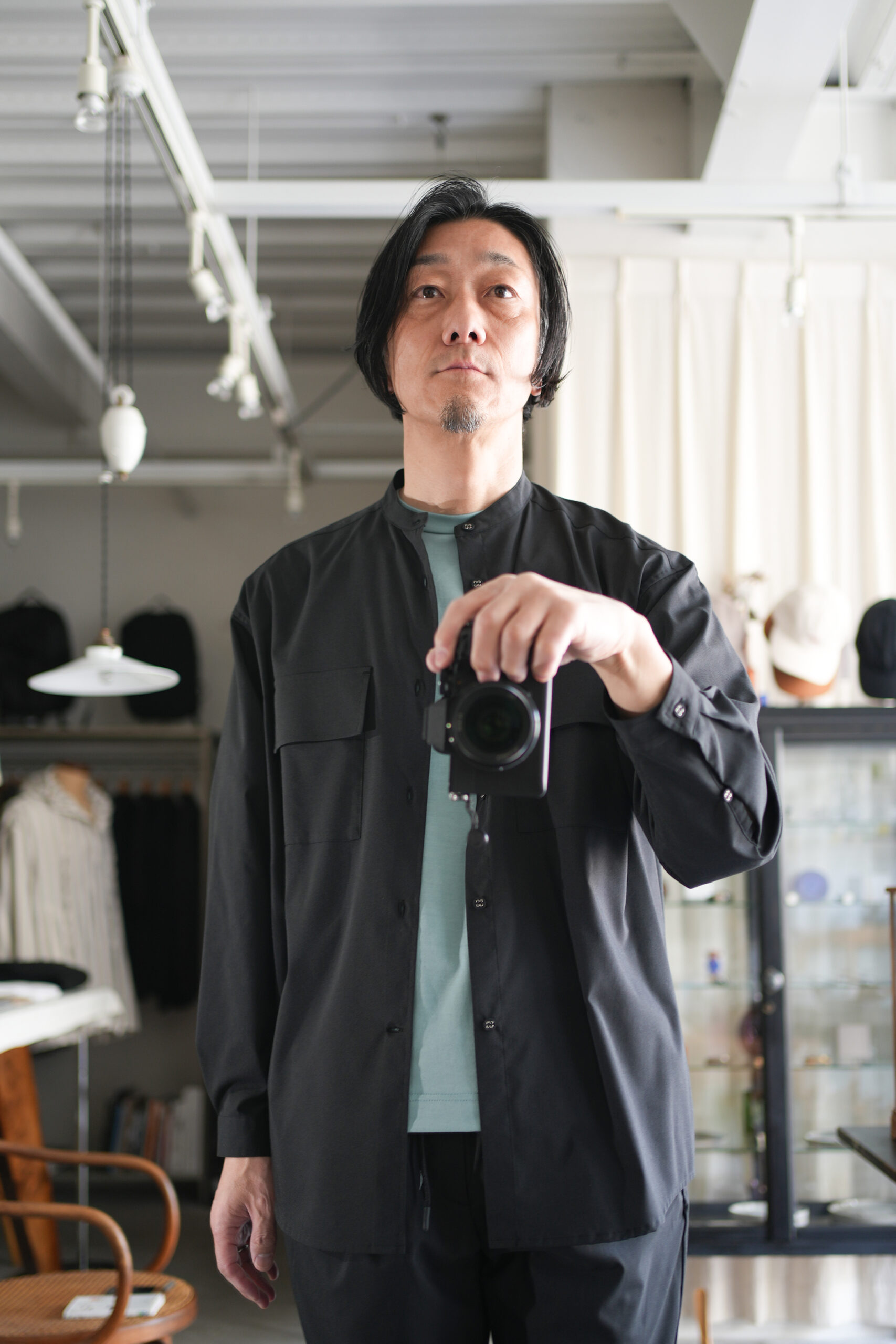 「White Mountaineering Repose Wear」 バンドカラーシャツ ¥26,400-