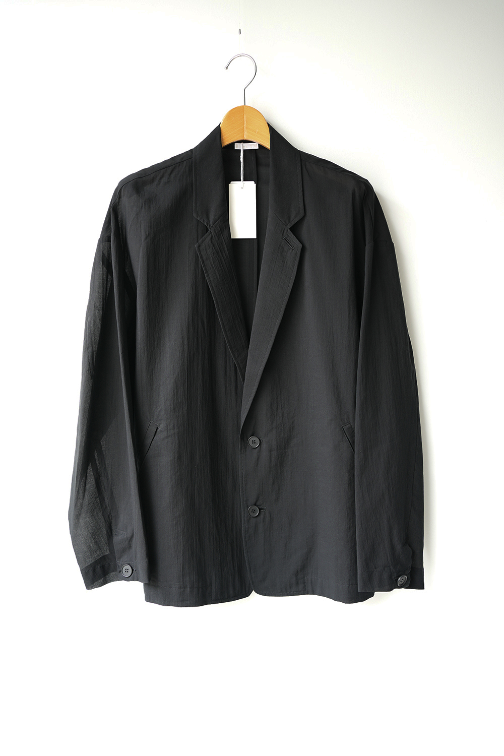 一枚仕立てのシャツの様に着用可能な2Bのジャケット。スーピマ超長綿のローン地をしようしている為、夏場でもカットソー上から JKTを気軽に羽織る事が出来ます。縫い代の多くをパイピング処理しているためによりソリッドな印象です。ラペル幅はやや細めのノッチトラペル仕様です。静岡の遠州地方で織られた 100%コットン生地を使用。