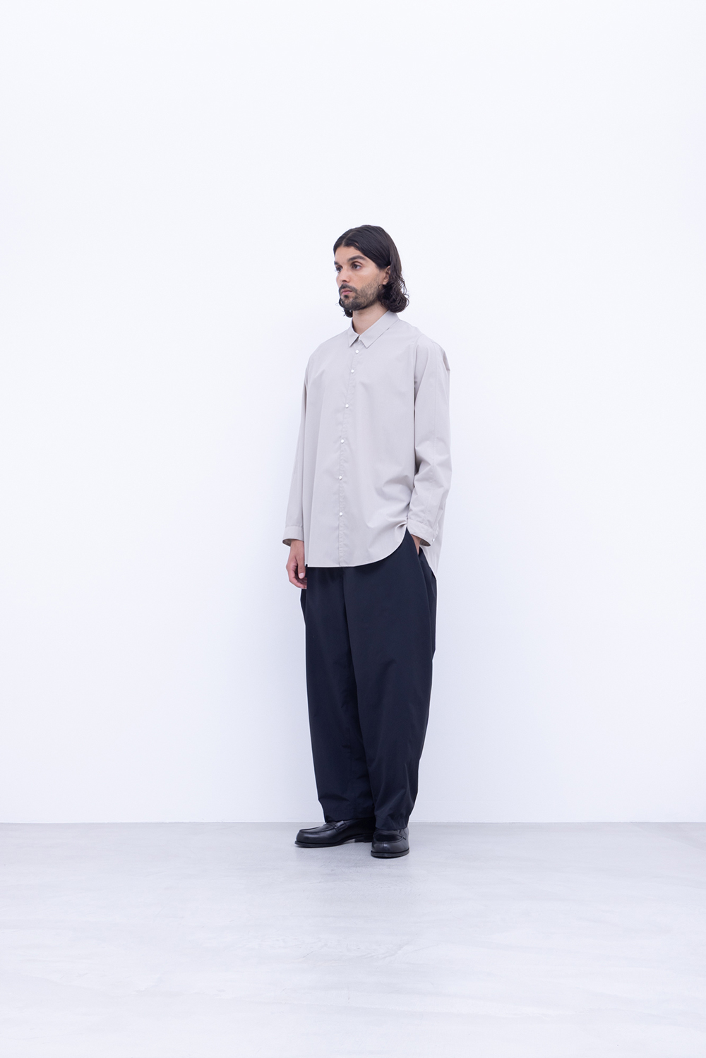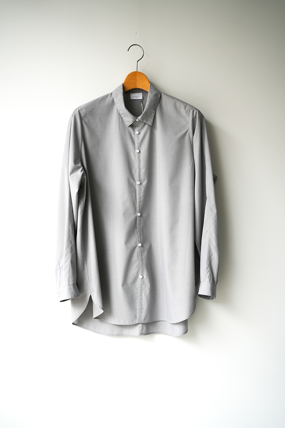 「NO CONTROL AIR」コンパクトスパンブロードシャツ 2026.03.19 <MEN’S ITEM> 「NO CONTROL AIR」コンパクトスパンブロードシャツ、入荷。 ポリエステルとレーヨンの混紡コンパクト糸で織った平織ブロード生地。穏やかな光沢と柔らかさ、透明感のある表情が特徴で滑らかで涼やかな生地感。 「NO CONTROL AIR」 コンパクトスパンブロードシャツ ¥24,750- カラー/ライトグレージュミックス サイズ/4・5 素材/ポリエステル65%・レーヨン35% VG_NC0301SF