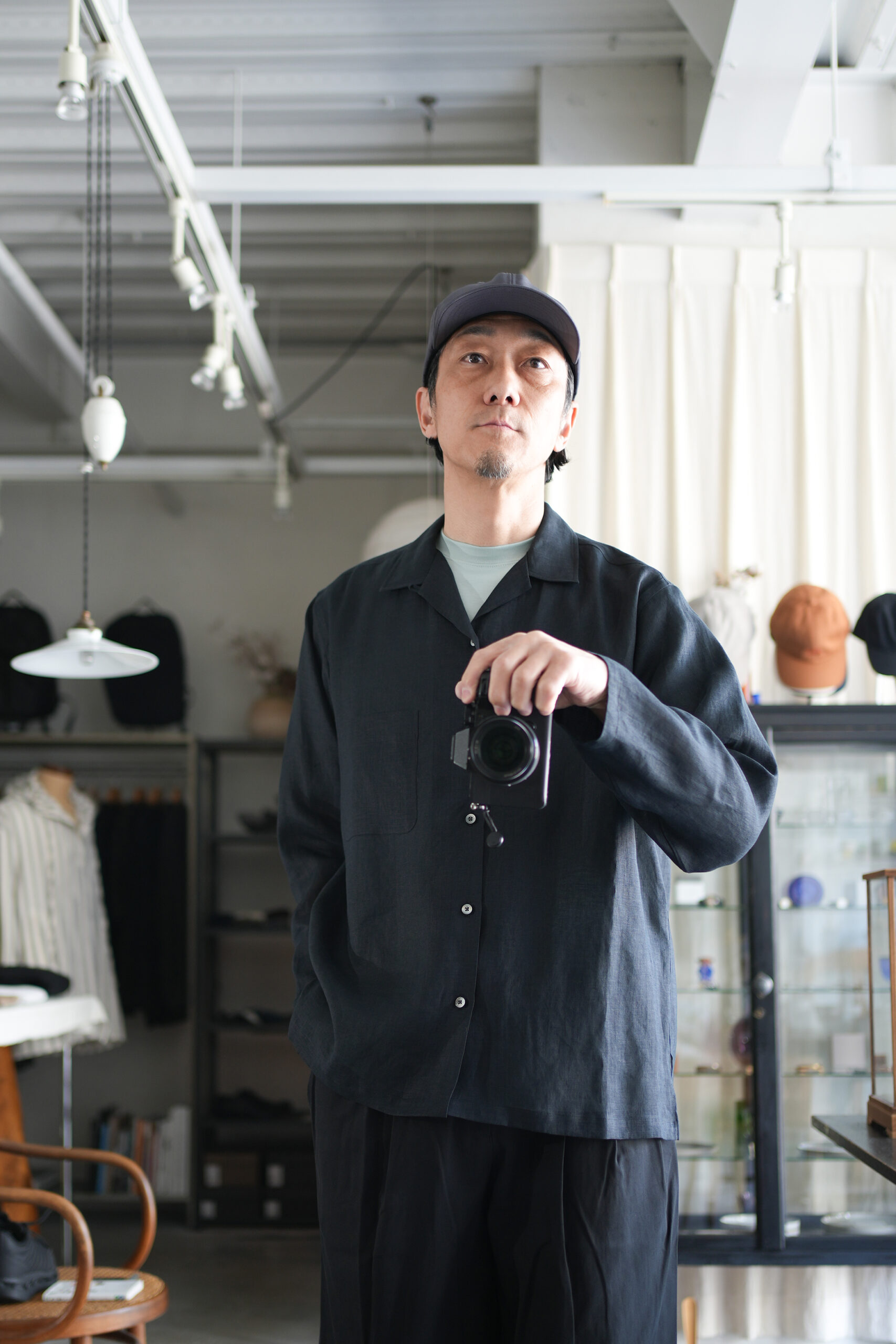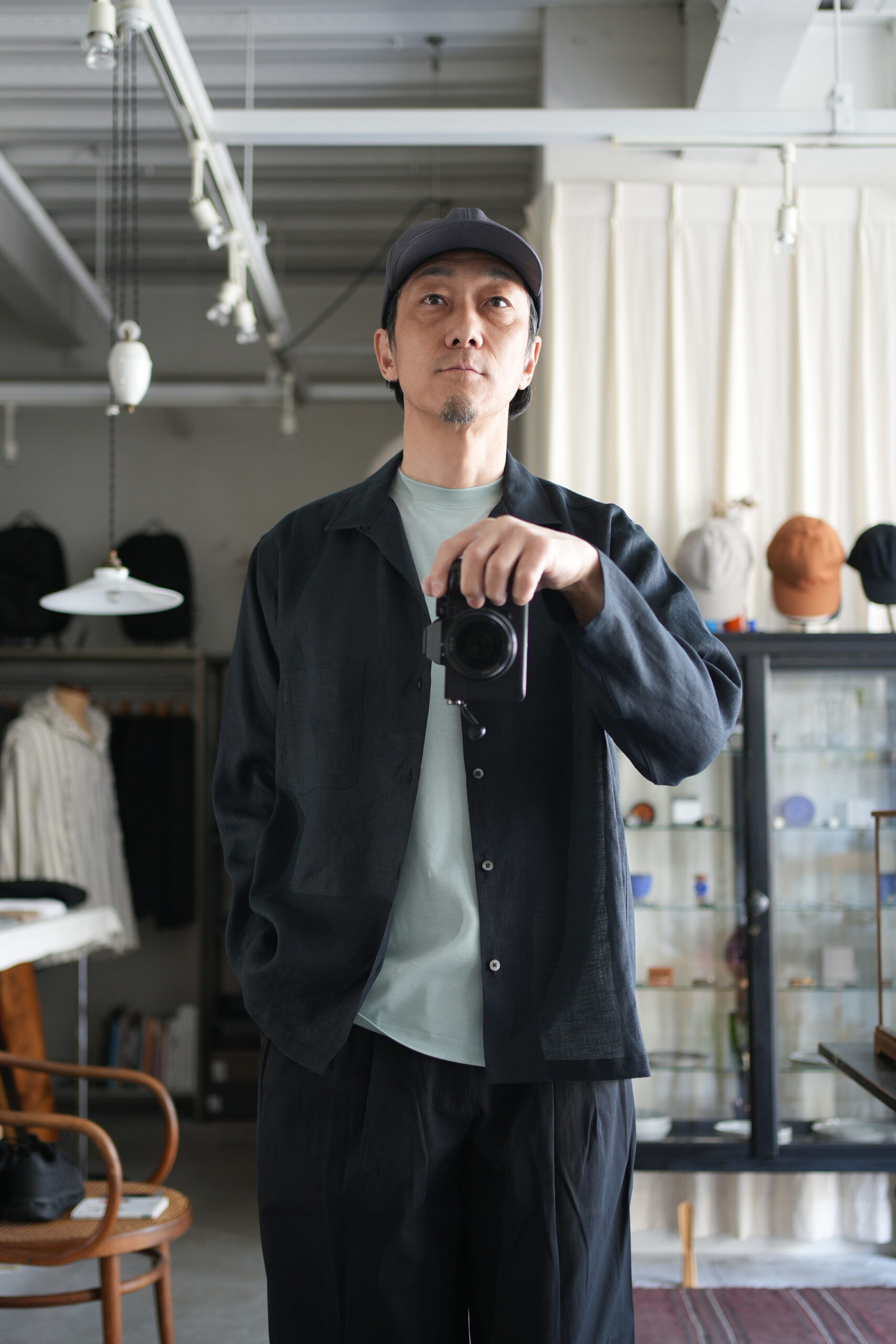 「MARKAWARE」 ヘンプ細布コンフォートフィットオープンカラーシャツ ¥37,400-