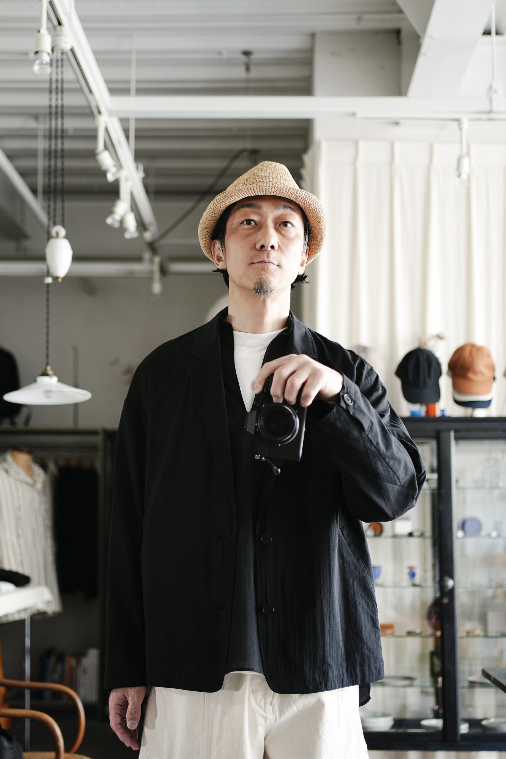 一枚仕立てのシャツの様に着用可能な2Bのジャケット。スーピマ超長綿のローン地をしようしている為、夏場でもカットソー上から JKTを気軽に羽織る事が出来ます。縫い代の多くをパイピング処理しているためによりソリッドな印象です。ラペル幅はやや細めのノッチトラペル仕様です。静岡の遠州地方で織られた 100%コットン生地を使用。糸はスーピマ超長綿。ほんの僅かに毛羽を残した柔らかな質感とスーピマコットン特有の光沢があり、光を通す様な適度な透け感があります。洗い晒しで着用しても馴染む程良いシワ感で着用できる素材です。またとても計量な素材でSS シーズンのレイヤードとしてはストレスフリーです。