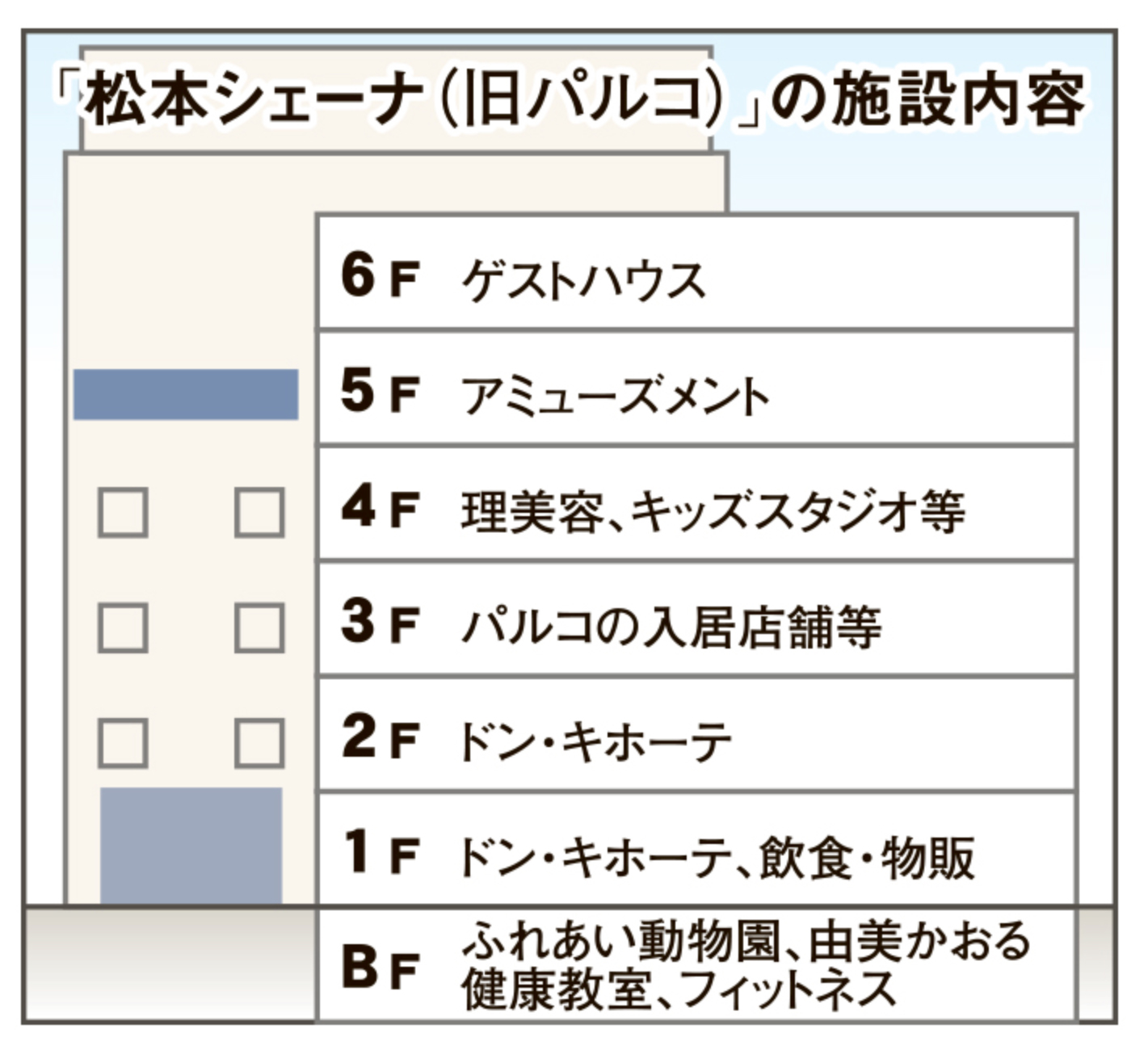 リスタート前から失礼な書き様をお許しいいただきたいと前置きしつつ、未来の松本市場を展望した際に小手先の焼き直しでは市街地中心巨大商業ビル長期的継続の難易度はかなり高いと思う、また「ドン・キホーテ」さんが撤退判断をされたらこの施設は霧散する。