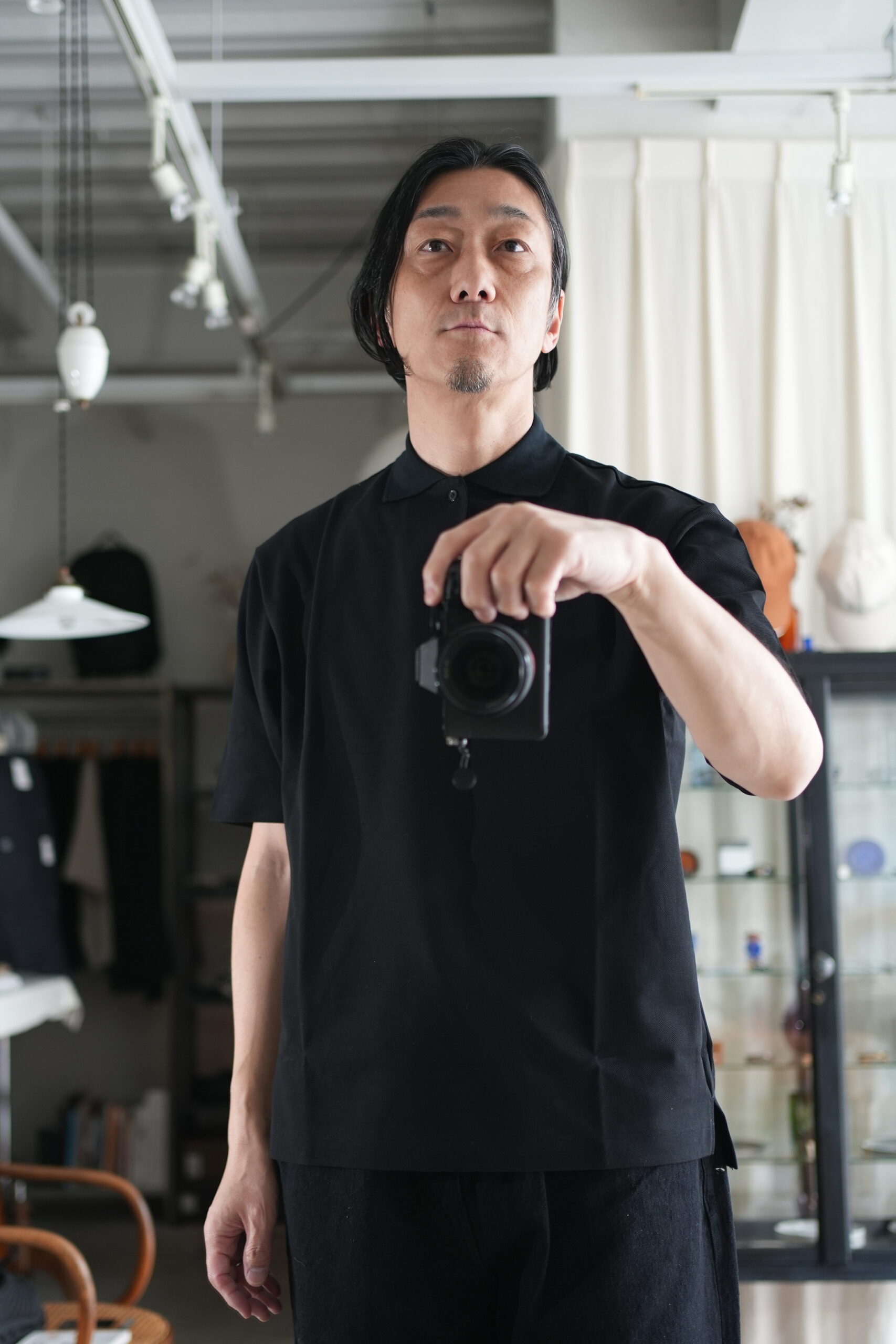 継続展開している「One Button Tee」。ワンボタンのみで構成されたミニマルなフロントが特徴です。前立ては深さを抑え、自然なVラインを形成しています。ポロシャツの装飾性を削ぎ落とし、構造で整えたデザイン。シンプルなディテールながら、首元に程よいアクセントを加えています。肩・身幅・着丈のバランスは、一枚で着用した際に成立するプロポーション。ジャケットや軽い羽織りのインナーとしても収まりの良い設計です。インド産オーガニックコットンを使用した強撚ドライカノコ。今季は紡績工程を見直し、糸をコンパクトヤーンへアップデートしました。毛羽を抑えた糸により表面はよりクリアに整い、発色の精度も向上しています。ブラックはより深い色味に仕上がりました。強撚によるドライなタッチと、カノコ特有の凹凸が優れた肌離れを生みます。汗ばむ季節でも肌に張り付きにくく、通気性を備えた編地です。適度なハリを持ちながら軽やかな着心地で、春から盛夏まで快適に着用できます。