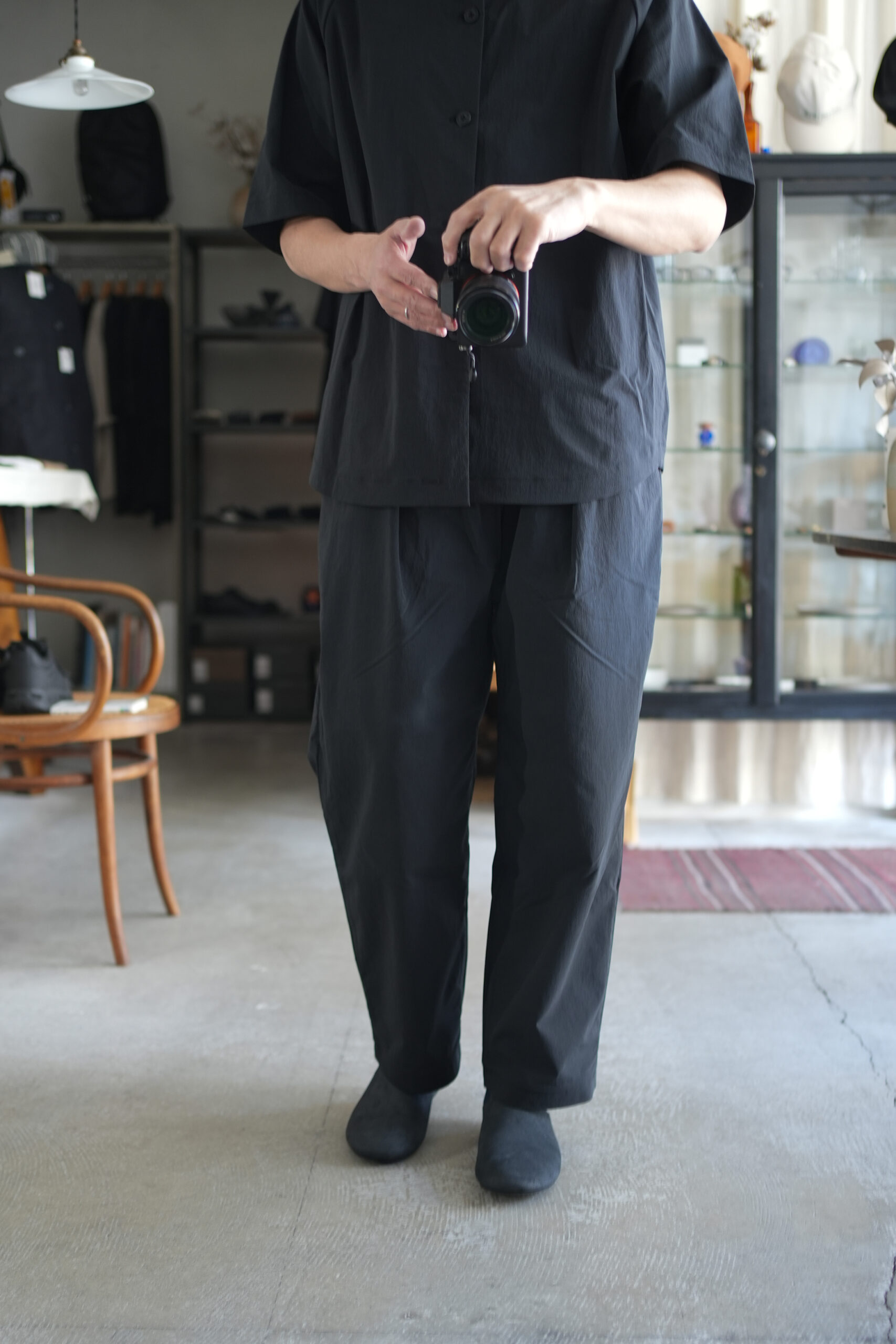 夏に涼しく快適に着られる事をコンセプトにしたアイテム。外遊びからビジネスシーンまで、真夏の様々なシーンに対応。様々な色を織り交ぜて表現した深みのあるブラックとネイビー。特殊放熱仕様により体験出来る接触冷感。風通しを良くし、不快なムレ等を軽減。弱ストレッチで快適な可動域。重量も軽く、カリッとした軽やかでドライなタッチ。洗濯後も速乾。ゆったりとした身幅・着丈のシャツ。身幅にゆとりを持たせて全体に膨らみのある印象になるシルエット。少し長めの袖丈。ショルダー部分の特殊な切り替えにより肩周りの可動域を広げ快適性を高めると共に、テアトラ独自のシルエットを表現。小振りな襟。ポケットは無し。DOCTOROID シリーズ、猛暑キャンセリング。猛暑による体力消耗をキャンセルさせるために開発された、TEATORA史上、最も、圧倒的に涼しいDOCTOROIDシリーズ。この圧倒的な涼しさを体験してしまえばDOCTOROIDのない真夏は想像できなくなることでしょう。暑さによって蓄積する疲労を軽減しあなたのクリエーションパフォーマンスを最大限に引出します。