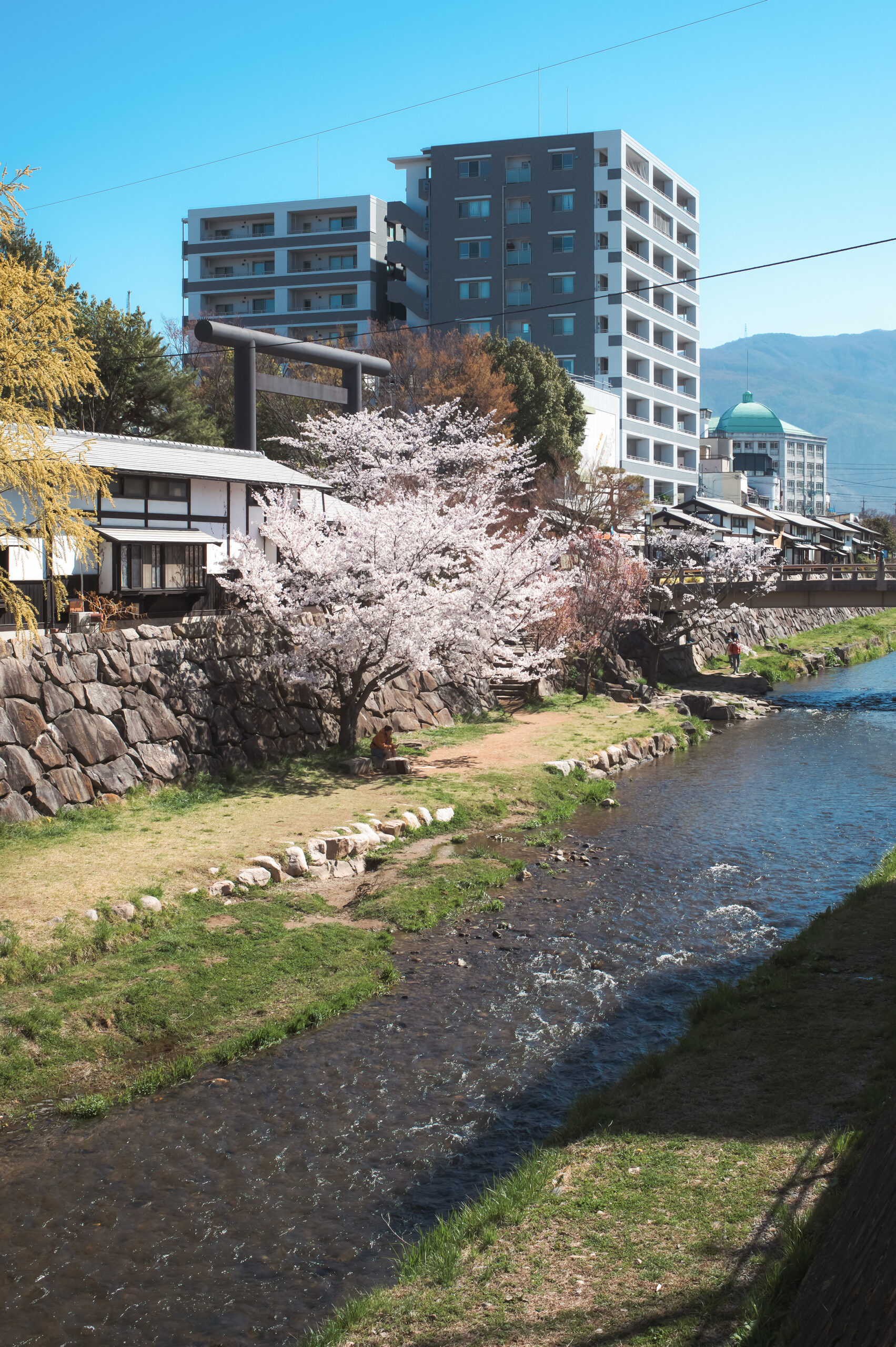女鳥羽桜川 2026.04.06 矢口です。 月曜日の朝、快晴温暖。 松本市街地は桜満開です。 月曜日の朝、日本人はお仕事、街を歩かれるほとんどがインバウンド旅の皆さま。 桜咲く松本の街を笑顔で散策、まさに日本の春真っ盛り、気分良い体験をされているに違いない。 女鳥羽桜川。 こんな気持ちの良い日に異国で街散歩なんて最高ですね。 ずっと旅したい気持ちを温めている私は、より旅に行きたい気持ちになった週末明けの朝でした。
