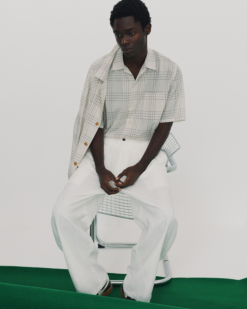 インド産オーガニックコットンで仕立てられた強撚ローン生地、オープンカラー半袖シャツ。