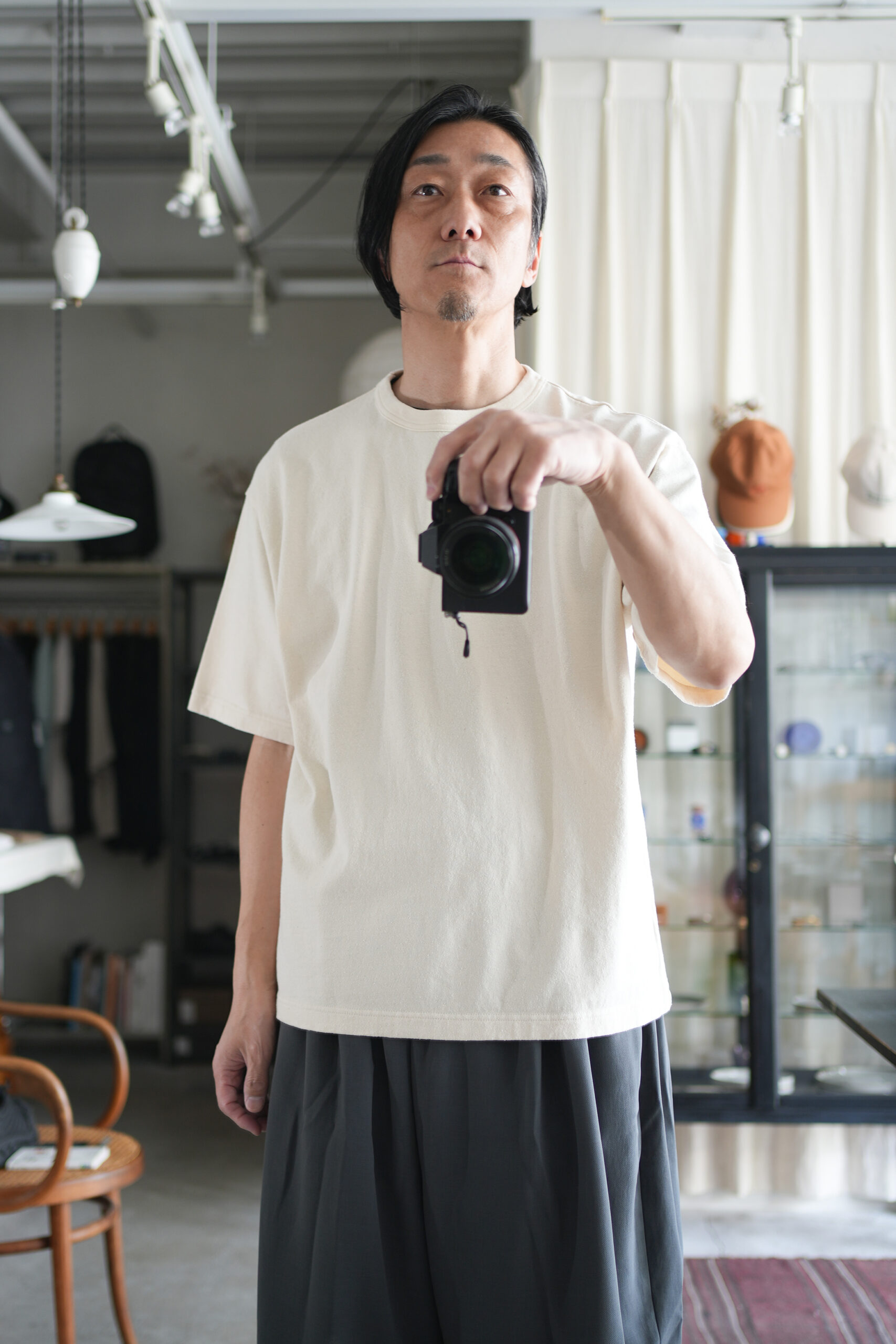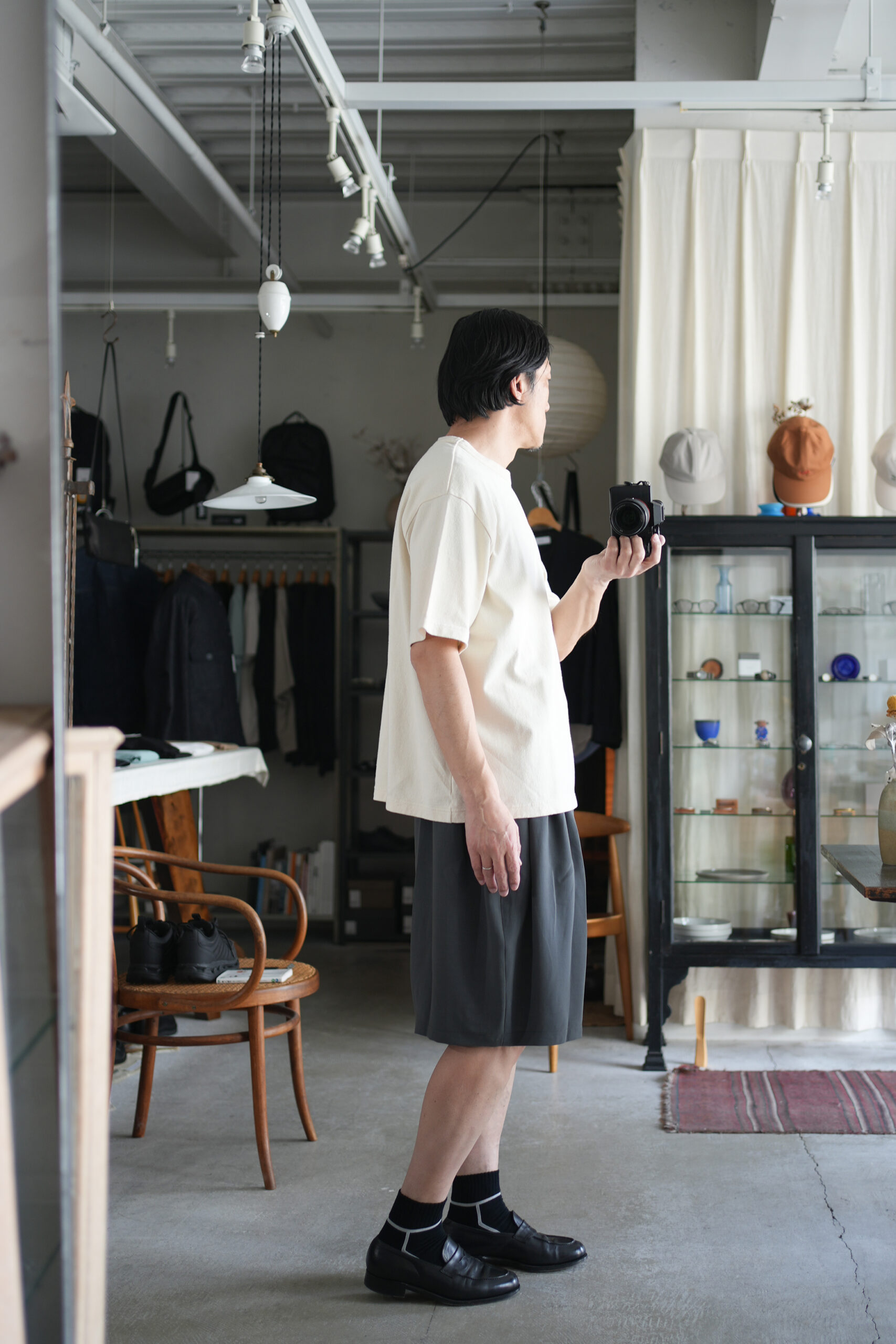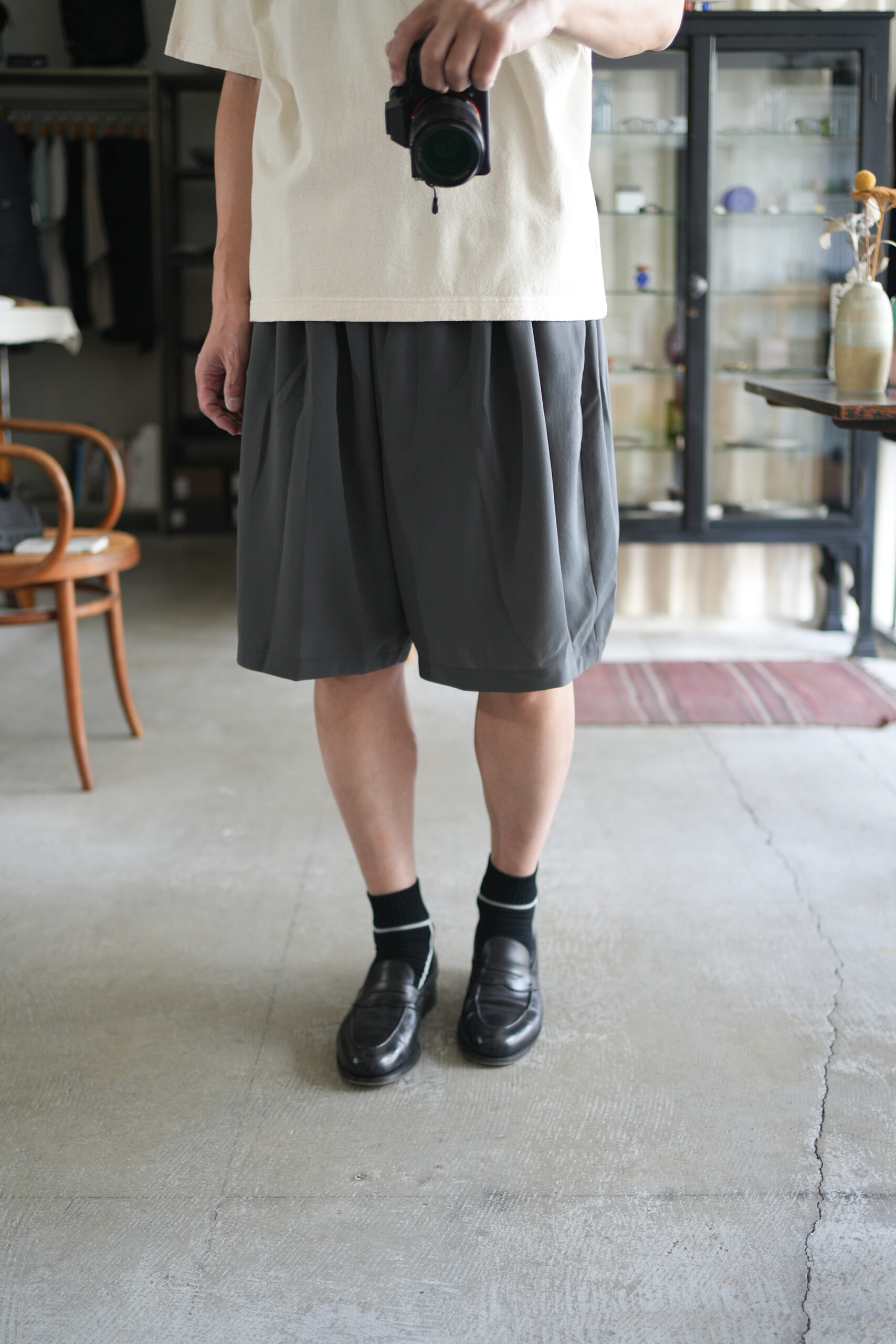 「blurhms」Co/Silk Nep Tee S/S & 「NO CONTROL AIR」スパンポリエステルドレープカルゼワイドハーフパンツ