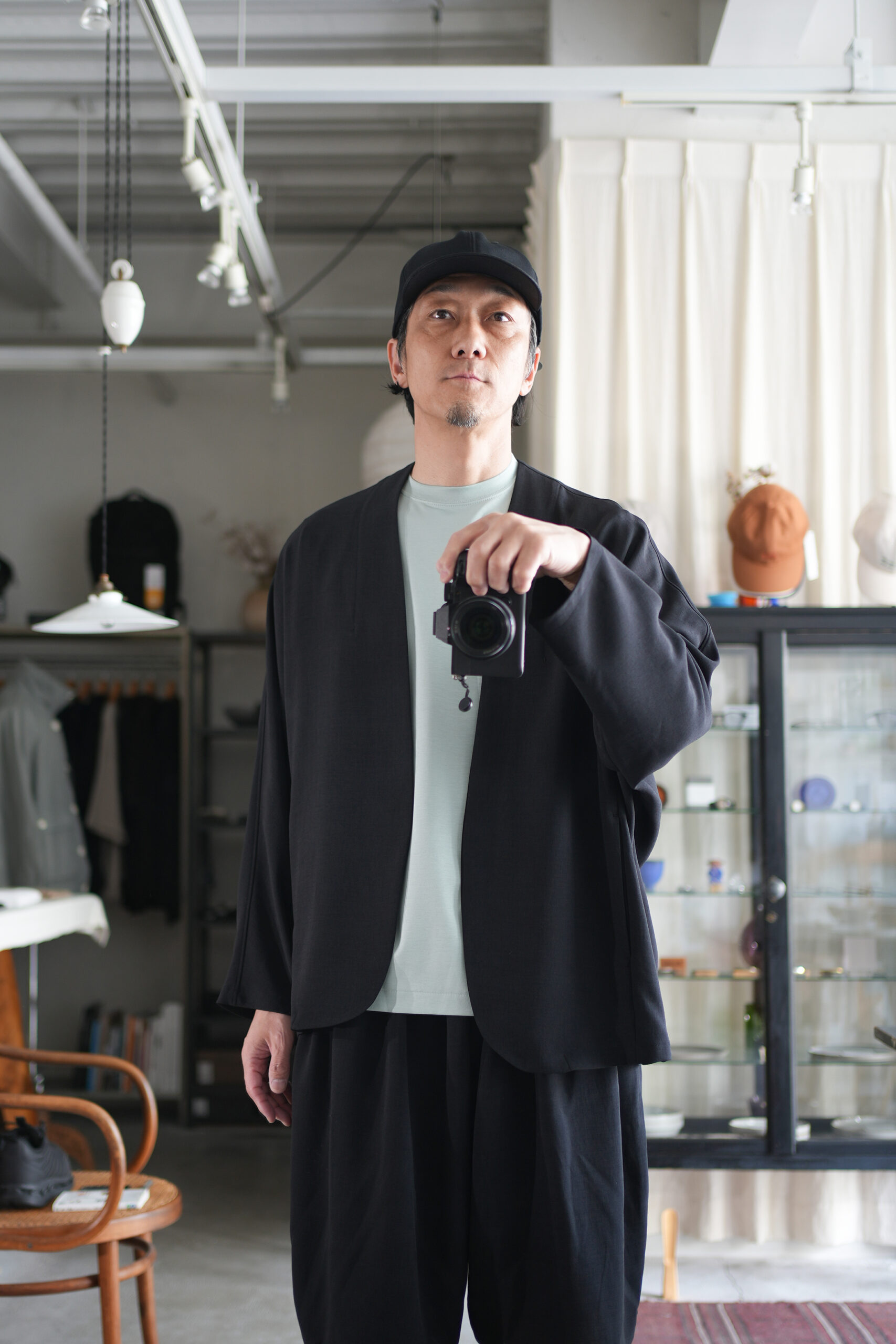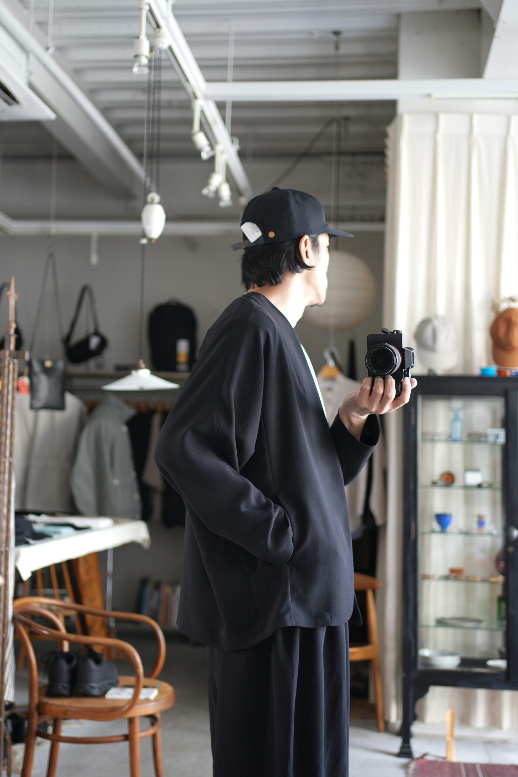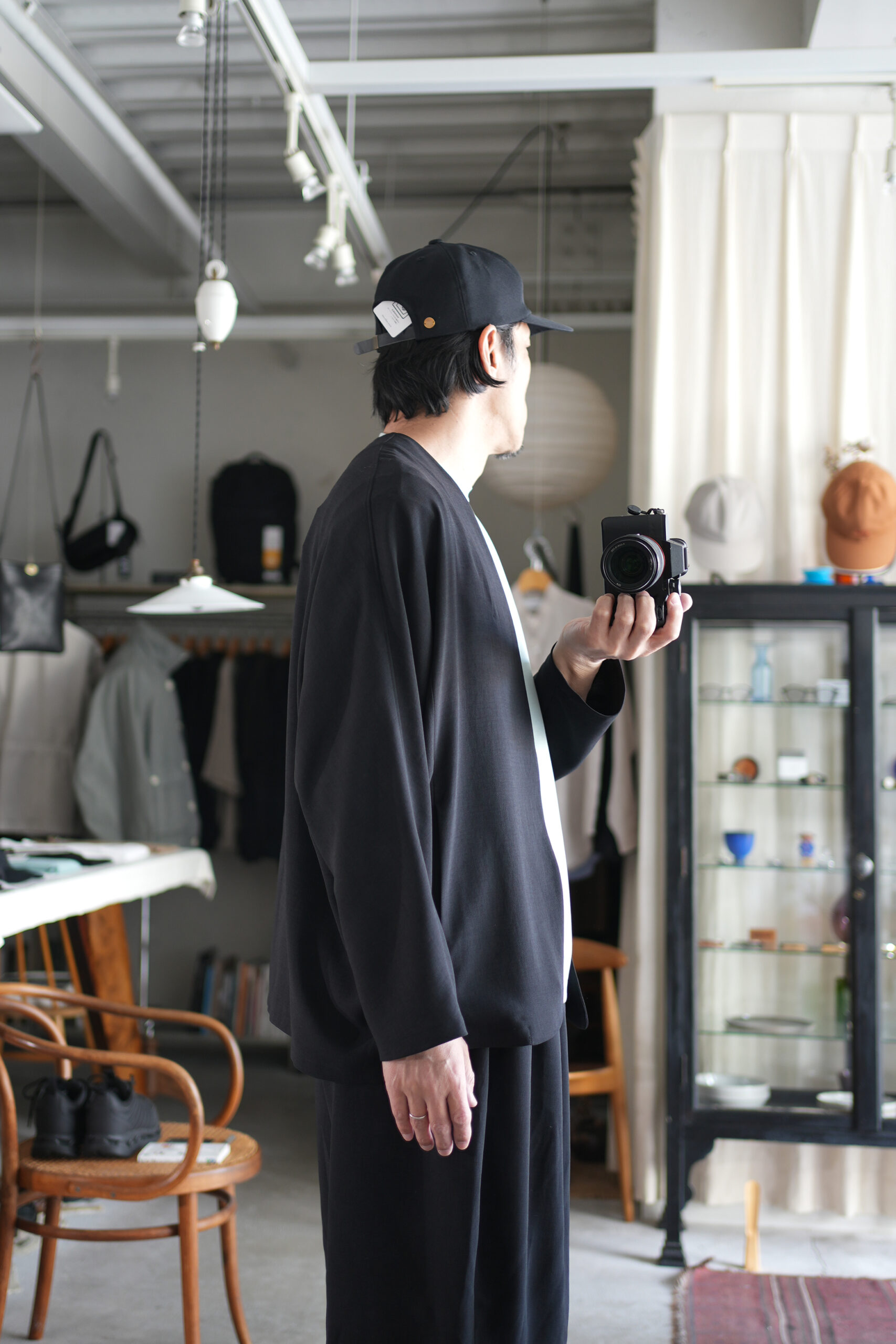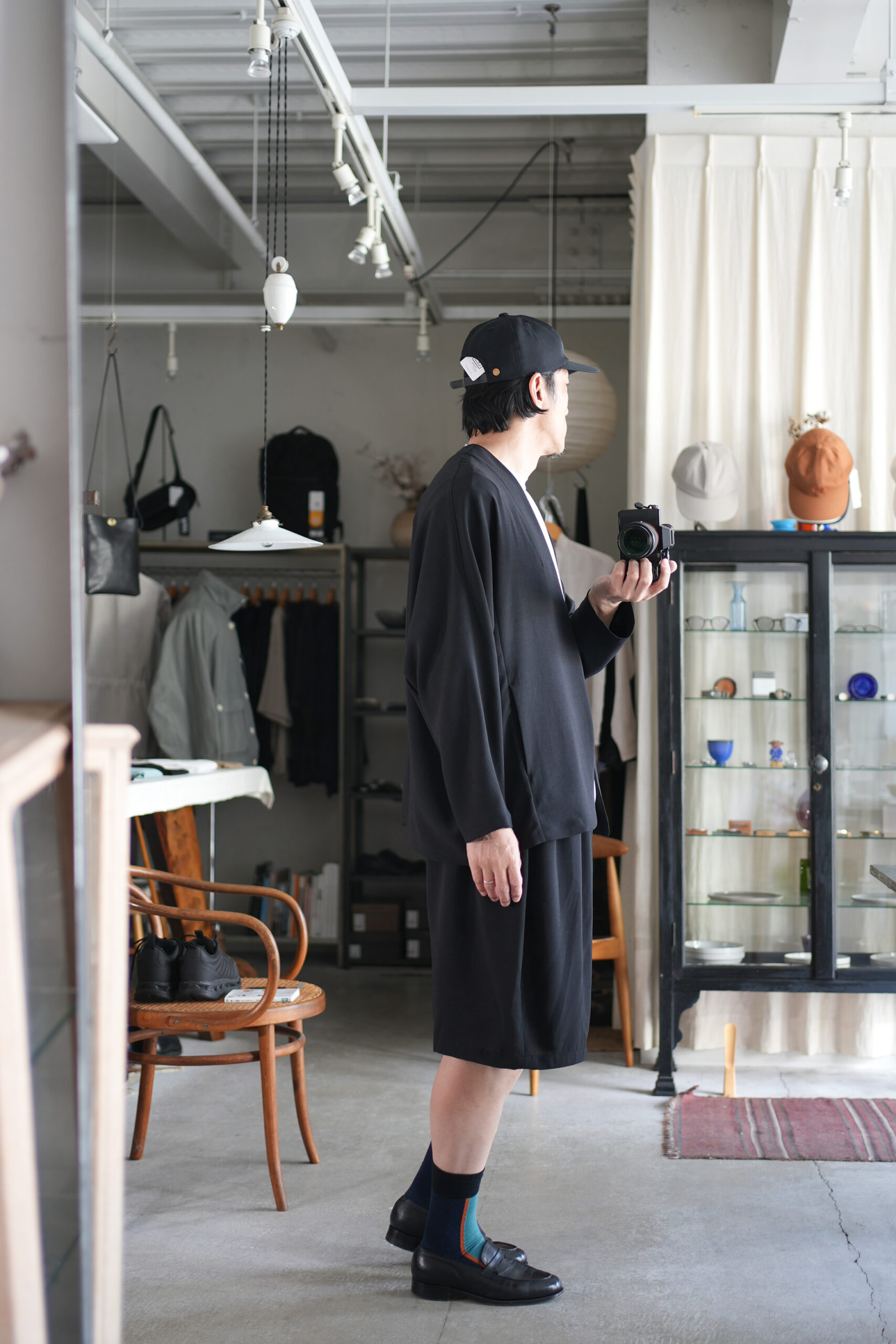 「NO CONTROL AIR」スパンポリエステルドレープカルゼドルマンジャケット & ワイドハーフパンツ