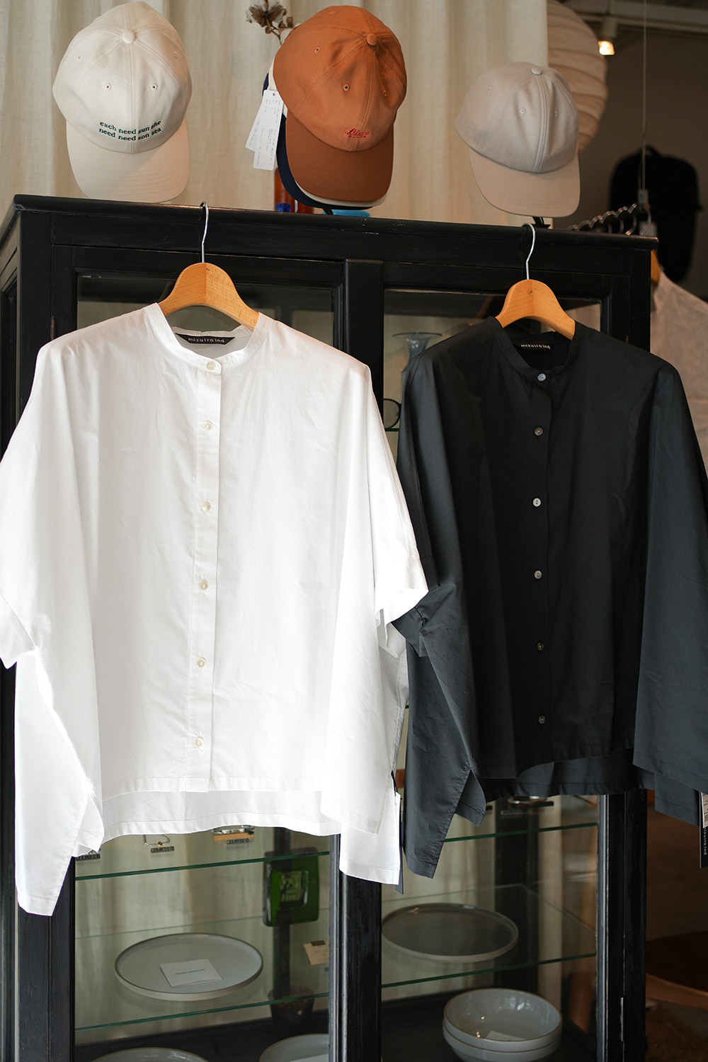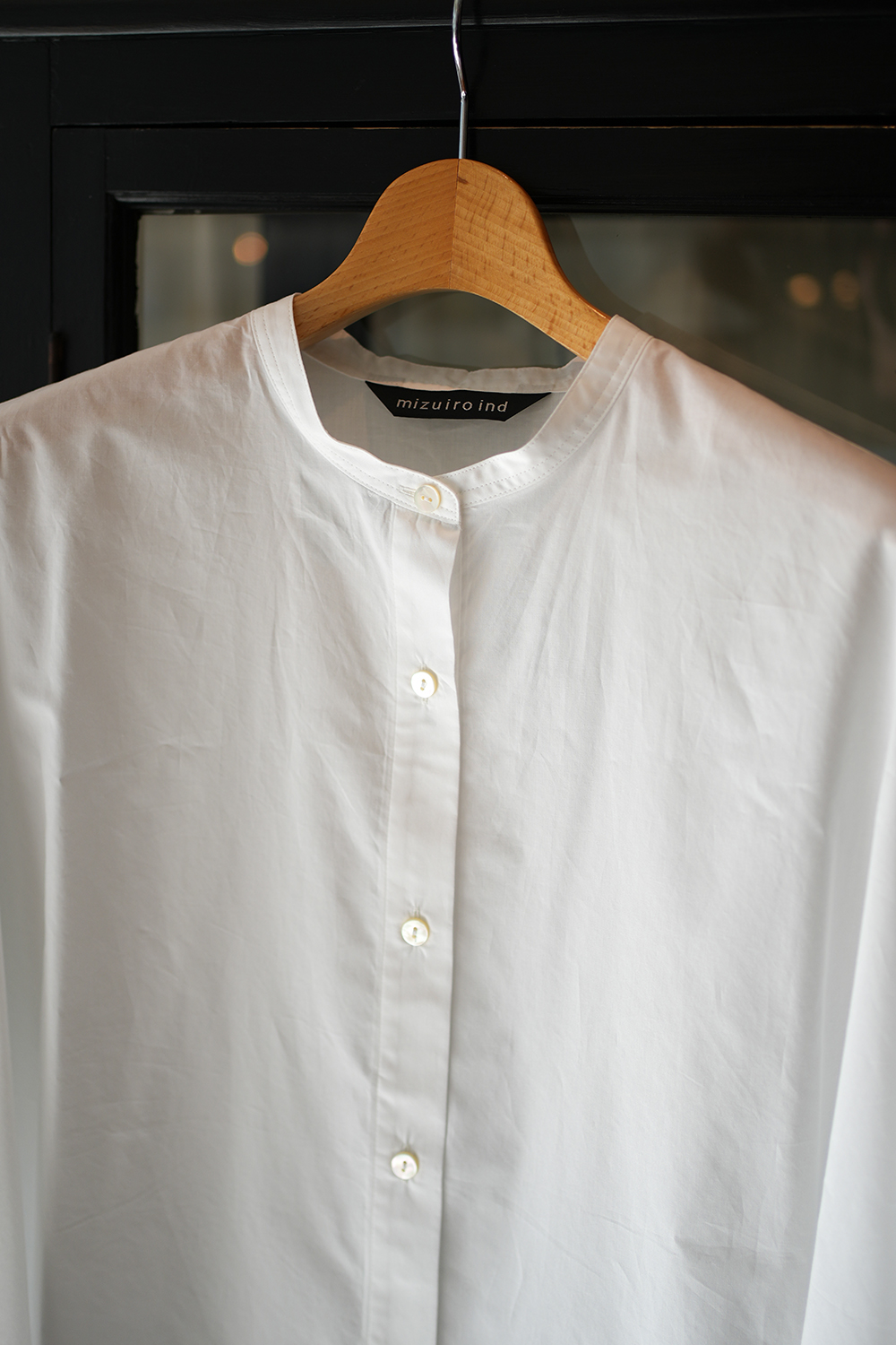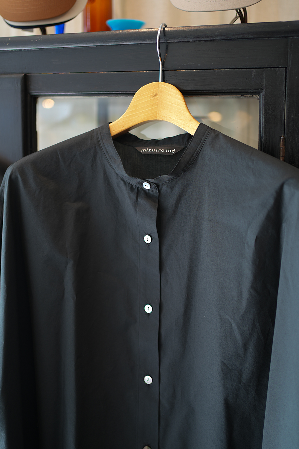 「mizuiro ind」half slv stand collar wide shirt、入荷。