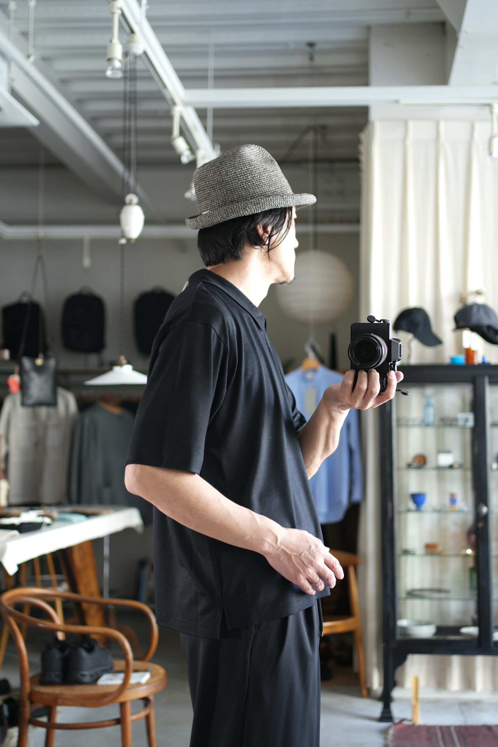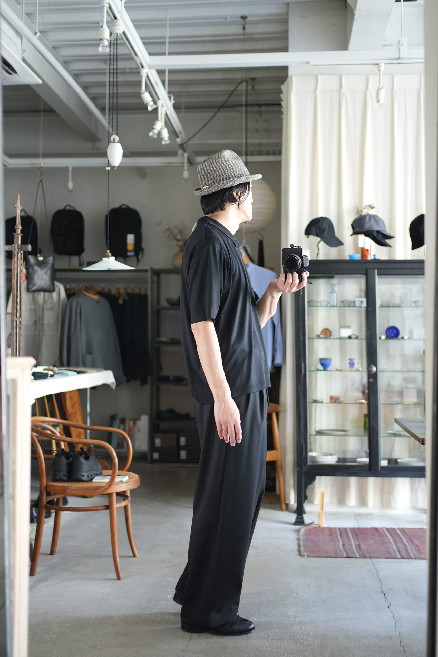 3本のプリーツとボリュームのあるワイドシルエットが特徴の「Triple Pleated Easy Trousers」。ブランド内でも最も太く迫力のあるシルエットながら、素材の光沢とドレープ感により上品な印象に仕上げています。ウエストはゴムとドローコードを備えたイージー仕様で、快適な穿き心地を実現。モードな雰囲気を持ちながらも、リラックスして着用できる一本です。アルゼンチン産の上質なオーガニックウールを使用。MARKAWAREの定番素材として、徐々に温暖化が進む地球環境に合わせ、長年にわたり生地の軽量化と改良を重ねた素材です。原料には18マイクロンの極細糸を採用し、それを国内で80番双糸という、ウールの糸の中では比較的細い番手に引いて平織りに仕上げています。薄手でありながらウール特有のハリとコシをしっかりと感じられるのが特徴で、上品な光沢が際立ちます。見た目の高級感に加え、暑さの残る時期からでも快適に着用できる清涼感を備えた素材です。贅沢なボリュームで素材の魅力を存分に楽しめるワイドパンツ。たっぷりとした分量感がありながらも、素材の落ち感によってシルエットが美しく整い、洗練された印象を保ちます。同素材のシャツとのセットアップはもちろん、Tシャツなどシンプルなアイテムと合わせるだけでも、バランスの取れたスタイリングが完成します。