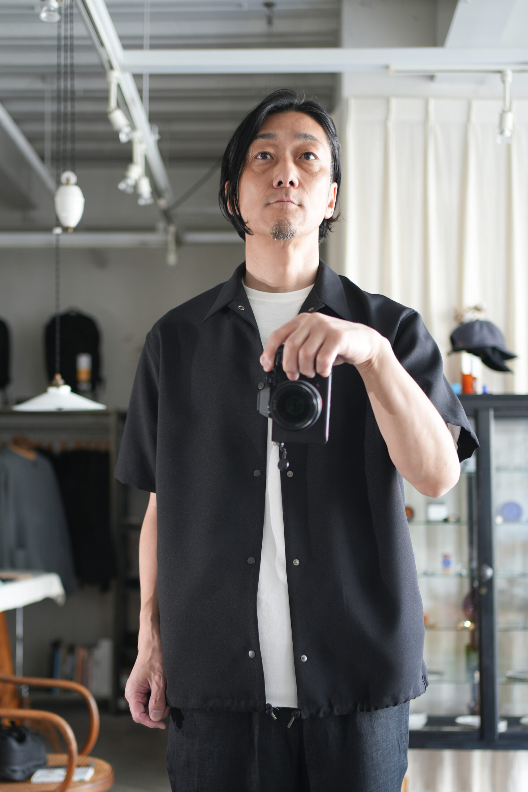 機能素材で仕立てた、コーチジャケットデザインの半袖シャツ。リサイクル原料100%のポリエステルを使用しソリッドなトロピカル織でマットなルックスに仕上げました。 サラッとしたドライタッチに加え、接触冷感・UVカット・ストレッチ性を備えた高機能素材。洗濯可能で日常使いにも最適です。デザインはコーチジャケットをベースに再構築。前立てにはドットボタンを配し、裾にはスピンドルを備えてアレンジを楽しめます。 両脇にはシームポケットを配置し、シャツでありながらライトアウター感覚でも着用可能。機能性と都会的なデザインを融合させ、盛夏のスタイリングに新鮮さを与える一着。