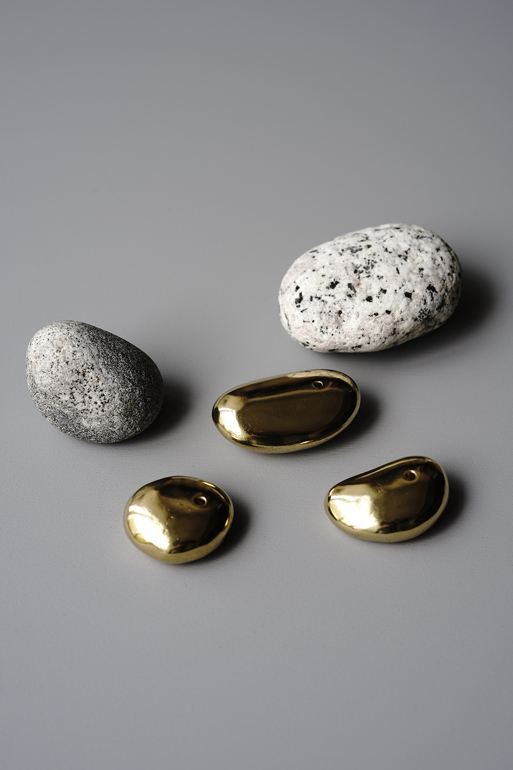 「haec|ハエク」は、佇まいをまとう美しい自然のかけらたちとの出会いをそのかたちそのまま金属に変え、暮らしの中に活かすプロダクト。金属になった石たちにも置石の静かな佇まいは残る、長い年月をかけて風や水の力が作り出したありのままの石の形。自然の力でぶつかり合う事だけでコツコツとゆっくり丸くなった美しい形。Incense sculptureは、石に見立てた真鍮製のお香立て。立ち上がるお香の煙と物静かな石、静かで豊かな時間を過ごせますように。