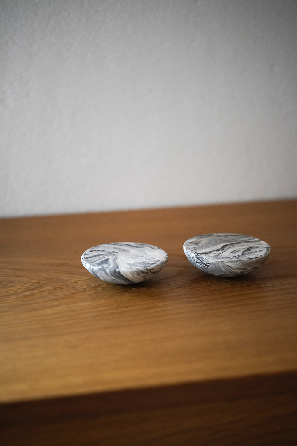 「haec|ハエク」は、佇まいをまとう美しい自然のかけらたちとの出会いをそのかたちそのまま金属に変え、暮らしの中に活かすプロダクト。金属になった石たちにも置石の静かな佇まいは残る、長い年月をかけて風や水の力が作り出したありのままの石の形。自然の力でぶつかり合う事だけでコツコツとゆっくり丸くなった美しい形。Incense sculptureは、石に見立てた真鍮製のお香立て。立ち上がるお香の煙と物静かな石、静かで豊かな時間を過ごせますように。