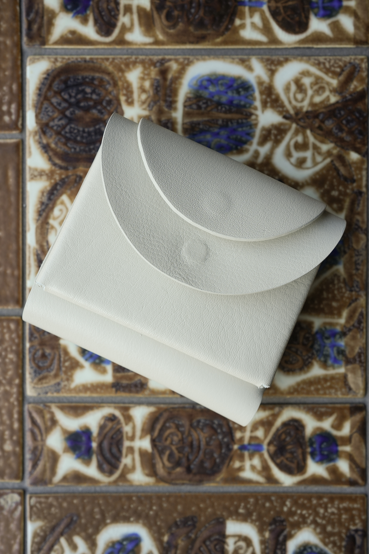 円を折り重ねた造形に機能を見出しデザインするFOLDシリーズ、2つの円が重なりあったデザインの二つ折り財布。上に重なる半円フラップを開けると手前にカード/奥に札入れ、下のひとまわり大きい半円フラップを開けると前面に付いたコインポケットが大きく開きます。カードポケットは内部に仕切りが付き、片側のポケットにクレジットカードの厚みで6枚まで入り、最大12枚程度の収納が可能。背面のフラップ内側に隠しカードポケット1あり。発色が良くキメ細かいハイグレードのイタリアンレザーを使用。ソフトでハリがあり傷や汚れに強く、経年変化が少ないとても扱いやすい素材です、Made in Japan。イタリア製のクロームなめしの牛革(Mastrotto社NAPPAレザー)。発色が良くキメ細かいナッパレザーは、ソフトでハリがあり傷や汚れに強く、経年変化が少ないとても扱いやすい素材です。革本来の表情を活かすため、表面加工を出来るだけ抑え自然の表情に仕上げています。そのため天然素材がもともと持っているキズやシワ、染色や加工の際に生じる色むら、黒点などがあります。これらはご使用いただく中で自然に馴染んで目立たなくなっていきます。コンパクトな大きさ、きめ細かで上質な牛革、遊び心のあるデザイン。使い勝手抜群なコンパクトお財布です。