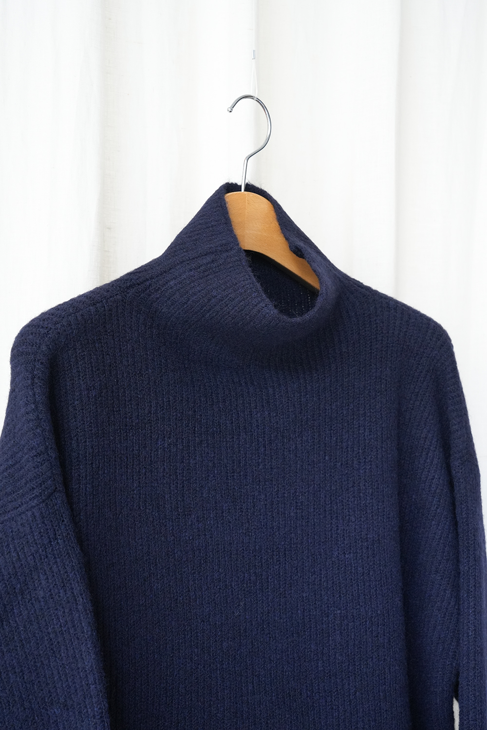 首元をすっぽりと優しく覆ってくれるボトルネックのニットは、暖かく防寒性もありながら1枚でも様になります。