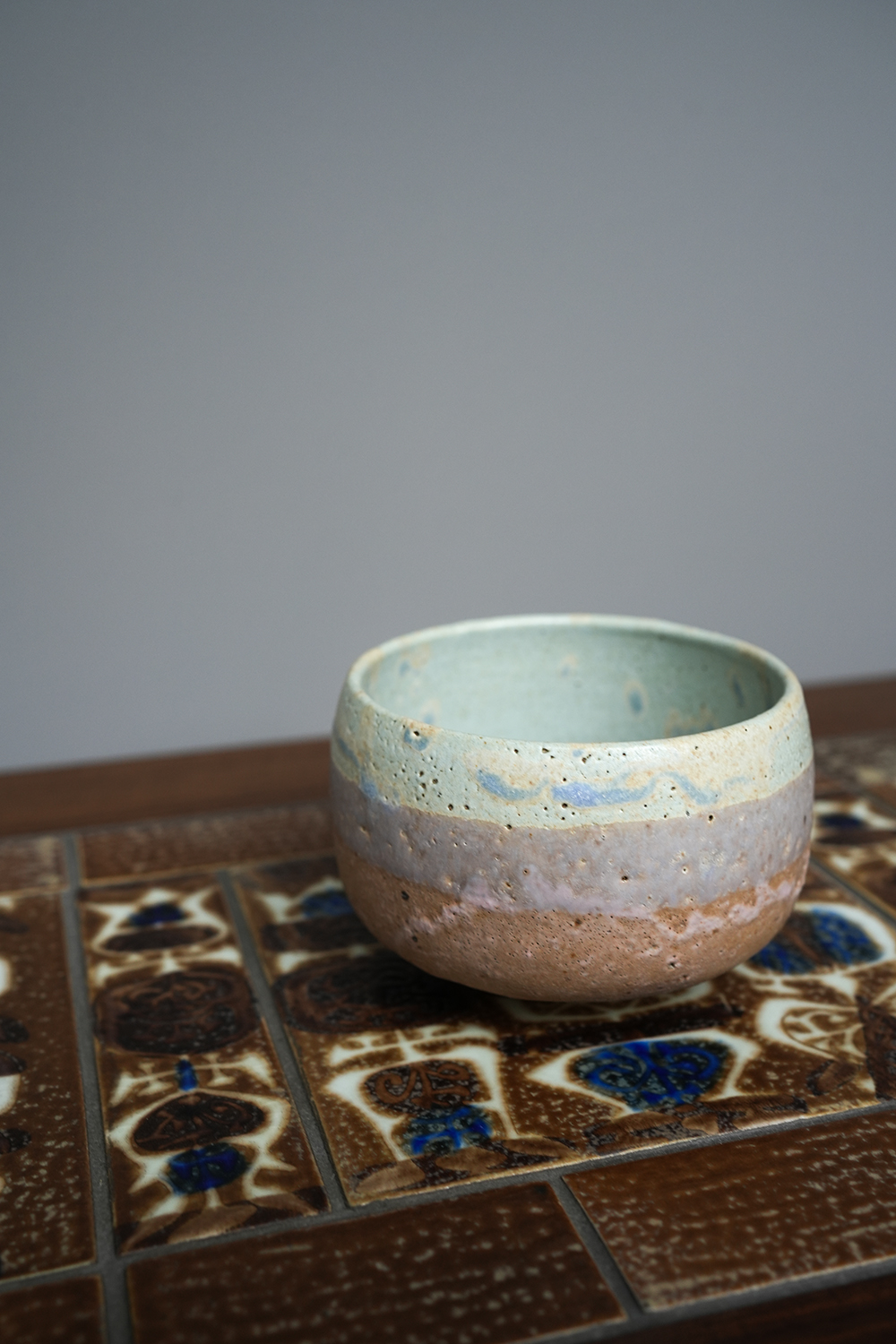 陶芸家 竹村 良訓さん作、水色桃薄茶釉抹茶碗。