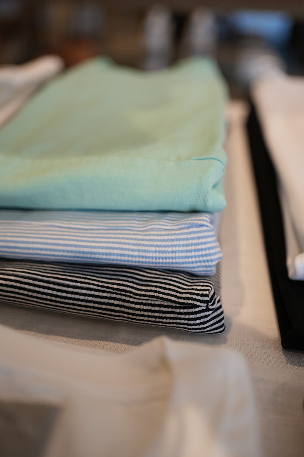 無地感覚でコーディネートできるマイクロボーダーで作ったユルリTEEボーダー。