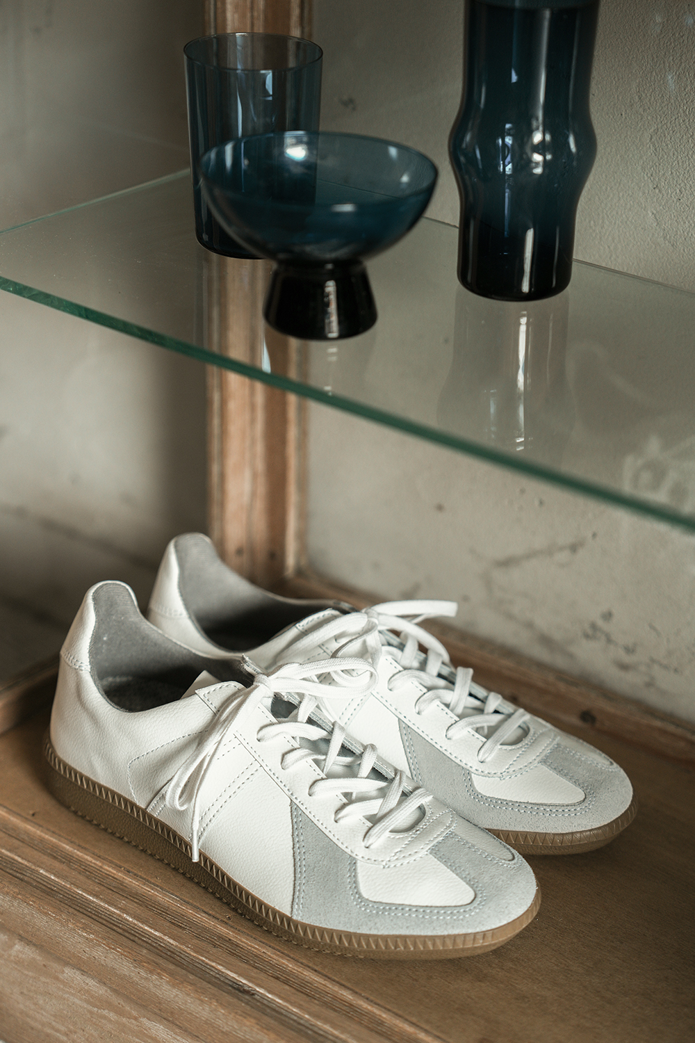 ジャーマントレーナーは、1970年代〜1994年にかけてドイツ軍でトレーニングシューズとして支給されたスニーカー。クッション性と耐久性に優れた分厚いガムソールは当時の人体工学に基づくもので疲れにくく、ミリタリーアイテムならではの機能性を感じさせるスニーカーです。カジュアルでも、綺麗なスタイルにも、さまざまなパンツとも相性良くスタイリングできます世界的マスターピーススニーカーの一つジャーマントレーナー。当店は、1994年に廃番となり使われていなかったドイツ軍のトレーニングシューズジャーマントレーナーの木型、ソール、マテリアルを用い、当時の靴作りに使用していた機械を使用し伝統的な製法を引き継ぎ、世界初となる復刻版ジャーマントレーナーを生み出したリプロダクトの元祖である今は無き会社の系譜を継ぐ会社様の生産モデルをセレクトしております。現在も尚、当時と同じラスト(木型)、カットナイフ、アウトソール、マテリアル、シューレースを用いた仕様、製法でスロバキアにて生産しています。