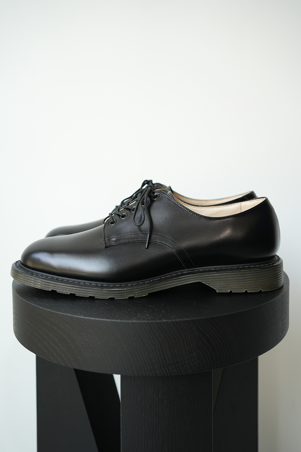 アッパーには撥水性のある全天候型のレザーを使用。ドイツのクラウス・マーチン博士が考案したAIR CUSHIONED SOLEの技術を現代の技術と素材でリファインした「Luftgepolsterte sohle|ルフトソール」というオリジナルのソールを使用。グリップ力としなやかさを生かしつつ、耐軽量且つ耐久性に優れた仕上がりになっています。クセのないプレーントウのデザインは、かつてのロンドンカルチャーの足元を彷彿させる仕上がり。オーセンティックでありながら進化を遂げた、新しい定番としてふさわしい一足。様々なスタイリングと親和性の高い癖のないプレーントゥシューズ。撥水レザーとLuftgepolsterteソール、心強いレザーシューズです。シューズデザイナー竹ヶ原敏之介氏により2000年に設立されたシューブランド「foot the coacher|フット ザ コーチャー」。選りすぐられた上質な素材を用い、長く愛用できるよう耐久性を備えグッドイヤーウェルト製法をメインに製作しています。シューズのみならず小物に至るまで一貫したこだわりのあるもの作りを追求しています。