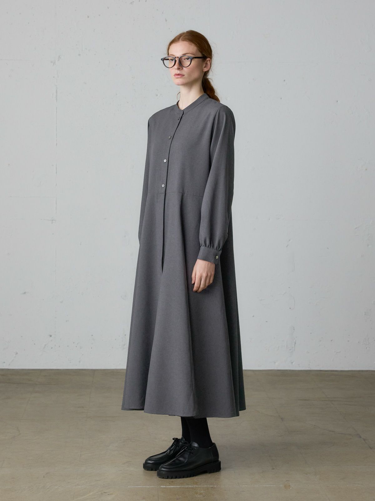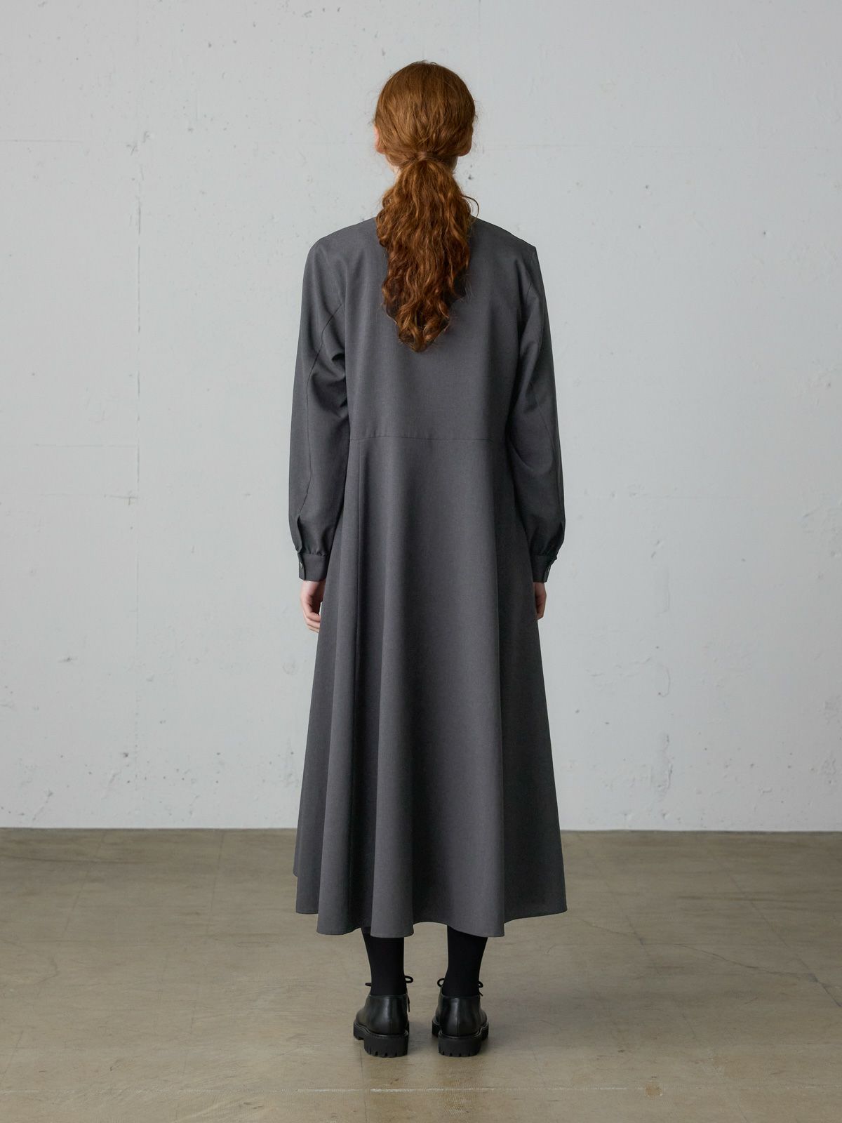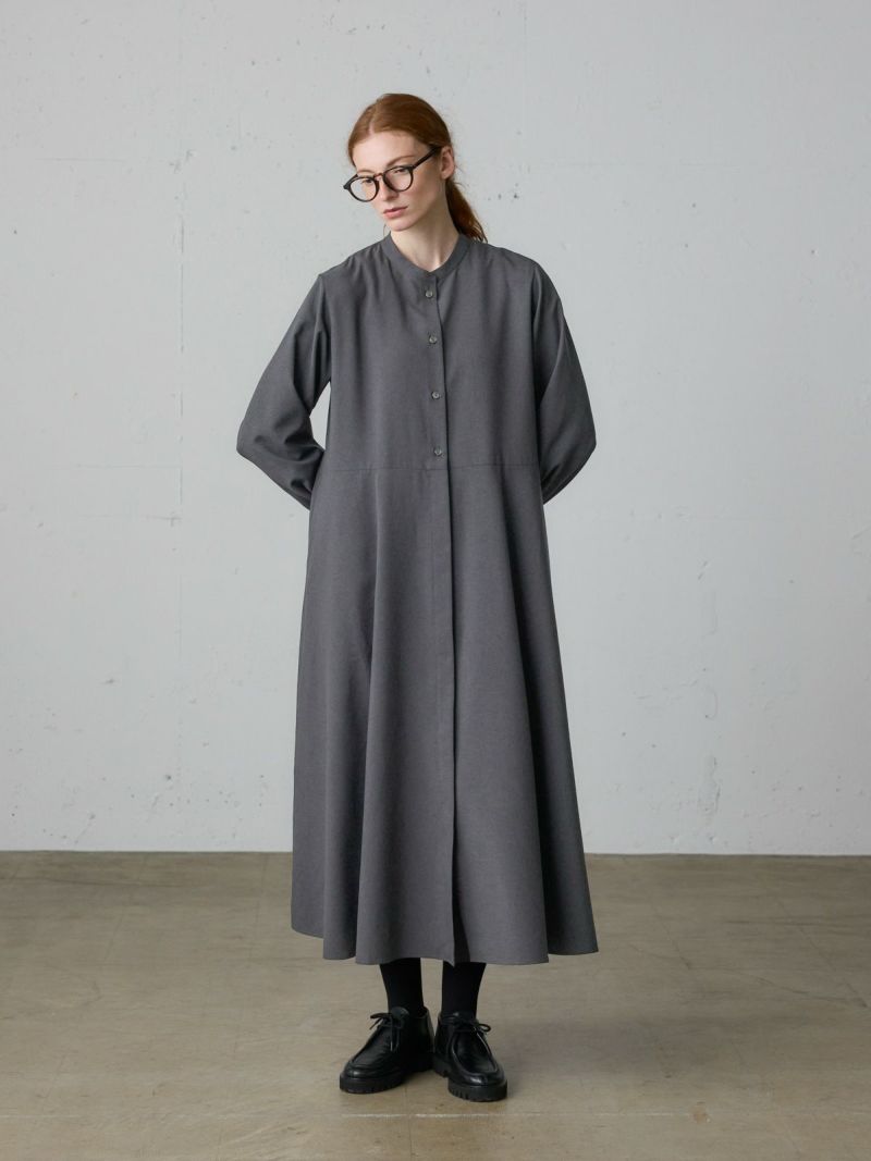 リサイクルポリエステルを100%使用したウエスト切り替えロングワンピース。梳毛ライクで落ち感のある生地が特徴、洗ってもシワになりにくいのがポイント。上見頃は肩周りをコンパクトめに、スカート部分はボリュームをたっぷり使用したバランスのとれたデザインです。落着きがあり上品でクラシカルな雰囲気を提案した1枚。