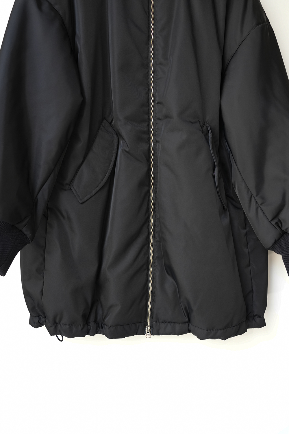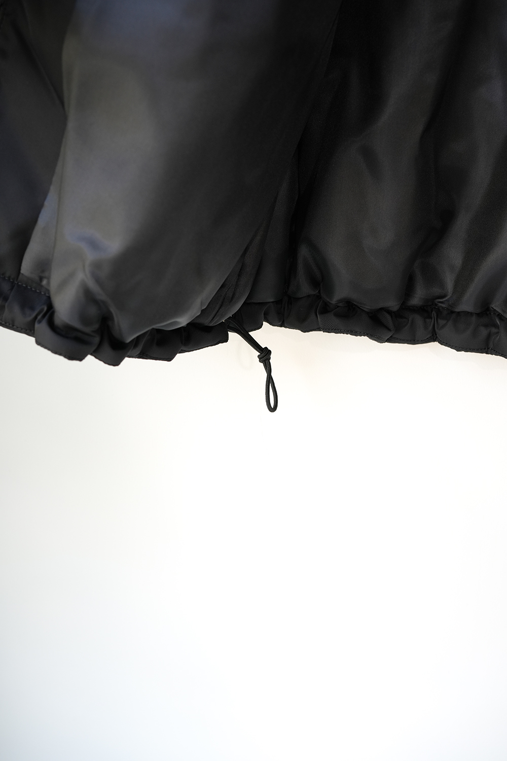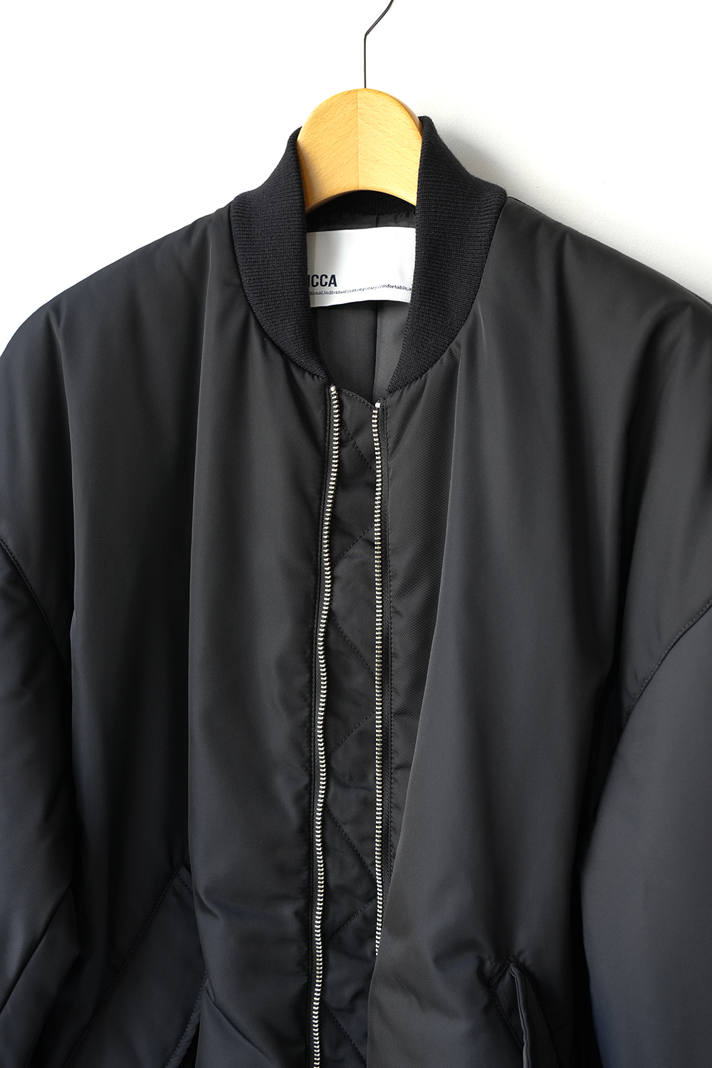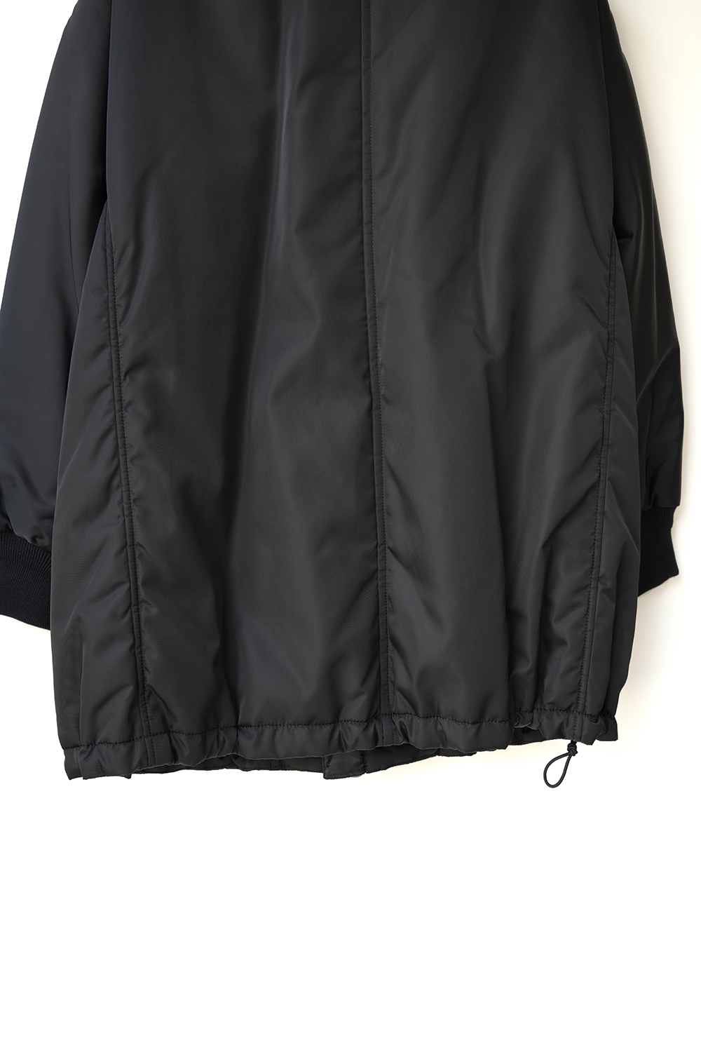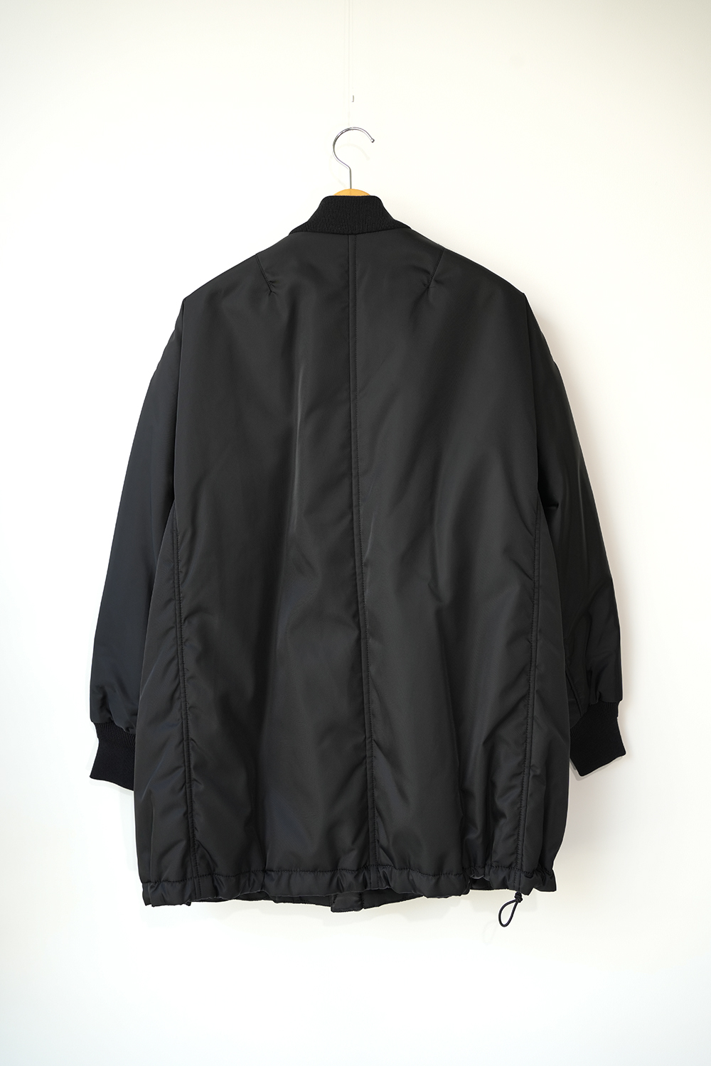 MA-1シリーズから新作のミドル丈モデル、少し丈の長いチュニック丈が合わせやすい新しいバランス。歴史あるミリタリーアイテムをモードな印象に、裾のコードを絞ってコクーンシルエットにすれば、よりモードな印象に。リラックス感のある着心地ながら、大人のきれいめカジュアルを叶える一枚です。パンツスタイルにもスカートにも合わせやすく、端境期の軽やかな羽織として活躍します。アームホールも深いので中にも着こめるのも嬉しいポイント、リサイクルナイロンを使用した他に類をみないほど高密度に織ることで奥行きのあるマットな光がある色の美しさと絶妙なハリ感としなやかさのバランスが良く色気のある表情が特徴の生地。