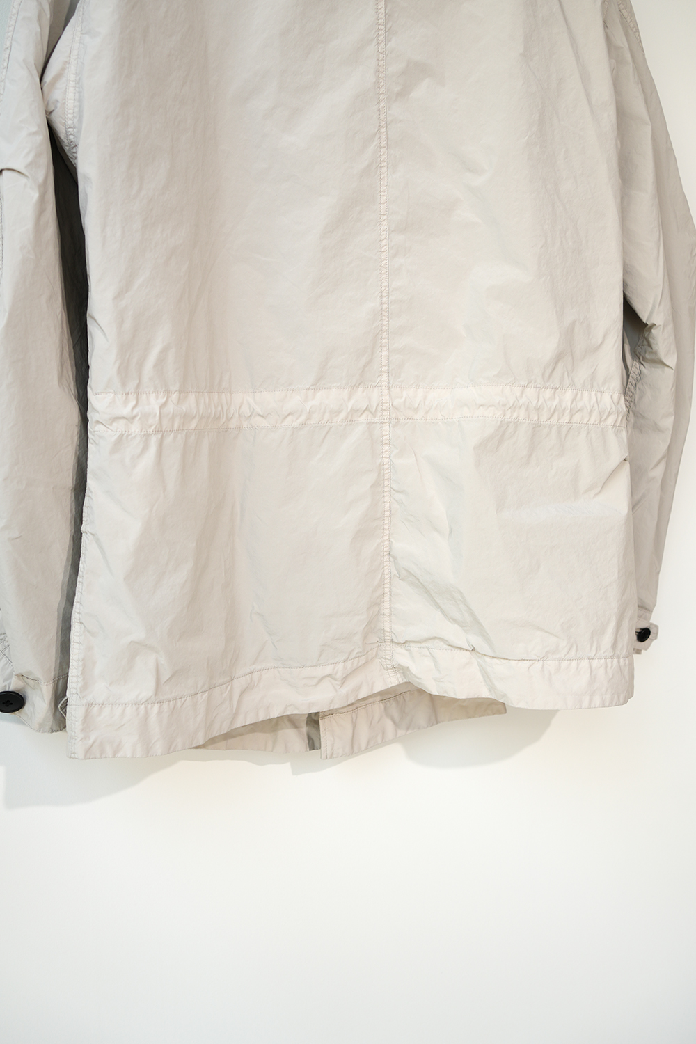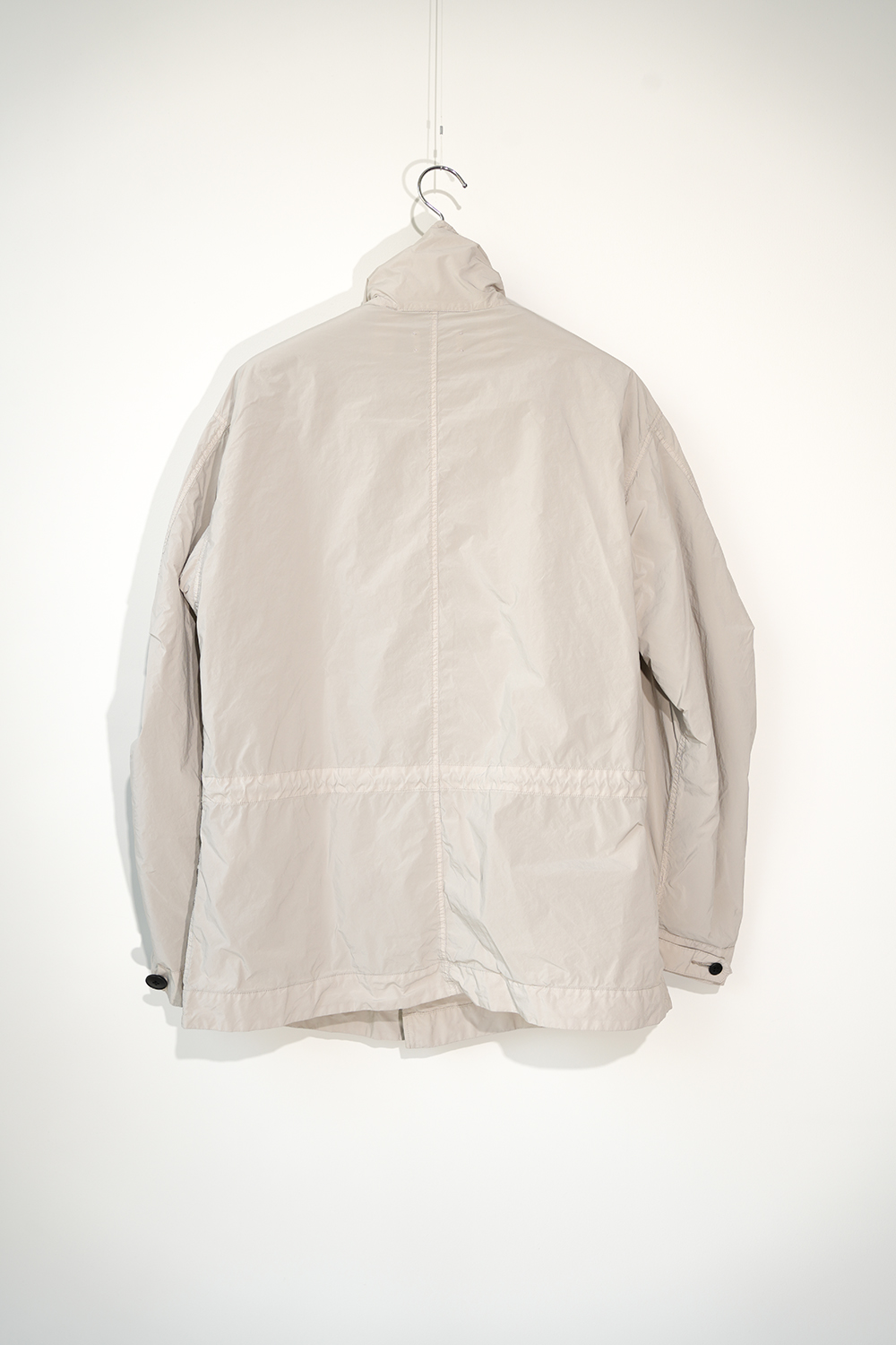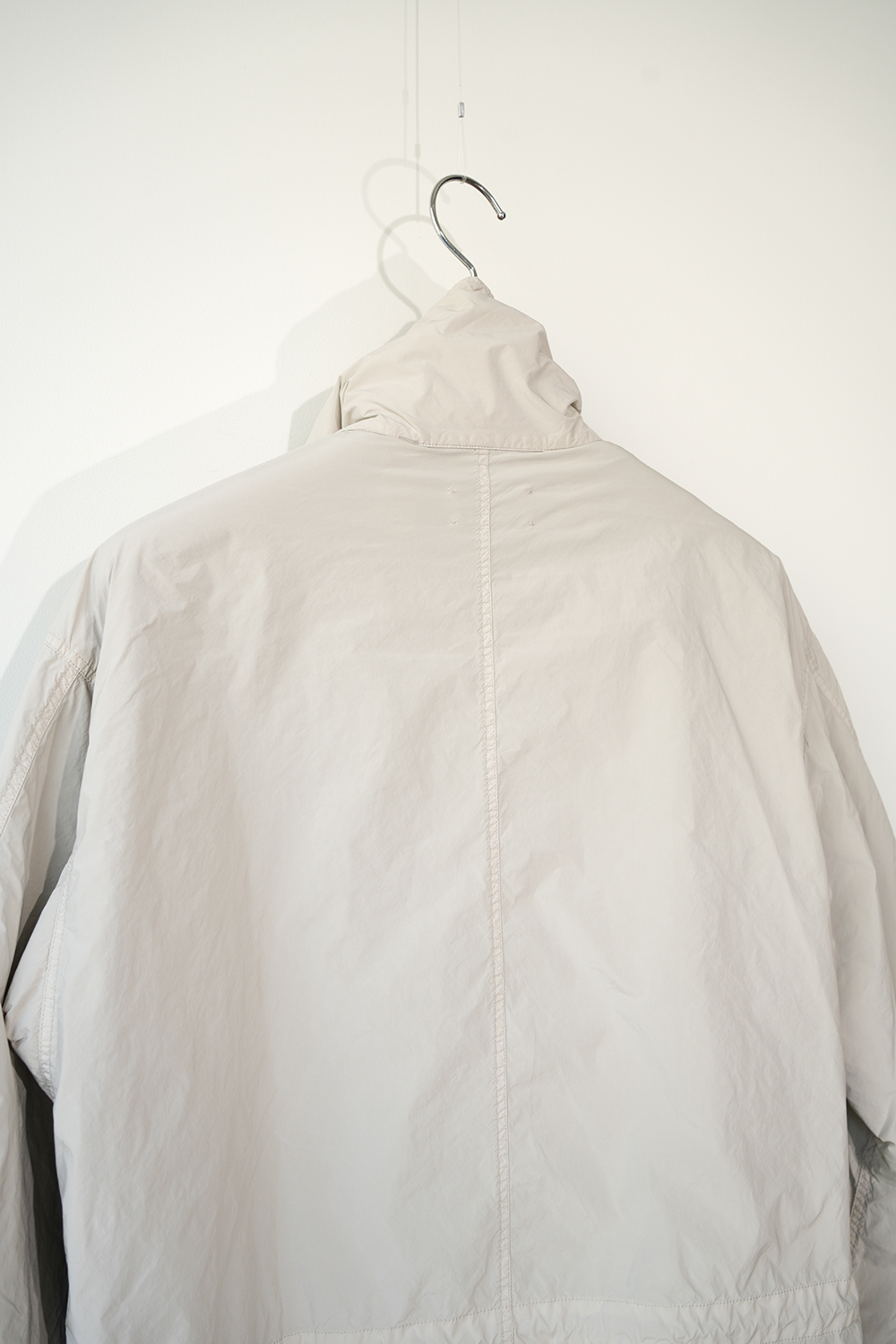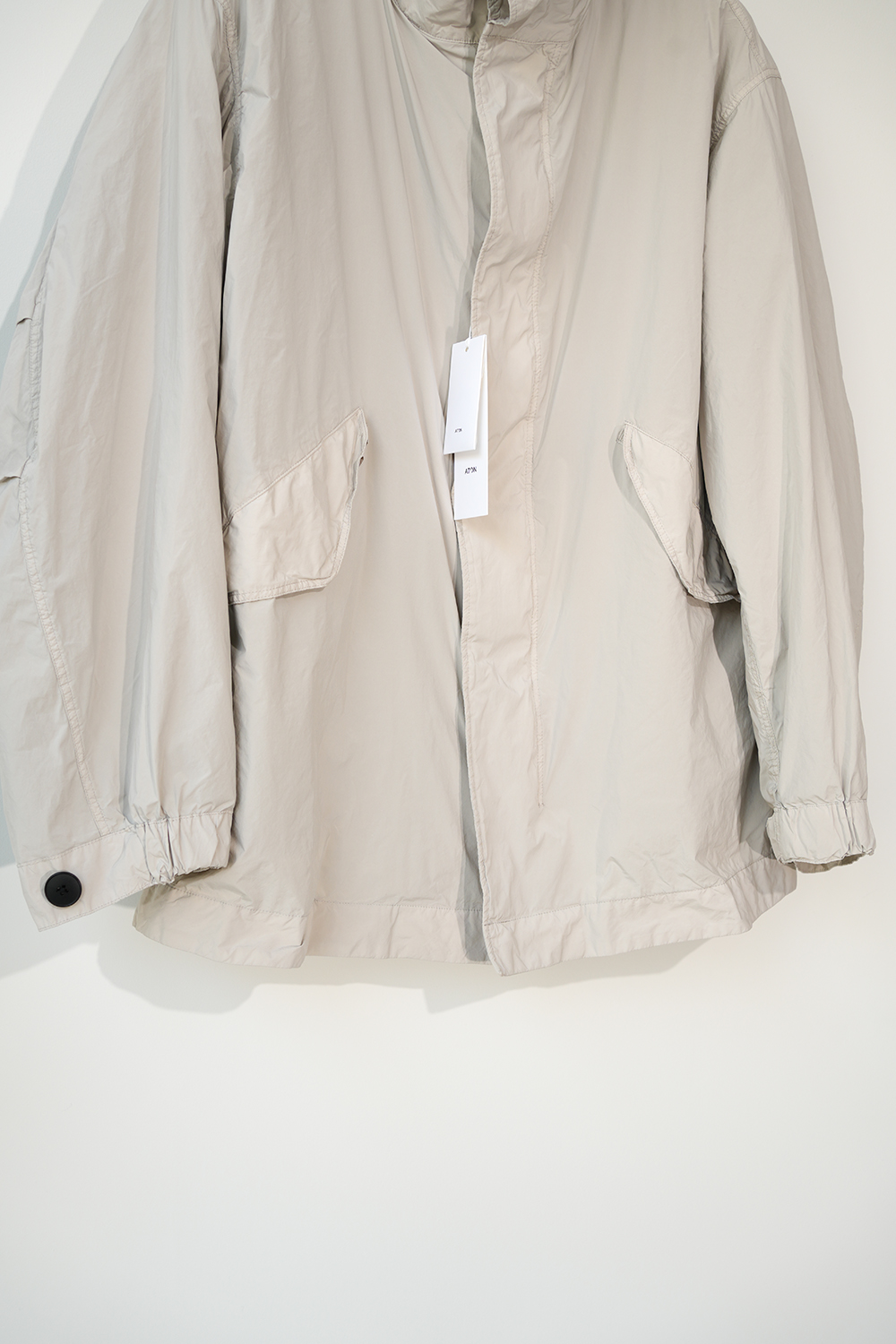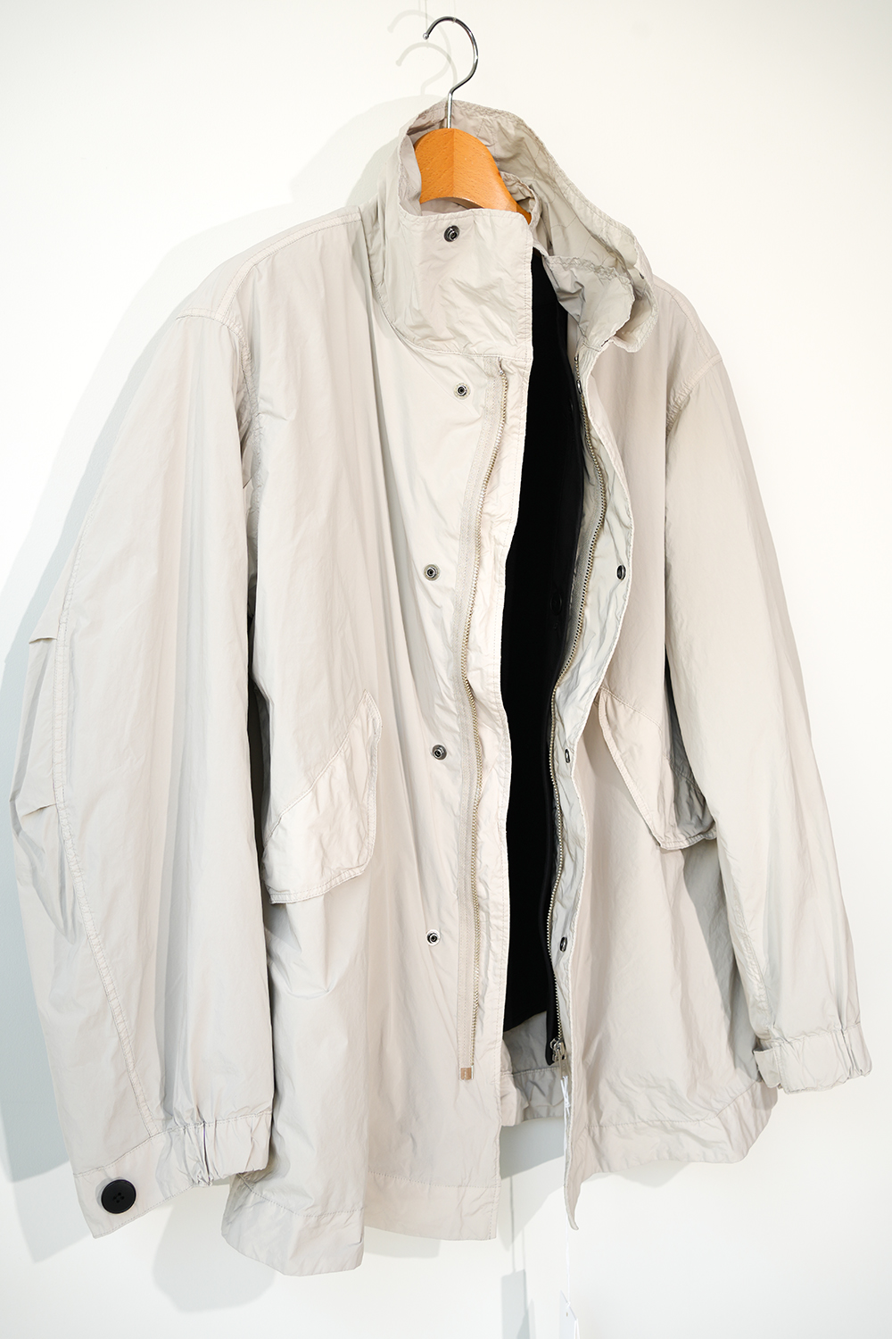 アメリカ軍のM-65モッズコートをベースにしたショートコート。フードを取り、裾を横方向にスパッと切ったようなデザインで、ブルゾンのような丈が新鮮なショートコートです。また、高密度のナイロンの表地、ライナーにはウール混の生地を使用し、真冬でも温かく着ていただけます。シワになりにくく、持ち運びにも便利で、ライナーを取り外すと3シーズン活躍してくれるアウターです。ナイロンとポリエステルの熱収縮率の違いを生かし、環境の変化により表情が変わっていく様を楽しむことのできる、天然繊維のような糸を使用し、石川県能美市にて高密度に織り込むことにより、独特の風合いを表現した素材です。製品染めで仕上げ、撥水加工を施しています。ライナーはしっかりと保温性が伴うので、真冬でも着用することができます。
