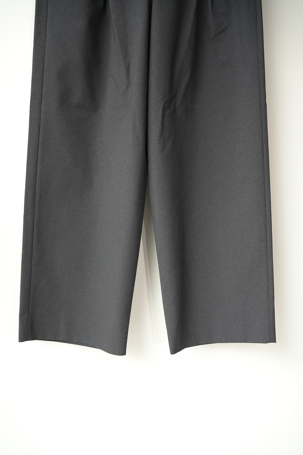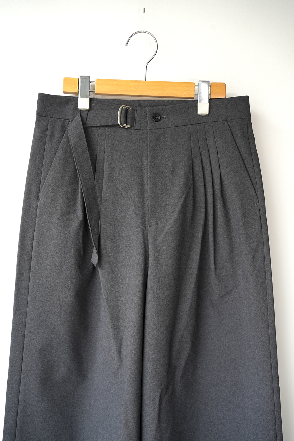 SOLOTEX®︎を使用した4タックワイドパンツ。しなやかでふんわりと弾むクッション性、マットで整ったメランジ感とドライ感のある風合いが特徴です。軽快なストレッチ性とイージーケア性のあるやや薄手のユーティリティー素材です。SOLOTEX®︎、ベルト付ウエスト、ワイドシルエット。Repose Wearは、肩のちからを抜き、自由になる。どこにいても、誰といても着る楽しみを忘れない。White Mountaineeringが提案する、リポーズシルエットのアイテム。