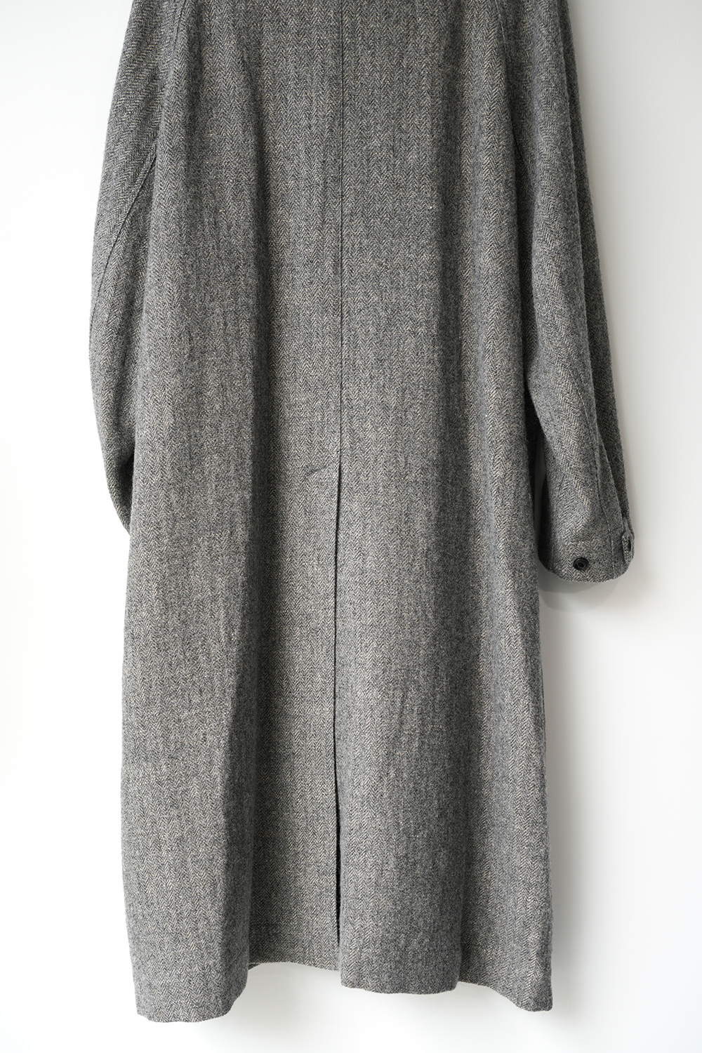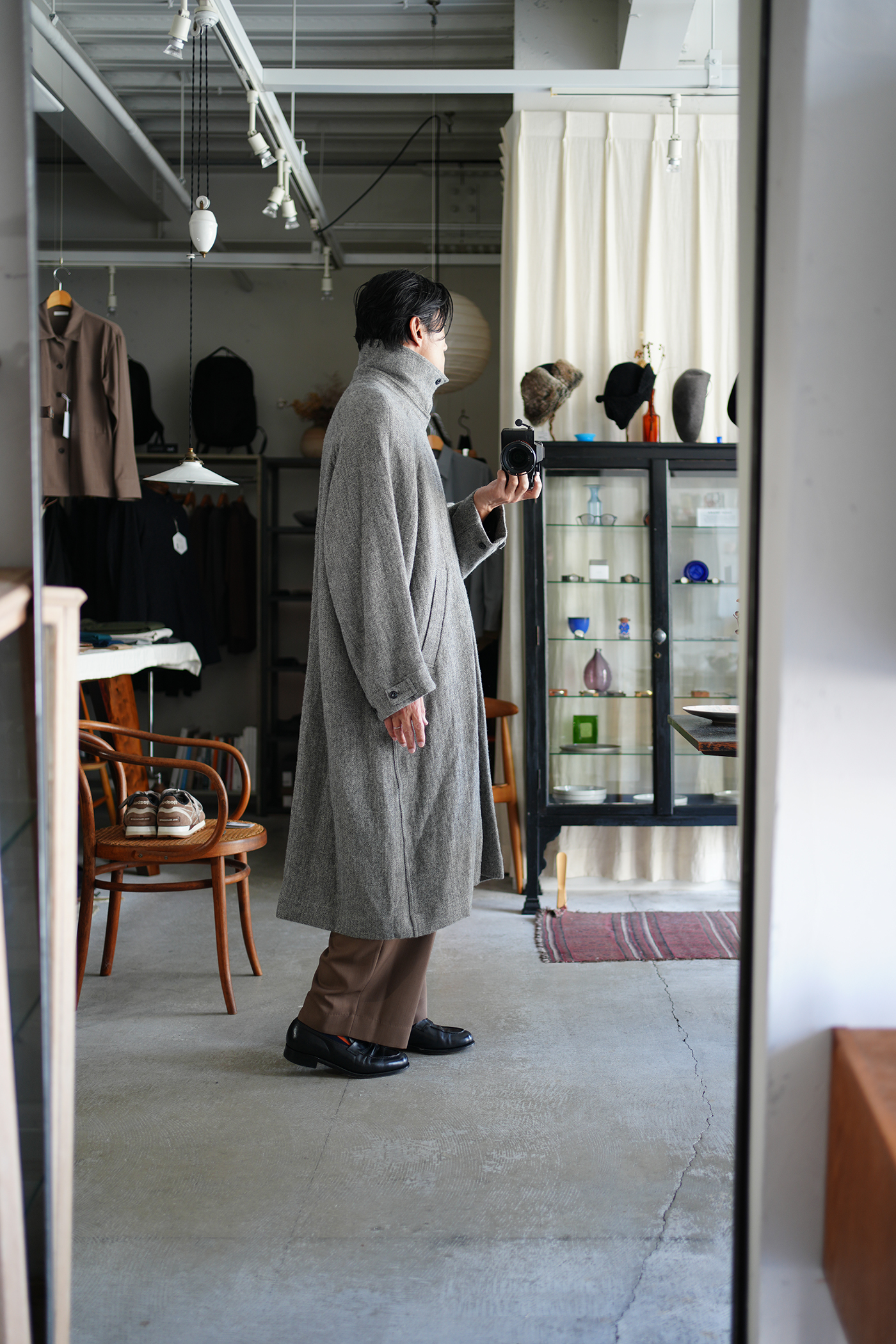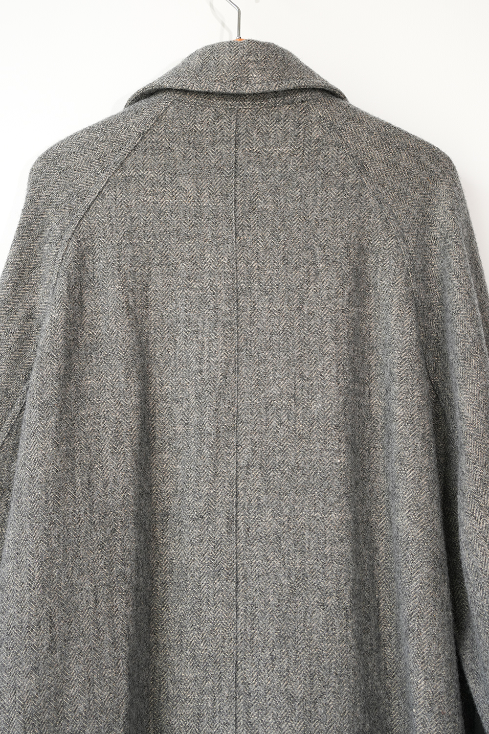 タテ糸にメランジウール、ヨコ糸にリネンを用いたヘリンボーンを使用したシリーズ。仕上げにタンブラー加工する事でナチュラルな風合いに仕上げています。