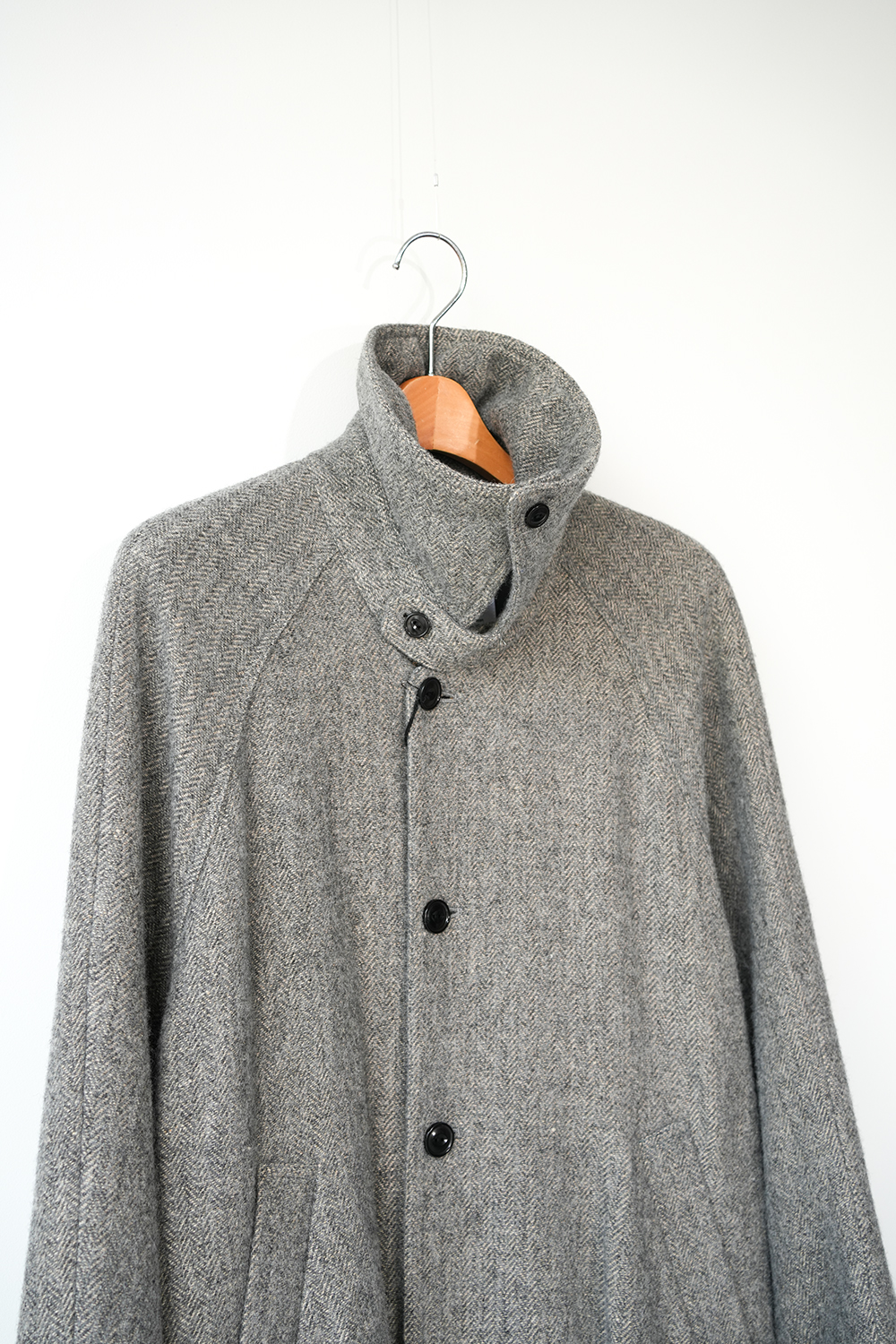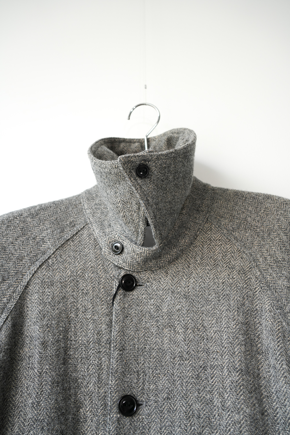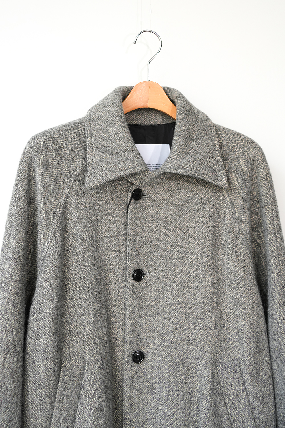 タテ糸にメランジウール、ヨコ糸にリネンを用いたヘリンボーンを使用したシリーズ。仕上げにタンブラー加工する事でナチュラルな風合いに仕上げています。