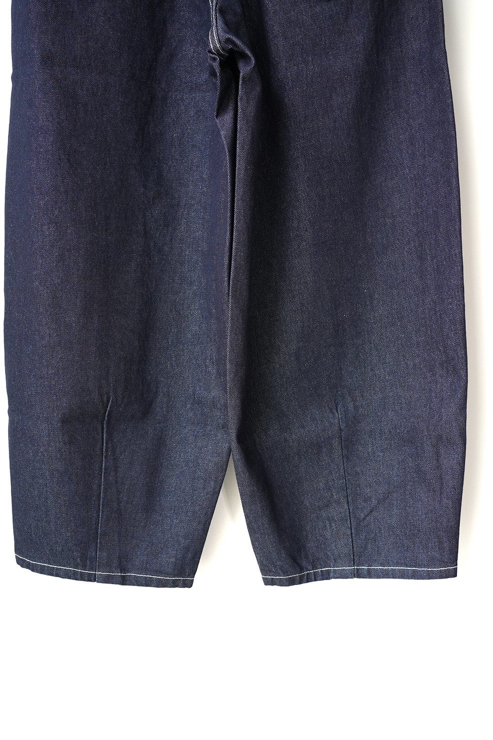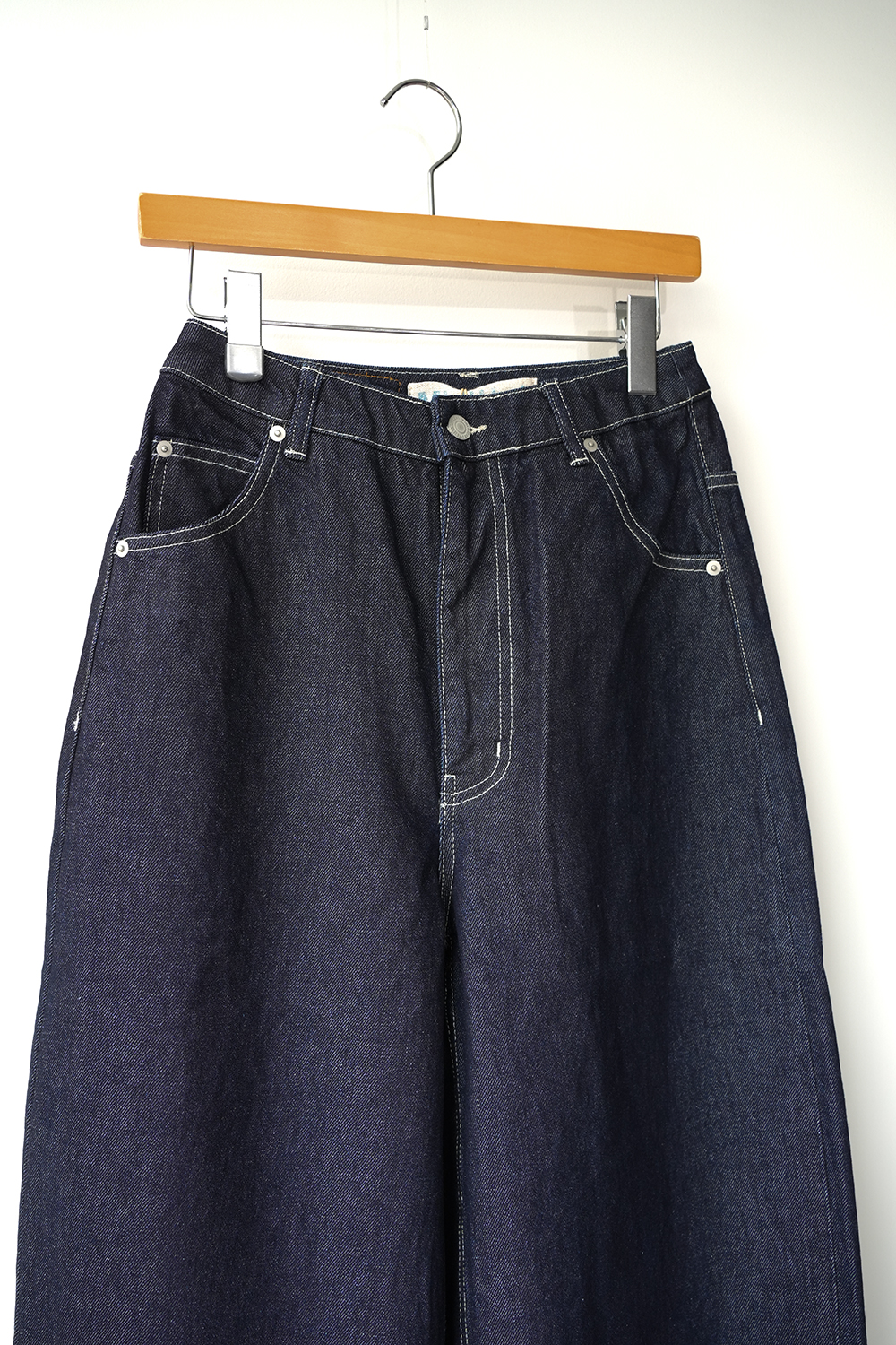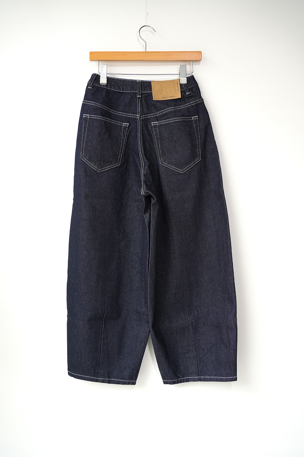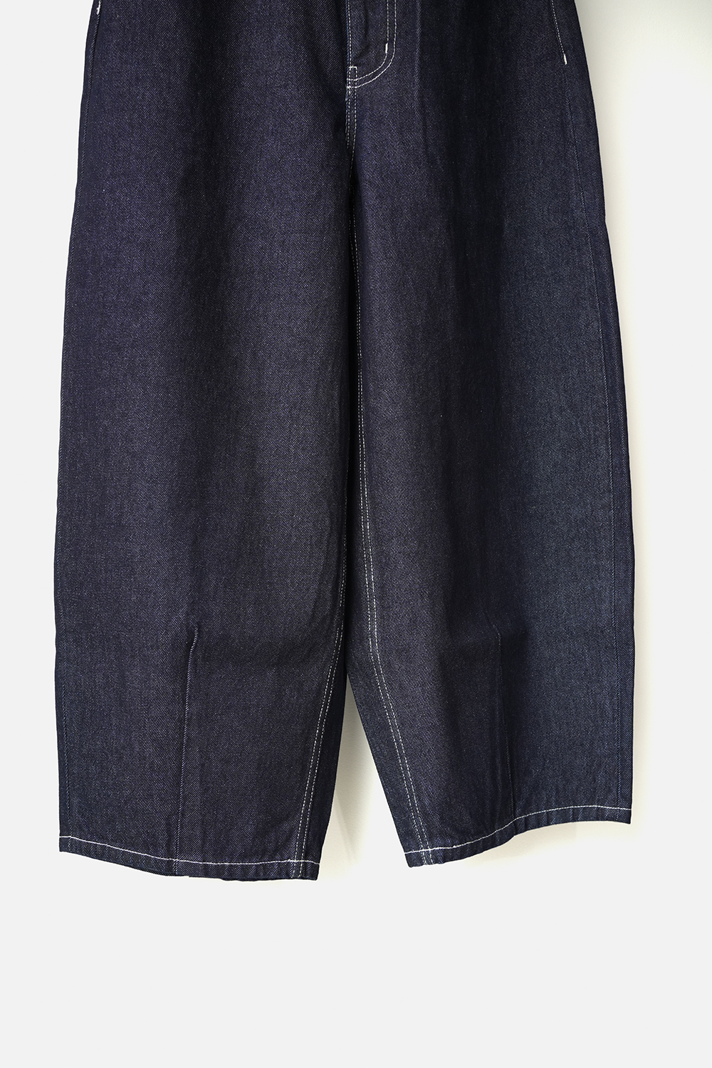 ハイウエストで丸みのあるシルエットが特徴のカーブデニム。ハイウエストでも腰穿きでもコーディネートを楽しんでいただけます。前後に裾ステッチを入れたデザインで裾をロールアップしていただいても素敵です。