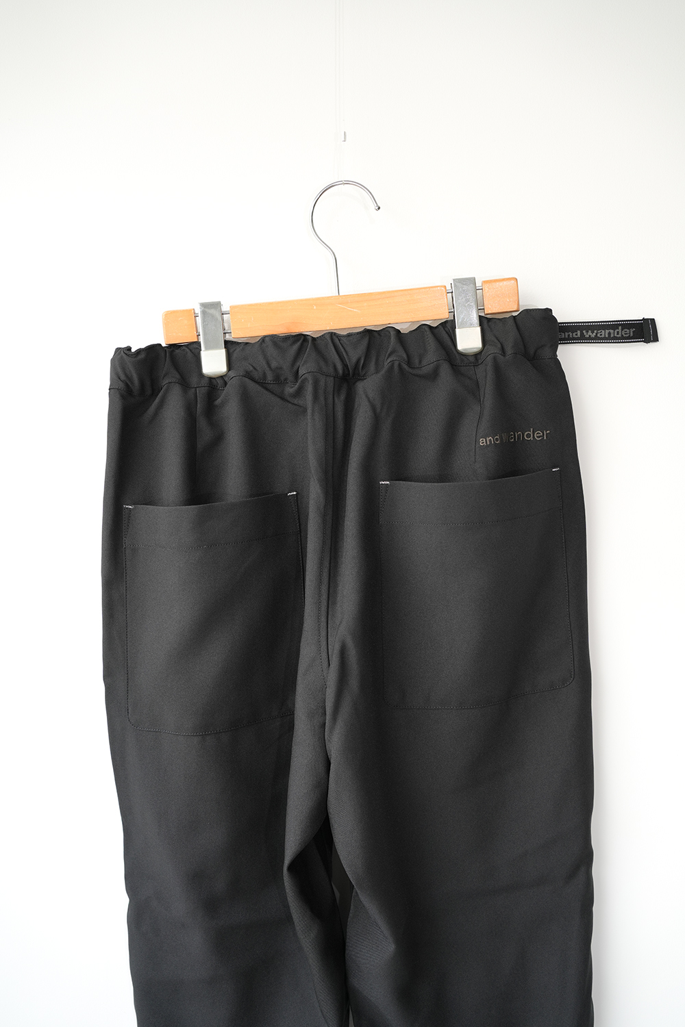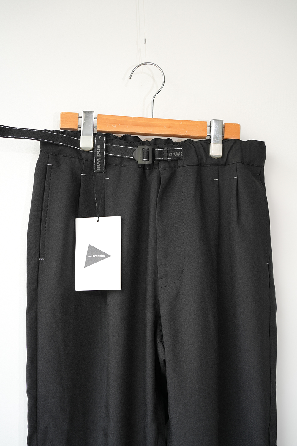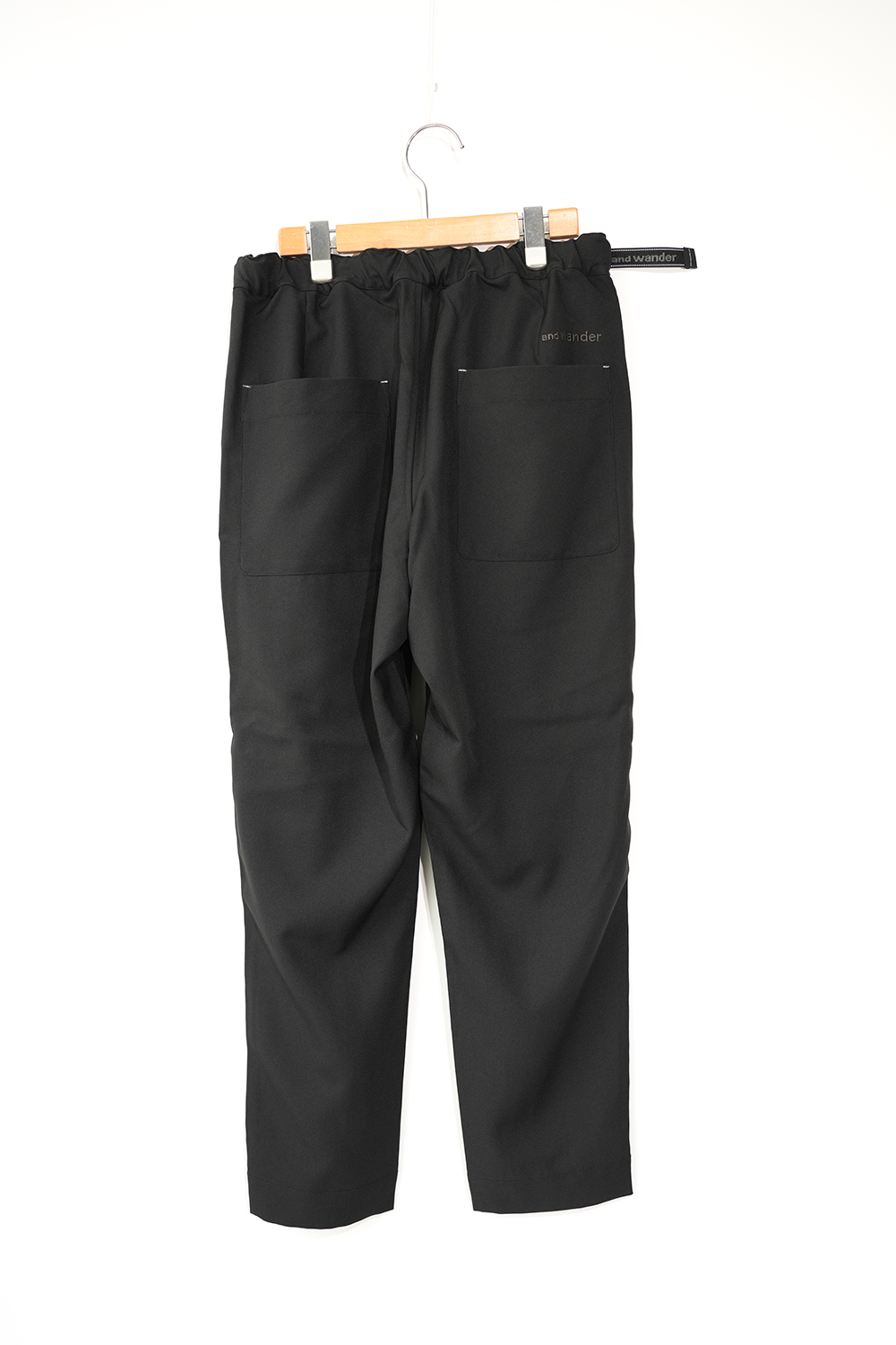 綺麗な梳毛ウール生地の様なストレッチツイル素材、撥水性ありのある緩やかなテーパード感のあるパンツ。