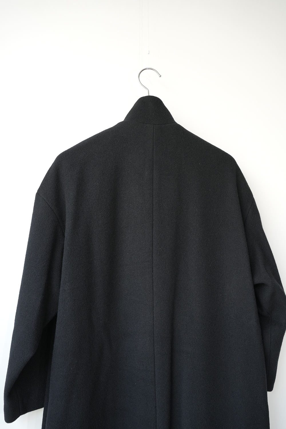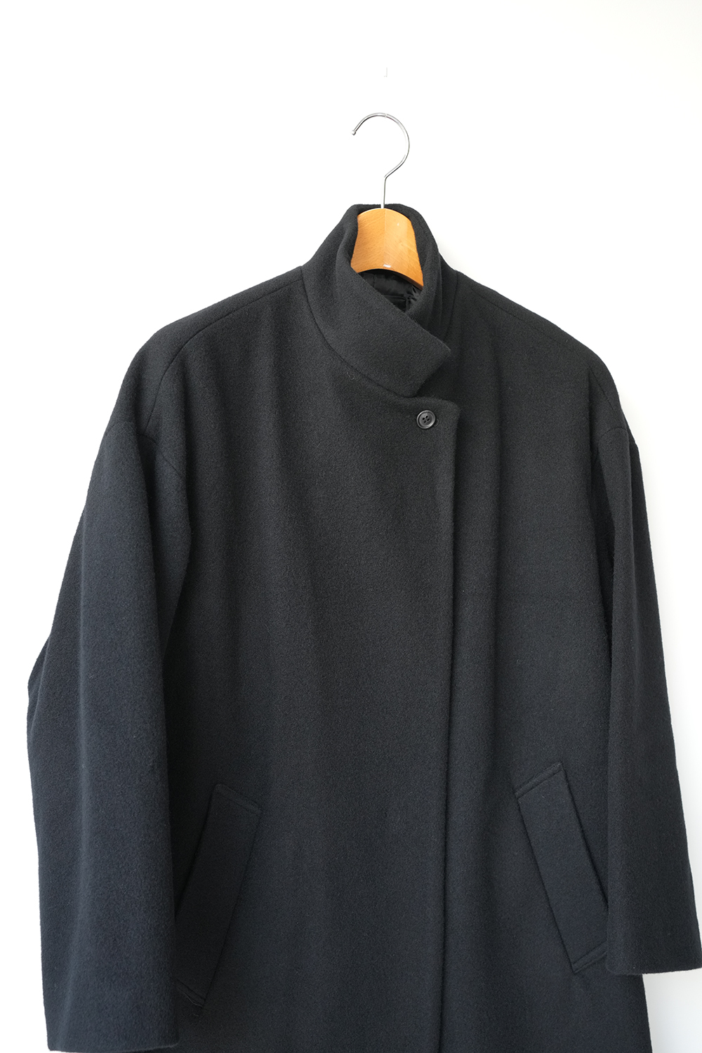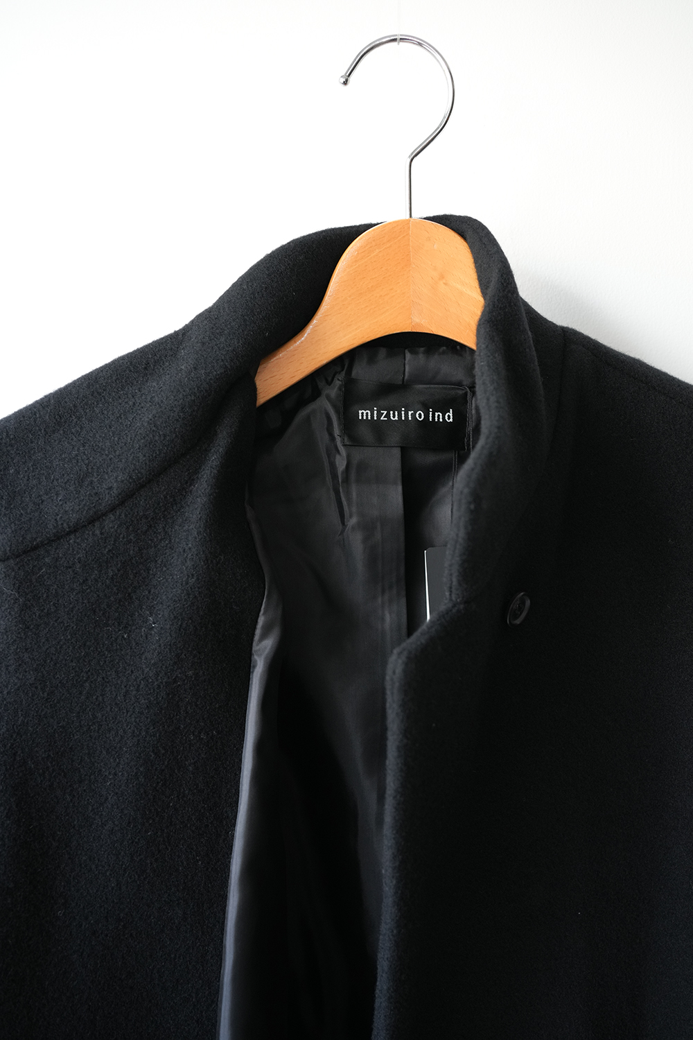 mizuiro indで長く愛され続けている定番のスタンドカラーコート。シンプルながらも洗練されたデザインで、着る人のスタイルを引き立てます。襟を立てればスタイリッシュな印象に、折り返せばテーラード風の上品な雰囲気に。一枚で印象を変えられる、汎用性の高いアウターです。すっきりとしたストレートシルエットに、膝を覆うロング丈。どんなアイテムともバランスが取りやすく、ボトムス問わず合わせやすく毎日活躍します。軽くてあたたかなウールモッサ素材を使用し、冬の装いに軽やかさをプラス。重く見えがちな季節のコーディネートも、軽快で柔らかな雰囲気に仕上がります。ゆとりを持たせたアームホールで、厚手のニットも重ねやすく、裏地付きで動きやすく快適な着心地。シーズンを通してデイリーに活躍する、mizuiro indらしいミニマルな一着です。