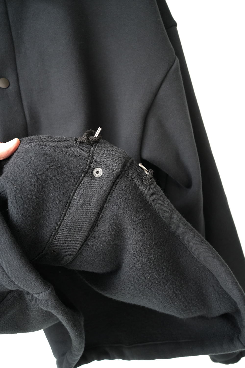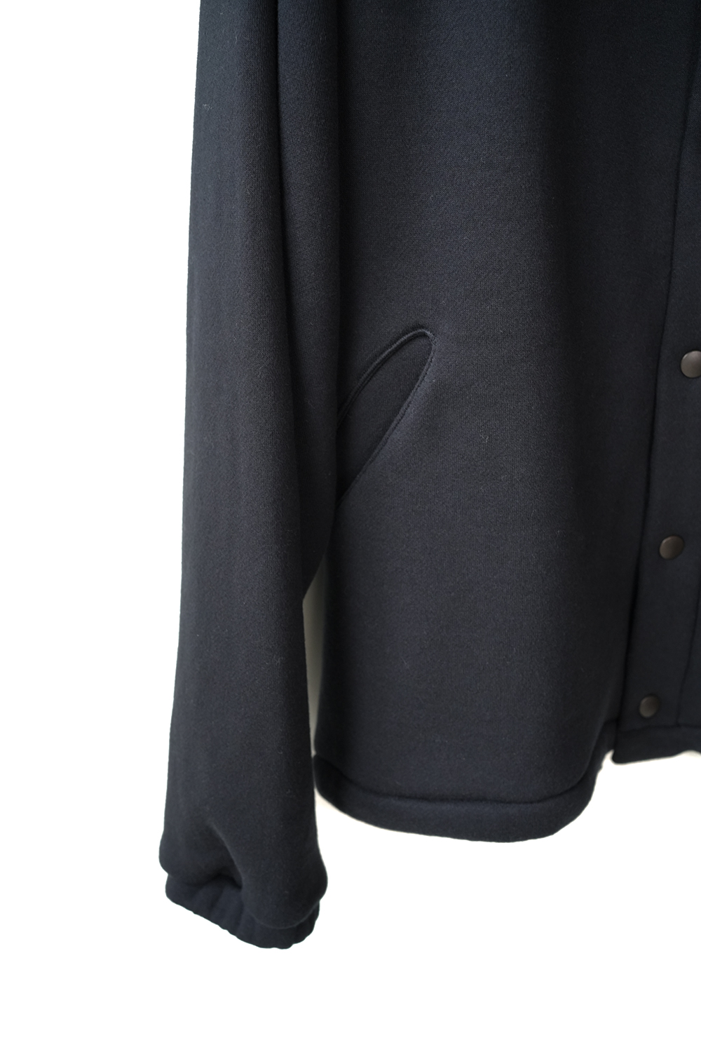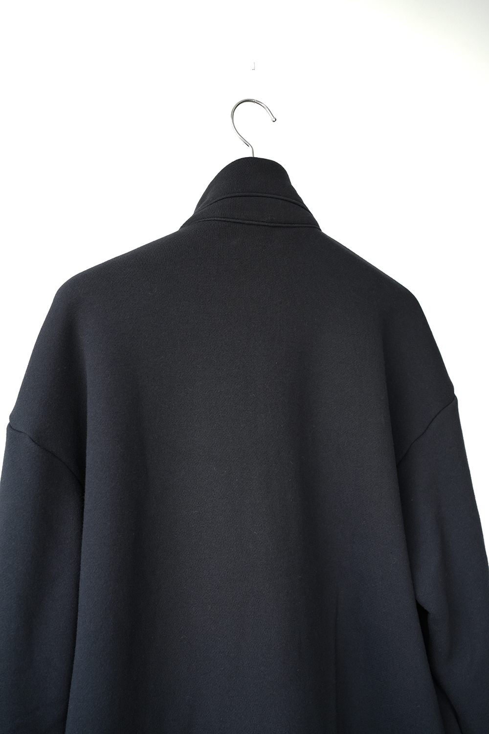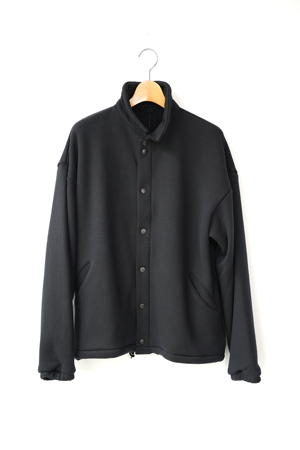 裏面に特殊加工を施した、モコモコとした立体感のある裏毛スウェット生地を使用。柔らかく温かみのある着心地が特長です。小さめの襟は首元をすっきり見せ、ゆったりとしたワイドシルエットでリラックス感があります。裾のドローコードを絞ることで、シルエットに変化をつけられます。コード先端にはチップ加工を施し、細部まで丁寧に仕上げました。開閉はメタルスナップボタン仕様。深めのポケットで使い勝手も抜群です。30/7裏毛の裏面にナッピング起毛を施しました。通常の起毛に比べて毛抜けしにくく、玉状の凹凸のある独特な表面感が特徴です。モコモコとした温かな風合い、洗濯機で洗濯可。