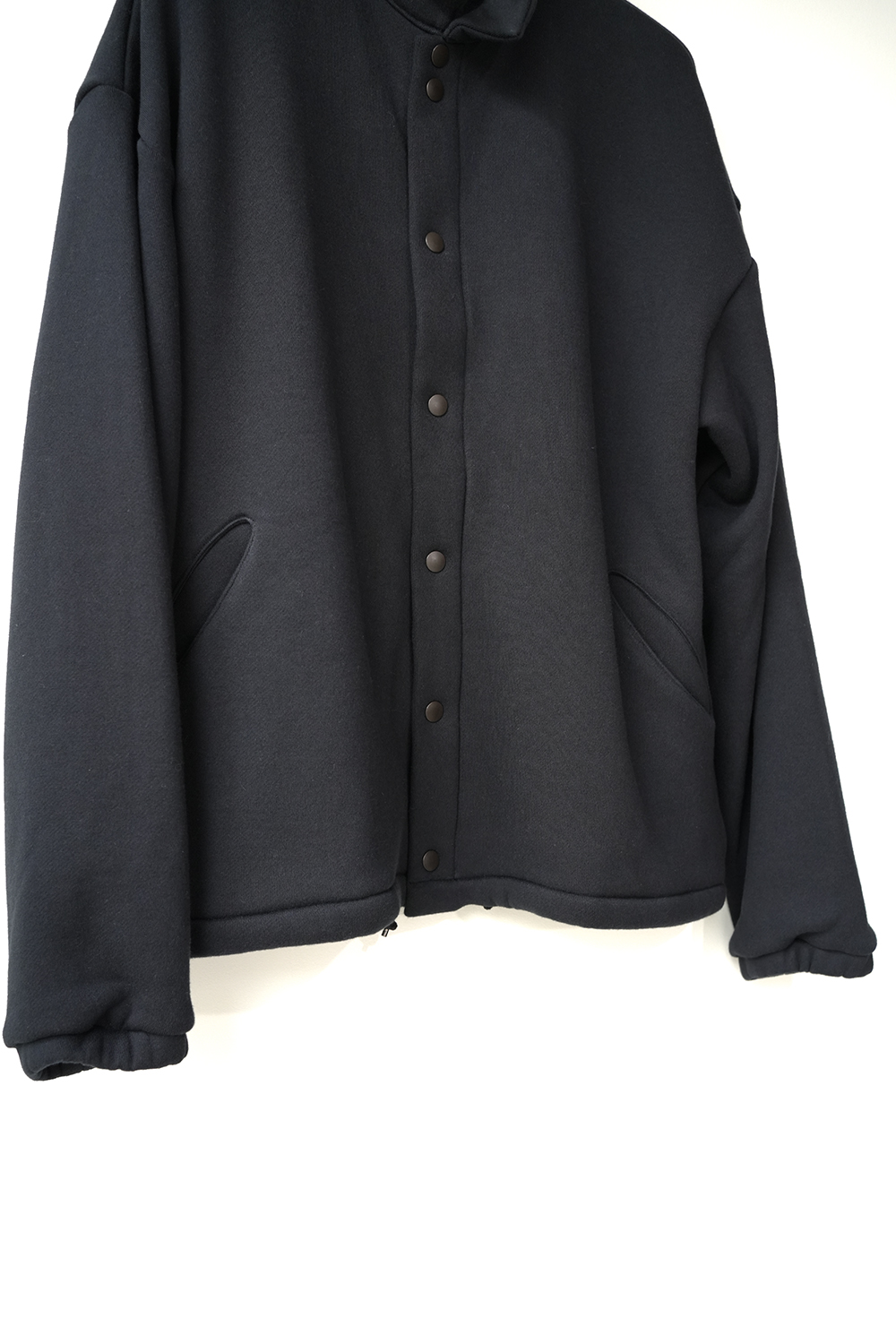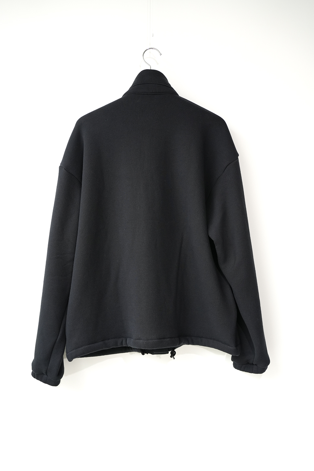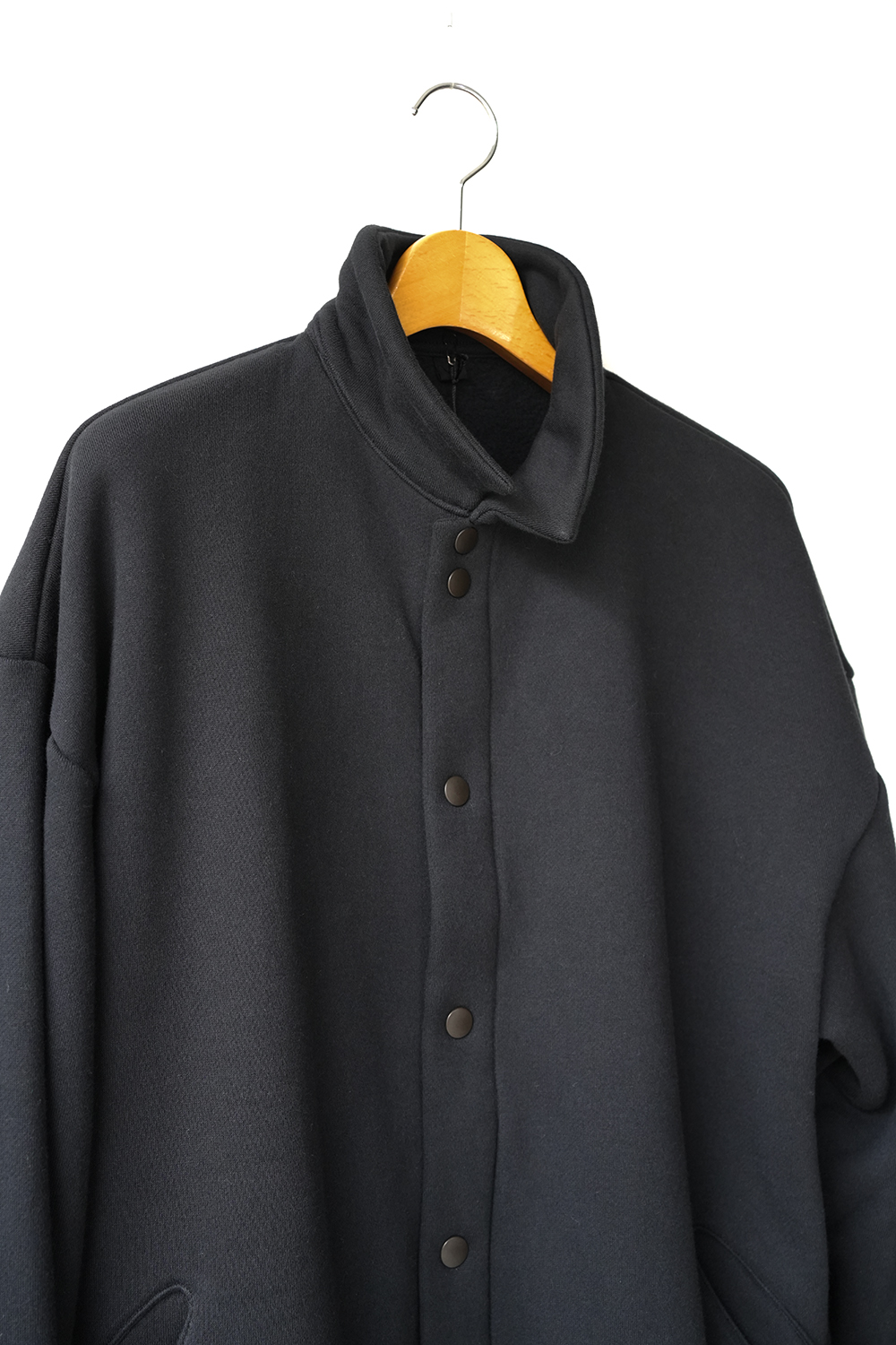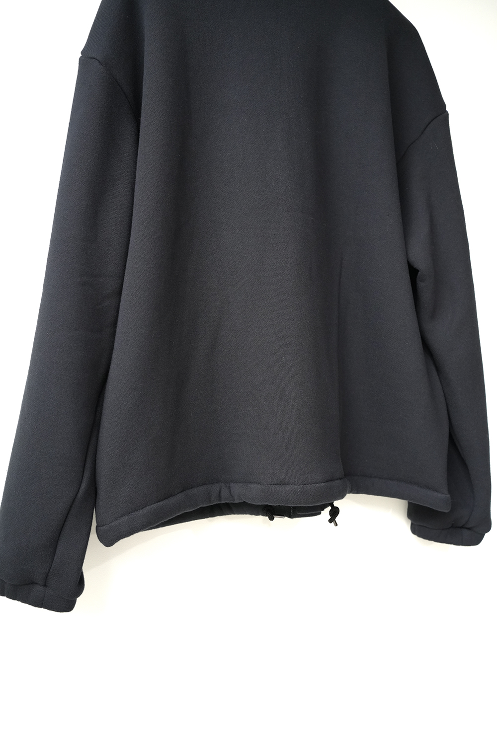 裏面に特殊加工を施した、モコモコとした立体感のある裏毛スウェット生地を使用。柔らかく温かみのある着心地が特長です。小さめの襟は首元をすっきり見せ、ゆったりとしたワイドシルエットでリラックス感があります。裾のドローコードを絞ることで、シルエットに変化をつけられます。コード先端にはチップ加工を施し、細部まで丁寧に仕上げました。開閉はメタルスナップボタン仕様。深めのポケットで使い勝手も抜群です。30/7裏毛の裏面にナッピング起毛を施しました。通常の起毛に比べて毛抜けしにくく、玉状の凹凸のある独特な表面感が特徴です。モコモコとした温かな風合い、洗濯機で洗濯可。