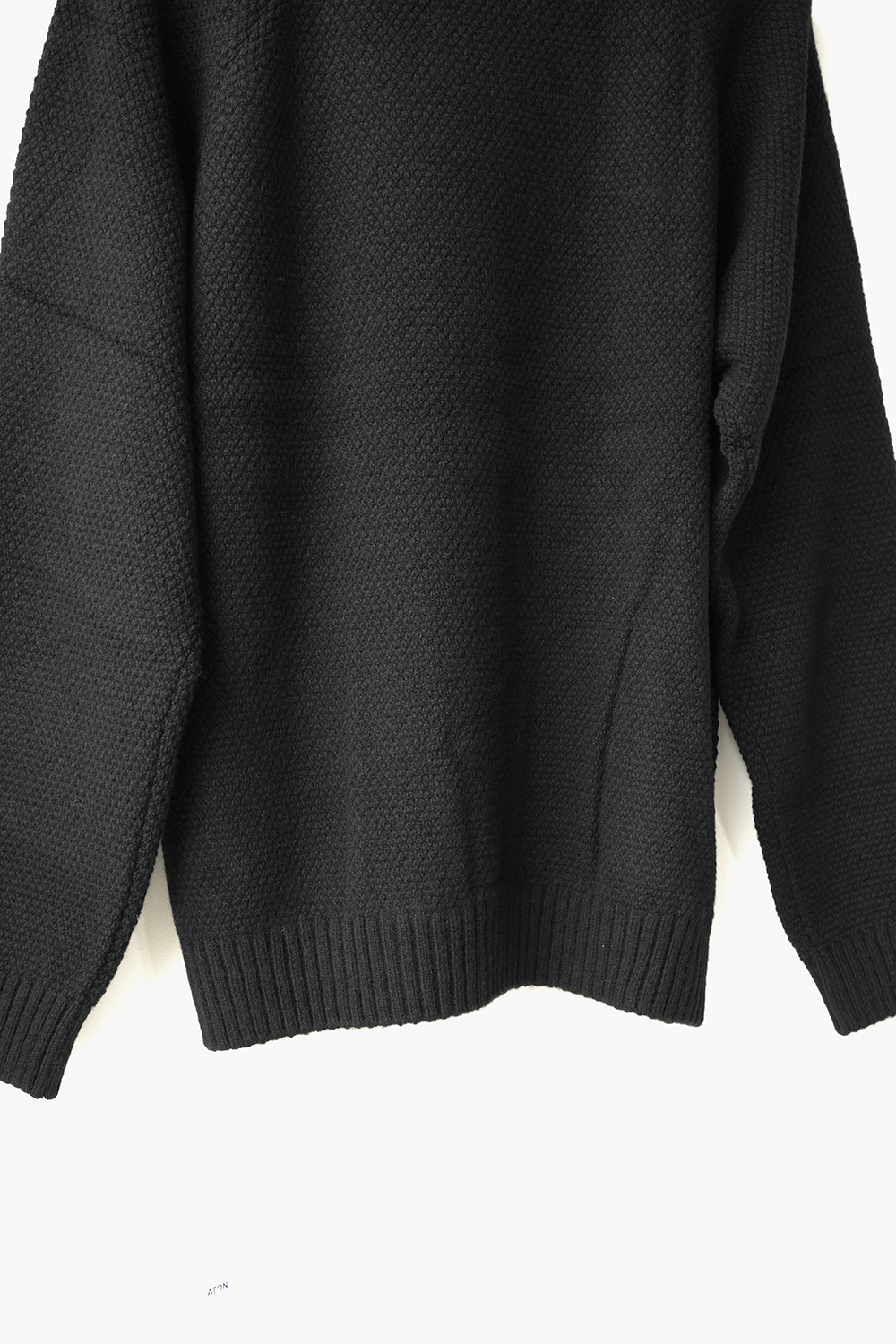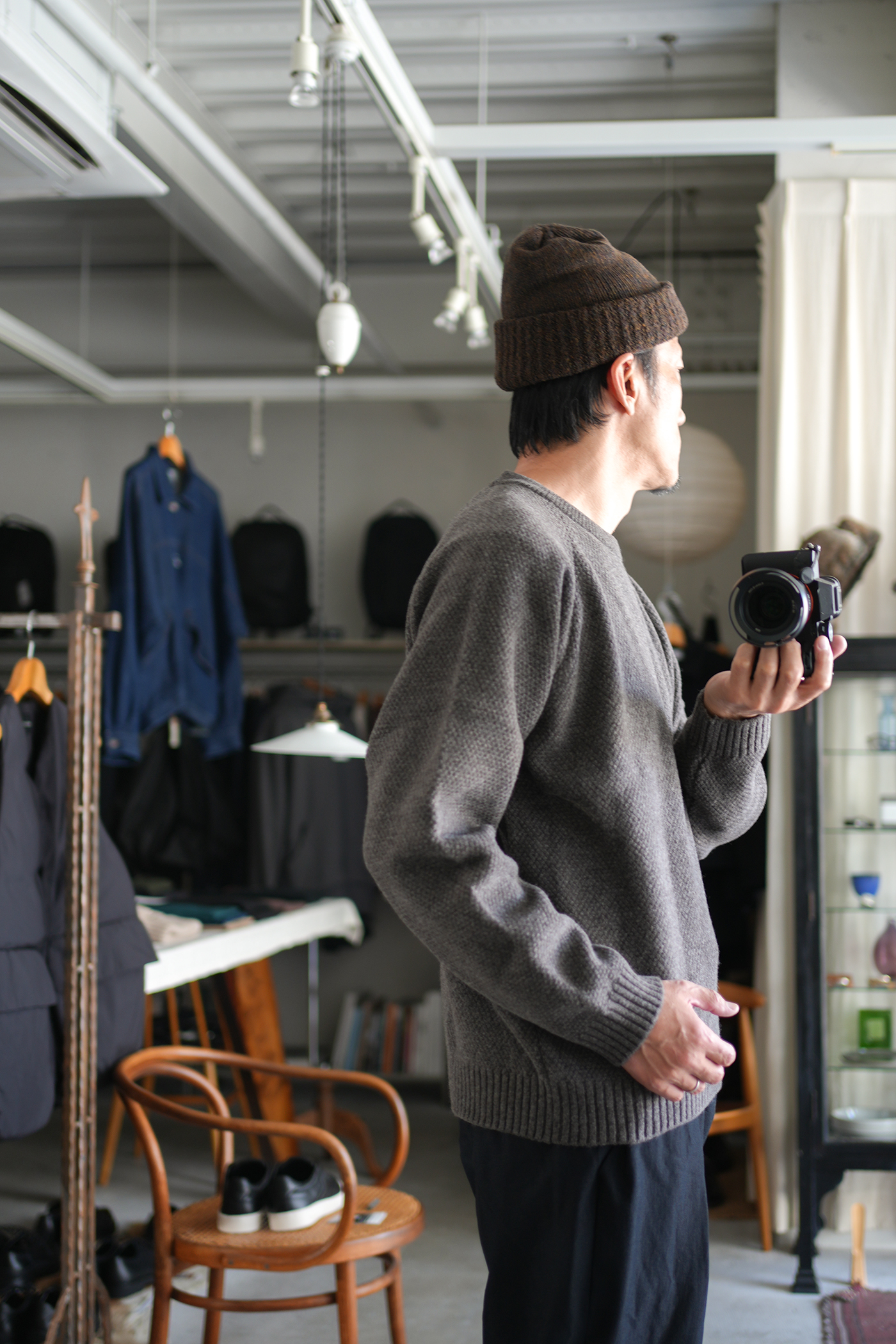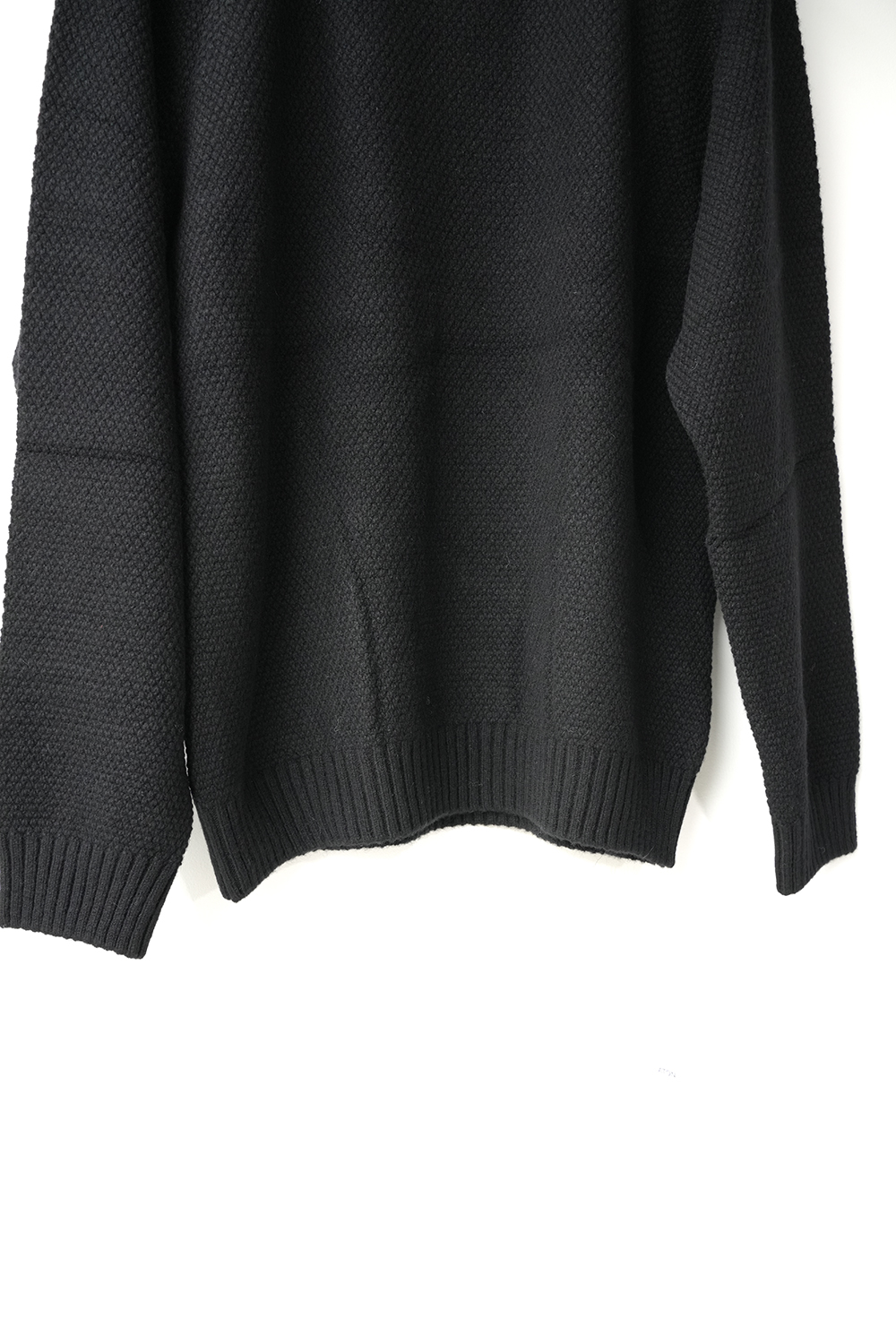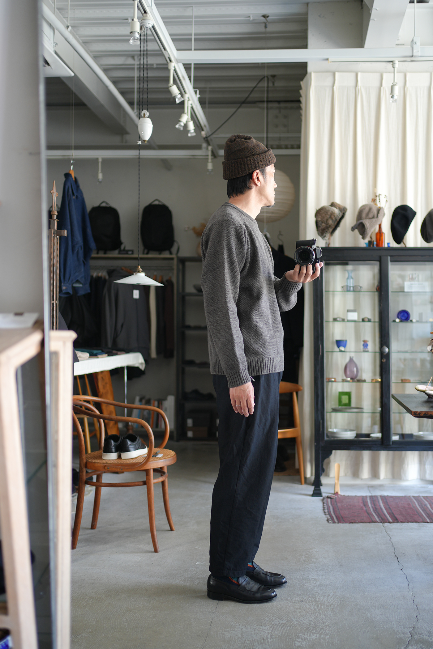 程良いリラックス感が特徴のラグランスリーブのクルーネックセーター。7ゲージを採用し、適正度目で膨らみある着心地に仕上げました。表情ある鹿の子組織が特徴です。衿は、リブダブル付けを採用しています。裾のリブが締まりすぎておらず、カットソーのようなシルエットを採用しています。オーストラリア産の、光沢がありソフトで軽く、嵩高性に富んでいるラムウールを原料とした糸を強撚にしたニット素材です。原料の特性と編地の表情感がマッチした、非常に軽く、ソフトでスポンジッシュな素材です。
