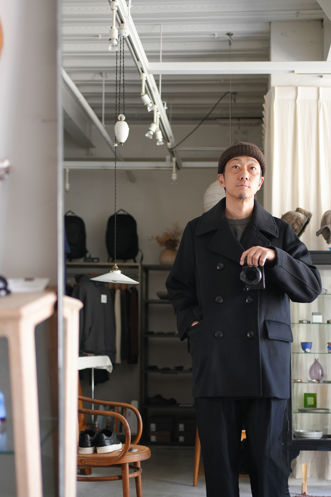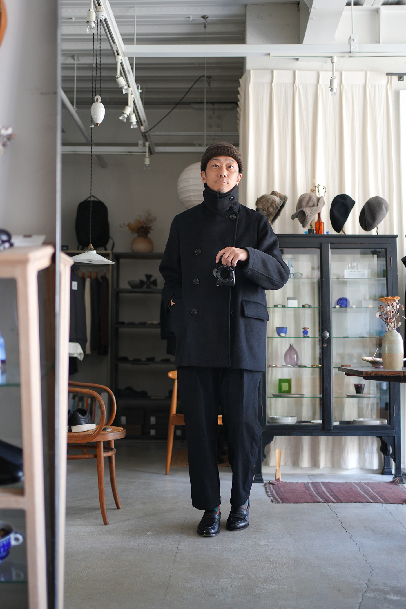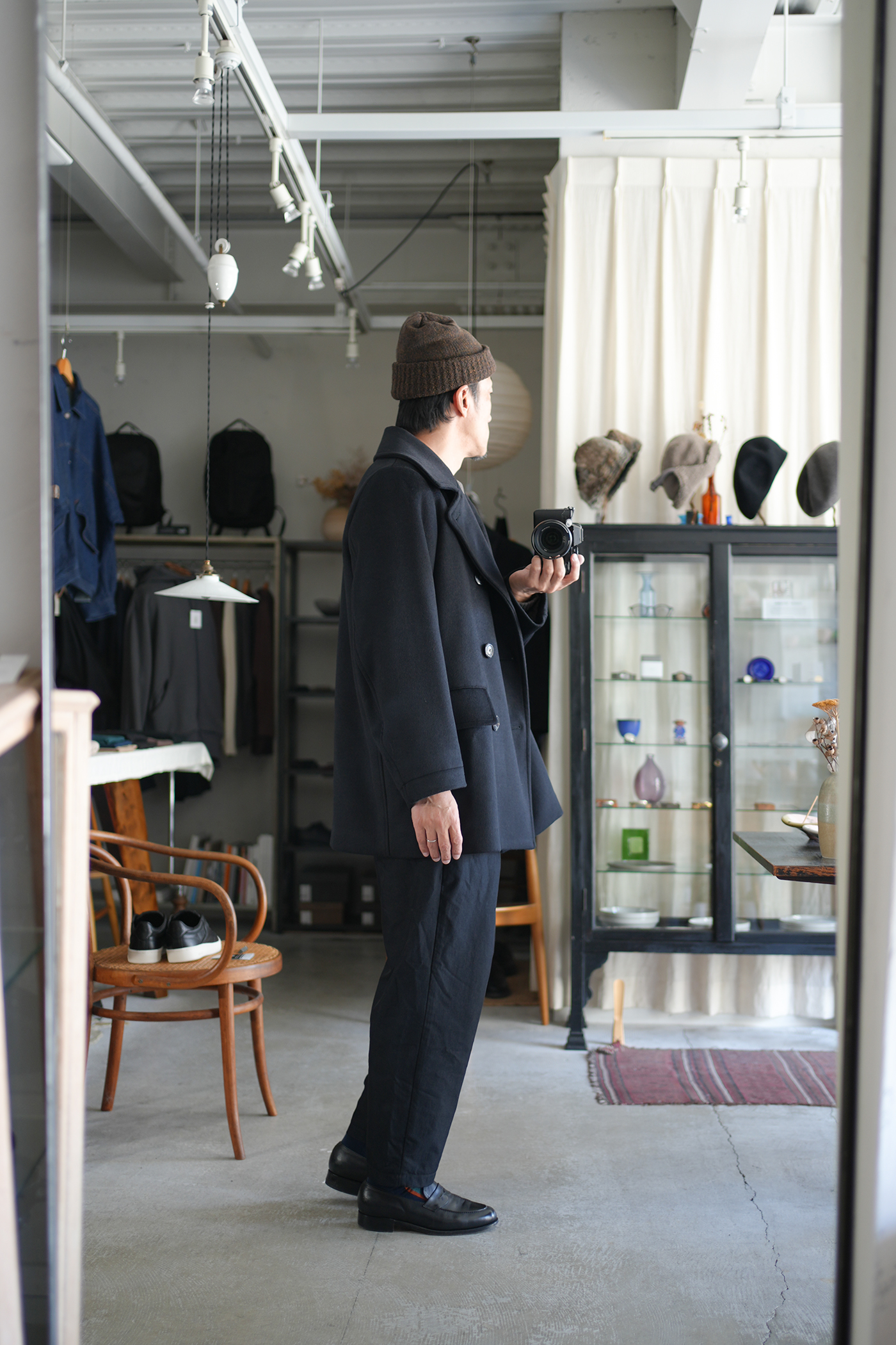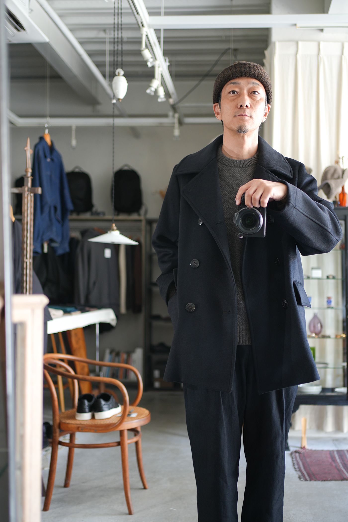 素材の良さを重視し、シンプルに作り上げた「Bridge Coat」。大ぶりな襟に合わせた大きめの本水牛ボタンを採用し、ゆったりとしたシルエットに映えるディテールを施しています。肩幅はレギュラーフィットに設定しつつ、身幅を広くとることでリラックス感と端正な印象を両立。見返し裏のチンストラップで襟を立てた着こなしも可能です。総裏にはキュプラサテンを用い、防寒性を高めるとともに快適な着心地を実現。襟には芯地を入れることで強度と立ち上がりの美しさを確保しています。上質な素材の魅力を存分に味わえる、シンプルかつ洗練されたコート。ゆったりとしたシルエットながらも端正な雰囲気を保ち、オン・オフを問わず活躍します。襟を立てたスタイルやフロントを開けた着こなしなど、シーンに合わせて表情を変えられるのも魅力。防寒性とデザイン性を兼ね備えた、永く愛用できる一着です。ウール・シルク・カシミヤの三種を絶妙に組み合わせ、繊細な起毛を施したビーバー生地。光を受けるたび、上品な艶が浮かび上がり、指先に伝わるしっとりとしたヌメリ感は、厳選された高級原料の証です。着る人の存在感を引き立て、長く愛される一着へと仕上がります。肌触りなめらか、着心地軽やか、ふんわりと一度袖を通して体験していただきたい暖かく素晴らしい素材です。