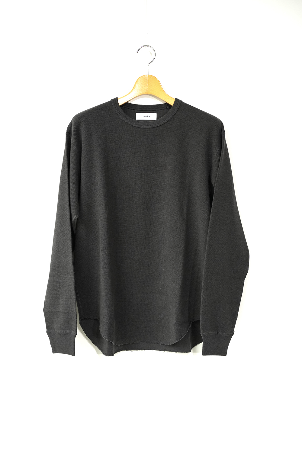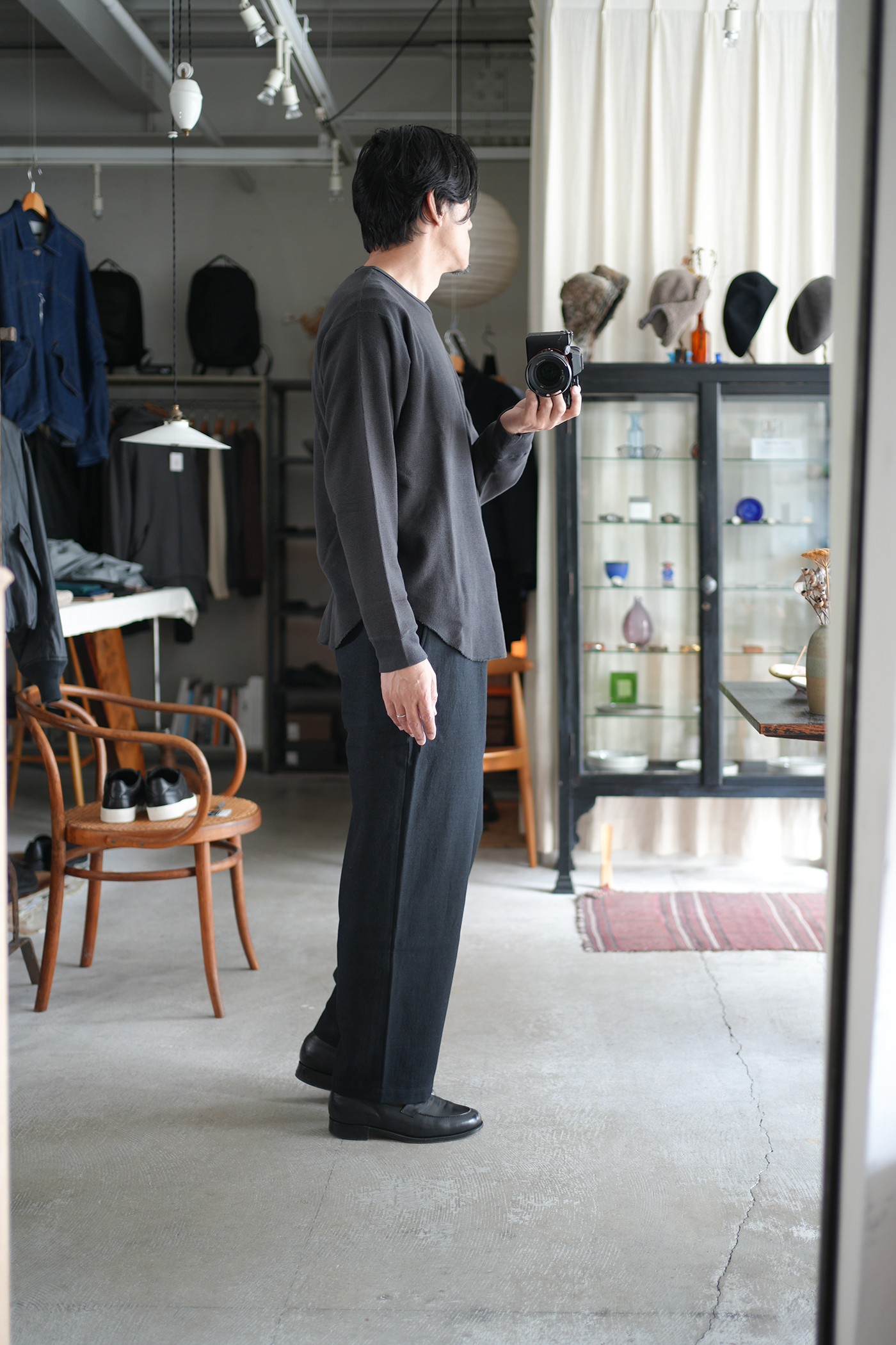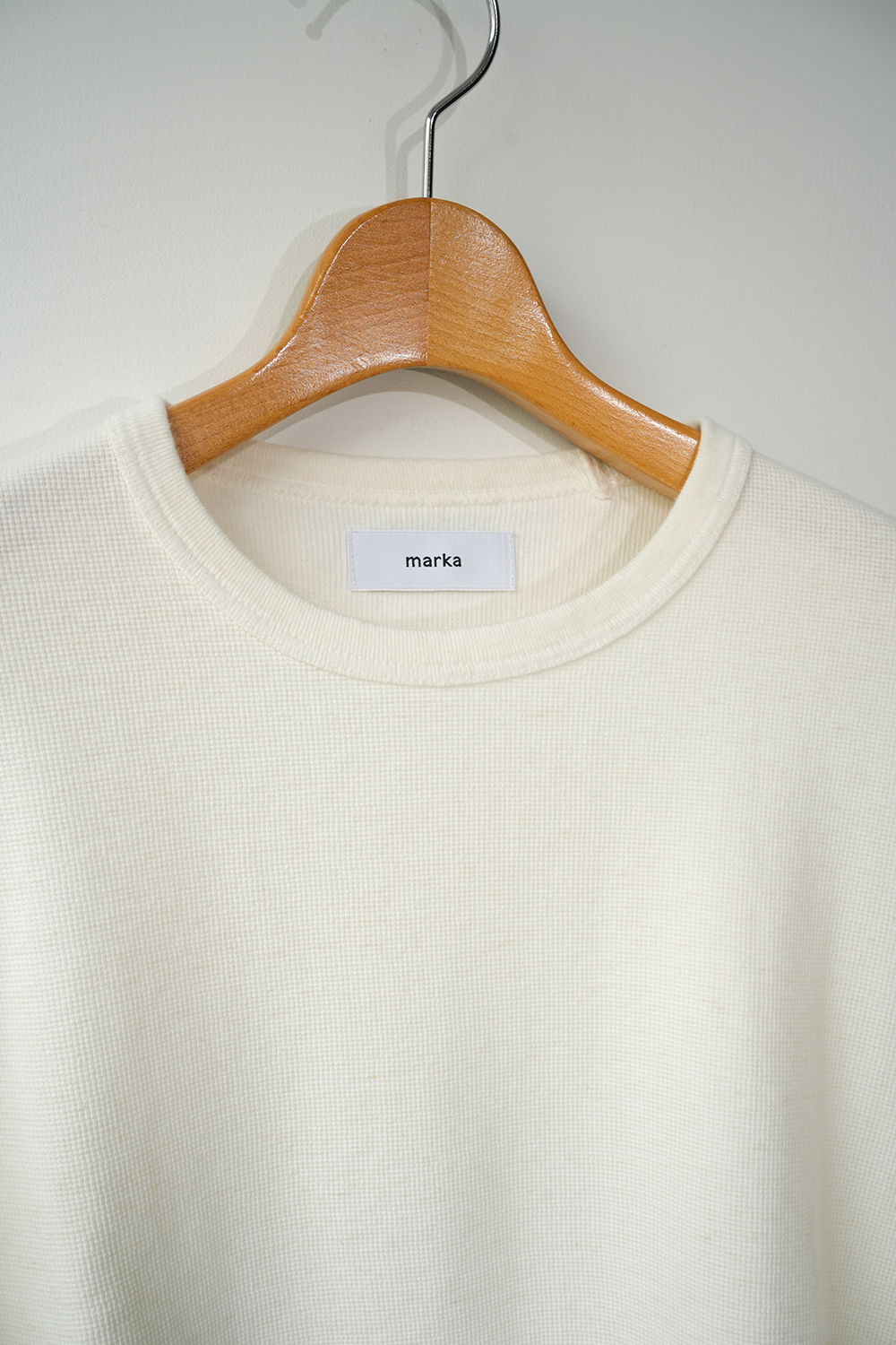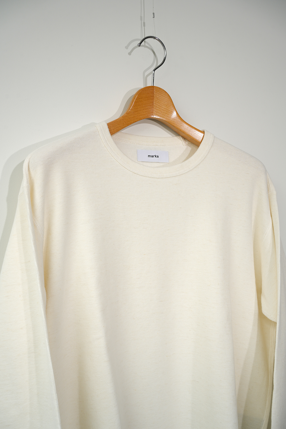 シンプルなクルーネックのロングスリーブ。肩を落としたリラックスしたシルエットで、身幅にもゆとりを持たせています。裾のロック始末や縫い目の2本針ステッチが、控えめながらも確かな存在感を加えています。自然素材ならではの豊かな風合いと、心地よい肌触りが特徴の一枚。カジュアルな装いにさりげない変化を加え、シンプルながら素材の魅力を存分に感じられます。シーズンを問わず活躍する、日常に溶け込む定番のロングスリーブです。