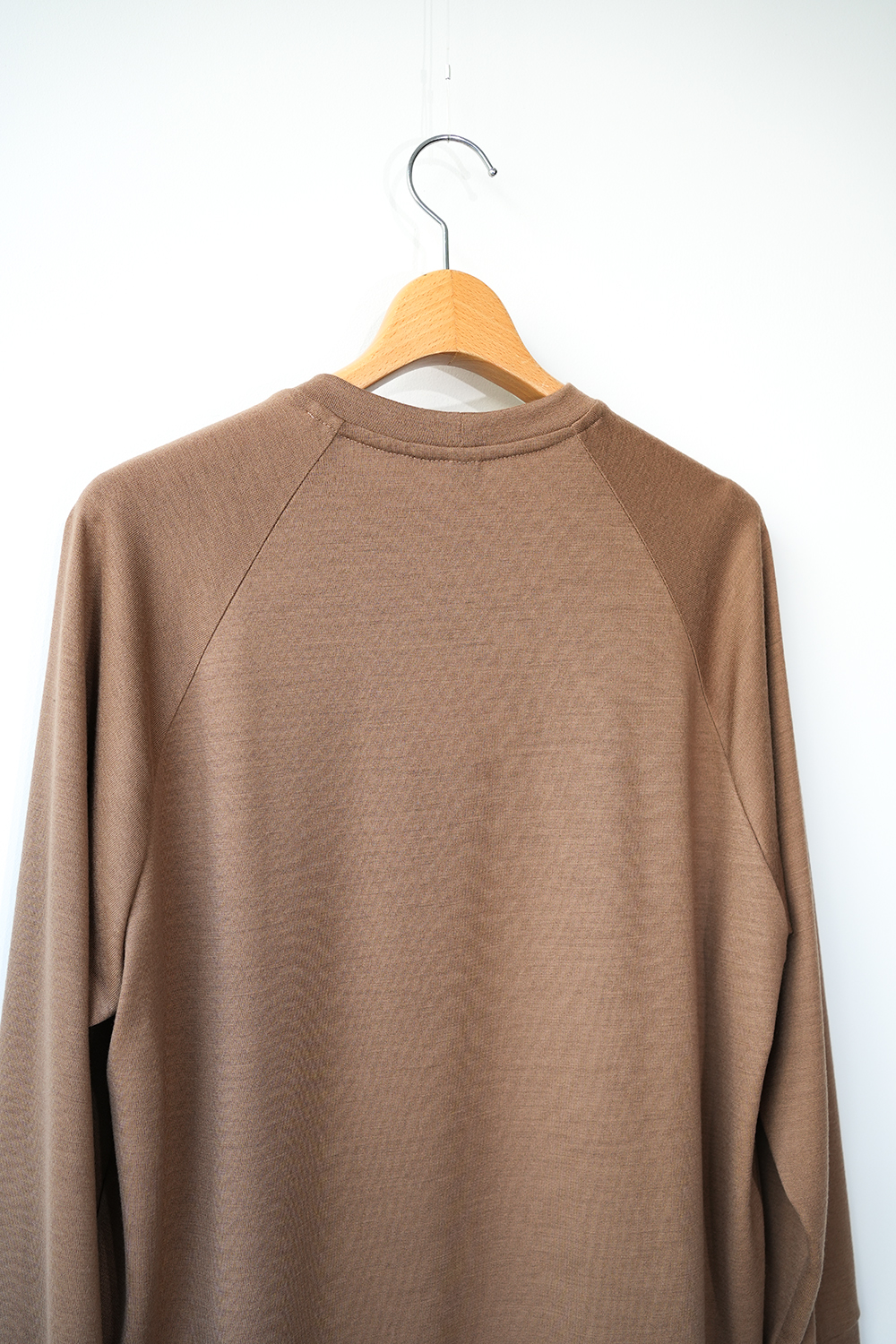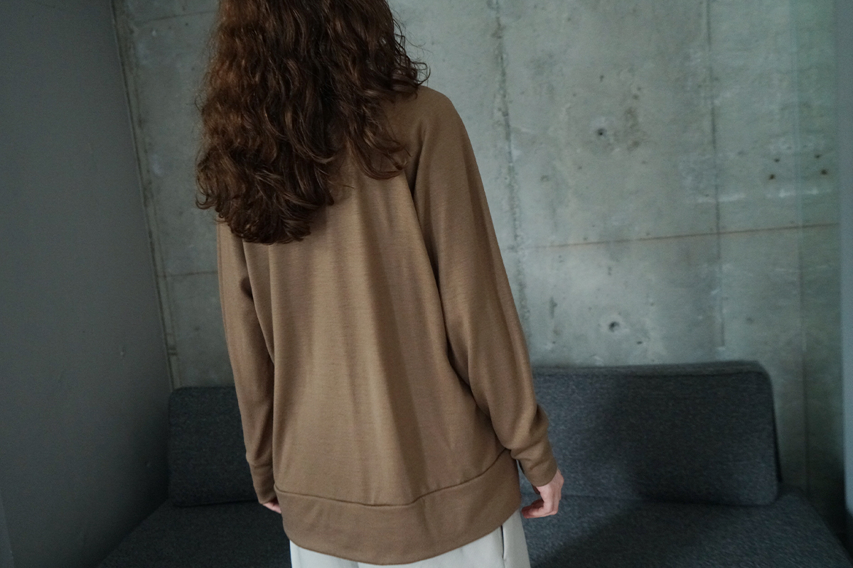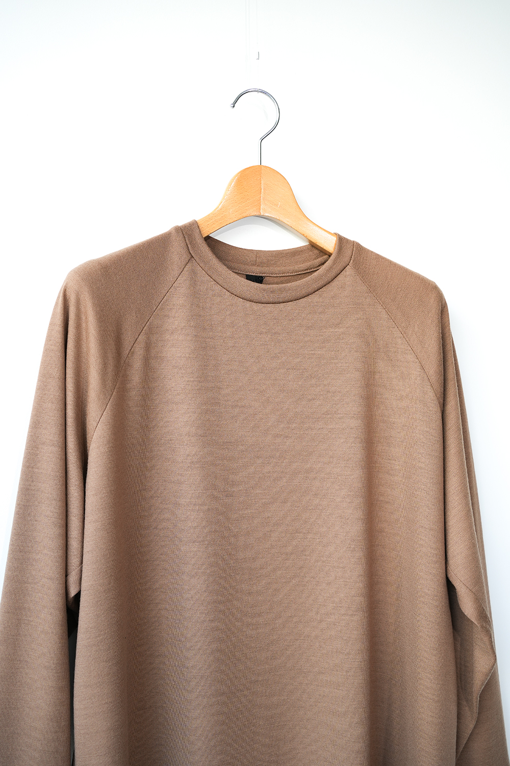 シンプルなデザインが魅力のウール素材の長袖Tシャツニット。裾と袖口には幅広めの切り替えを入れ、VUらしいミニマルなアクセントを加えています。やや肉厚で柔らかな肌ざわりのウォッシャブルウール100%の天竺カットソーを使用。ご自宅で手軽に洗えるのも嬉しいポイントです。太番手WOOLをミドル仕上げすることにより、適度な肉感とハリ感のある生地。スケールオフ加工を施すことで、高い洗濯耐性を実現しています手洗い可能、洗えるウール。