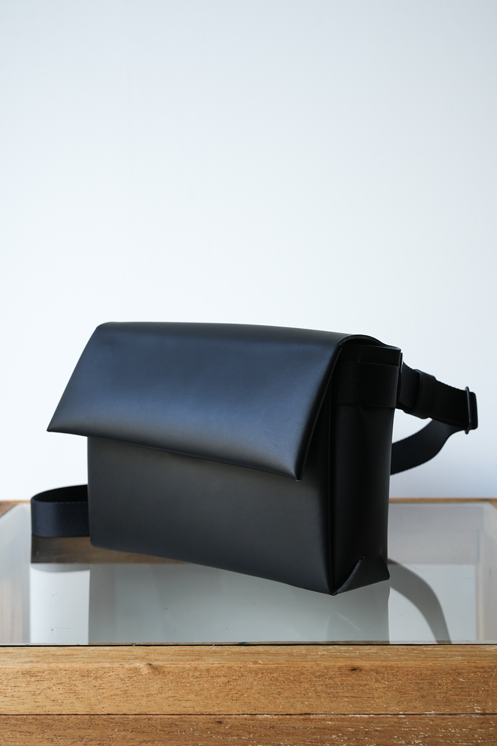 カットしたパーツを縫製せずに折り込んで組み立てたシームレスシリーズ、新型ミニショルダーバッグ。スマートフォン、財布、ポーチ、など普段使いの荷物が入る実用的で普段使いに最適なサイズ感です。前側のポケットには小物、スマートフォンなどを収納できます。高品質な人工皮革(PU素材)を使用しています。軽量で耐久性に優れており、汚れや雨にも強く、普段使いしやすい実用的な素材です。