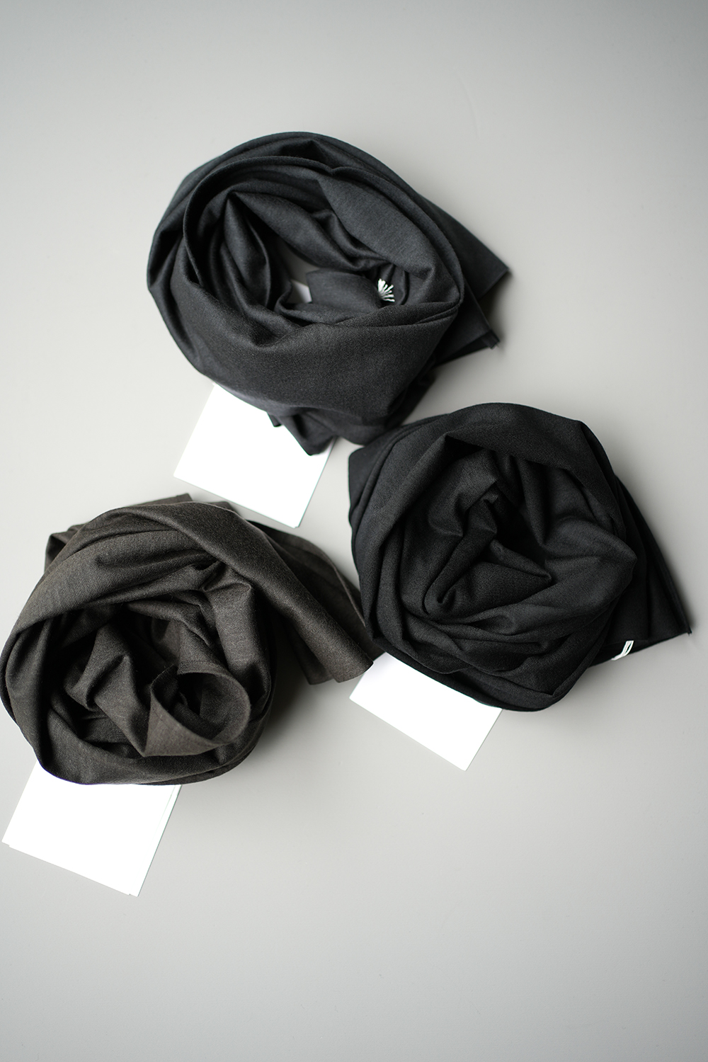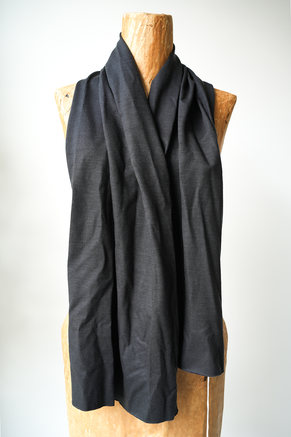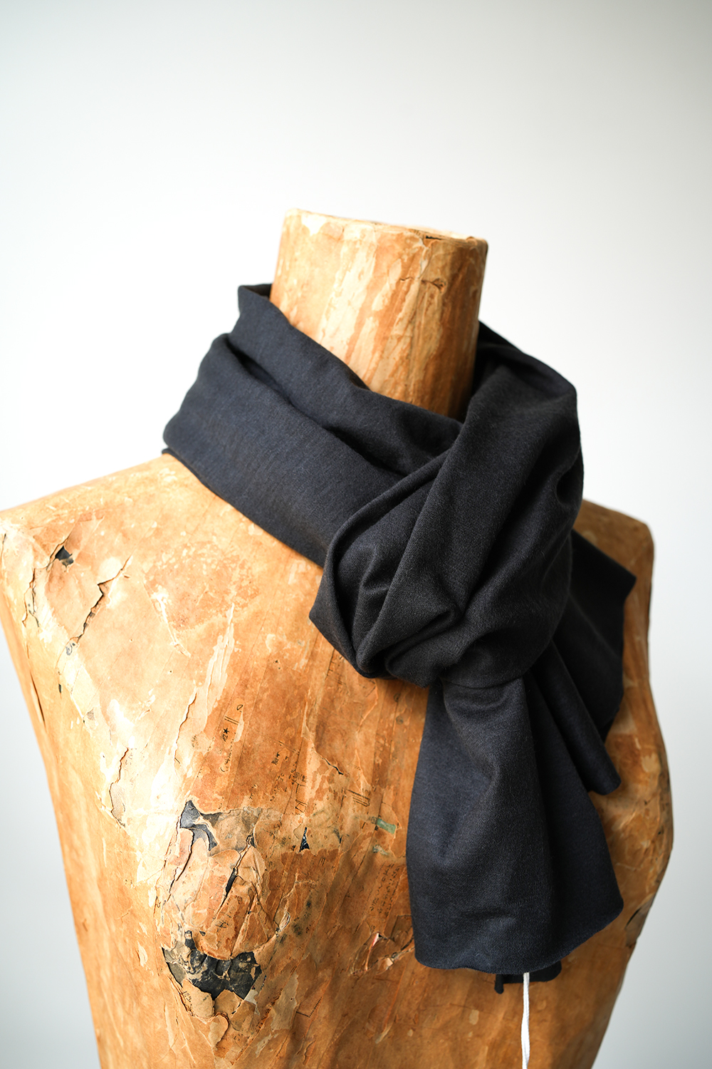 ドイツの紡績メーカーと別注で開発した丸編み用最高級カシミアを100%使用しました。最大限のしなやかさと光沢感を出しております。36ゲージ別注丸編み機で高密度にタイプライター組織に編み立てました。この機械で編める最大限の細さの糸 1/60を使用しています。また、生地での最終工程で縮絨加工をすることで軽く毛羽立たせ、ハイゲージメルトン生地を実現。高級感と粗々しさを持ち合わせたテキスタイルです。ももちろん、カシミアの機能性(軽量、保温性、抗菌性)は維持されたまま、さらりとした肌さわりとニットのストレッチ性がある今までにない高級素材。とりあえず、触ってもらえれば全てがわかるかと思います。触って着用しなければわからないこの素材。もちろん家庭洗濯可能です。洗いを繰り返すことでよる風合いが増していき、育てていくことができる素材。高級原料をデイリー使いできるようなアプローチは私たちKANEMASA PHIL.にしかできないモノづくり。※縮絨加工・・・ウールの仕上げの工程で、組織を緻密にし、また毛端を絡ませてフェルト状にすること。