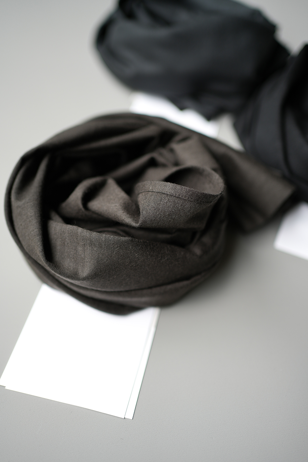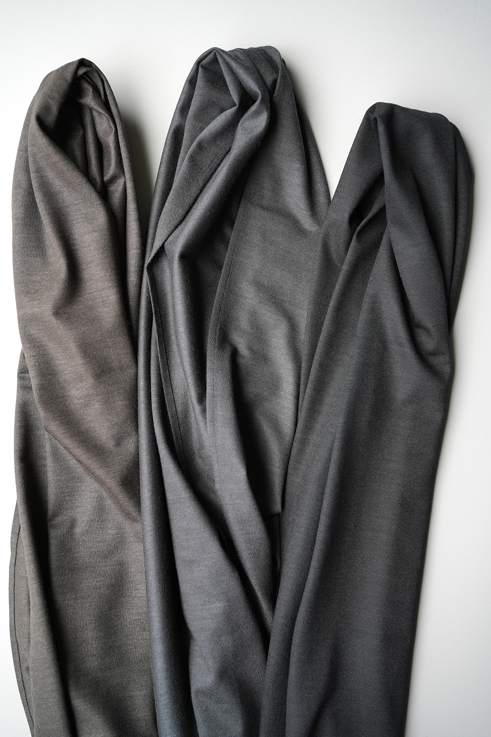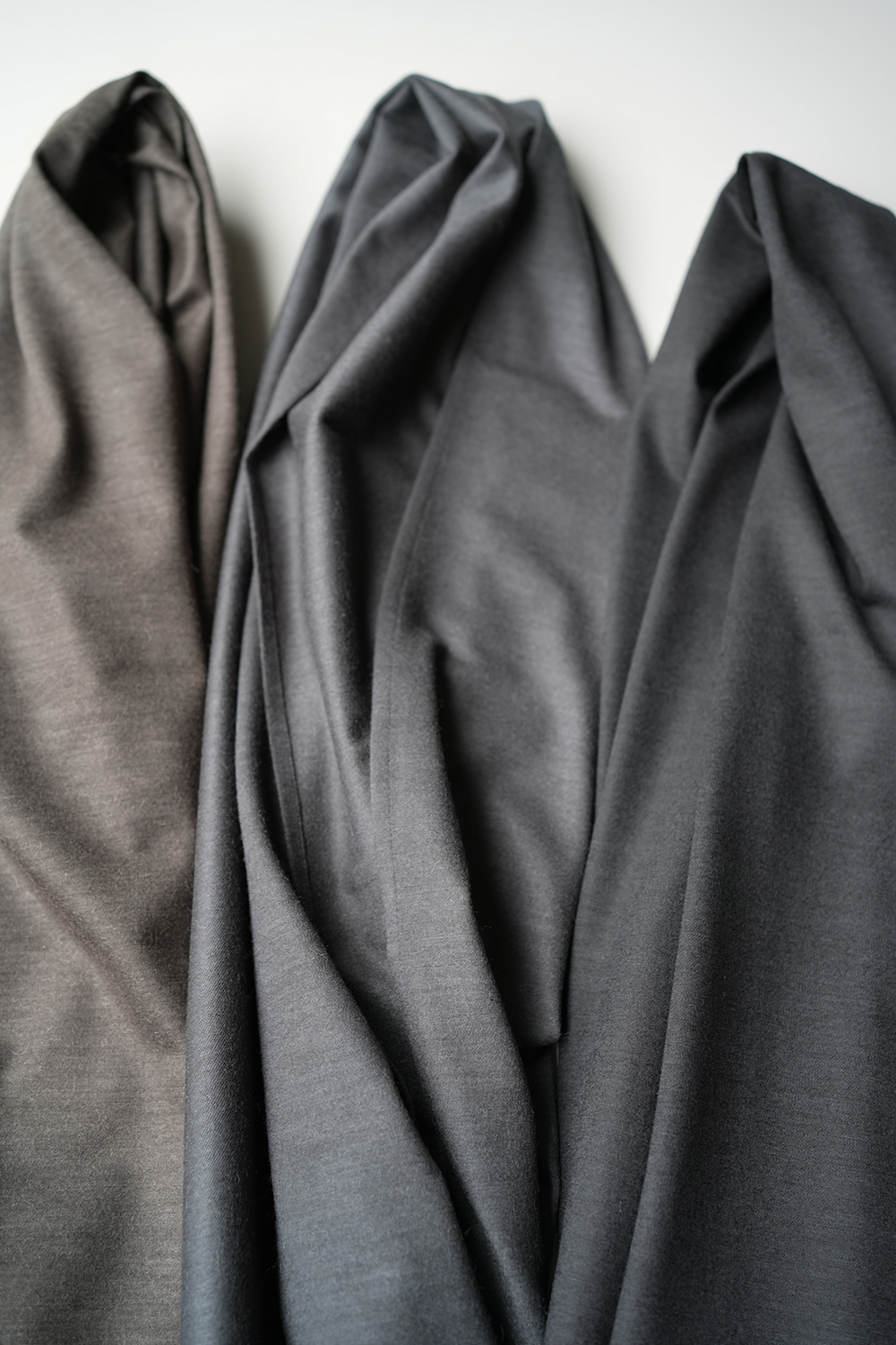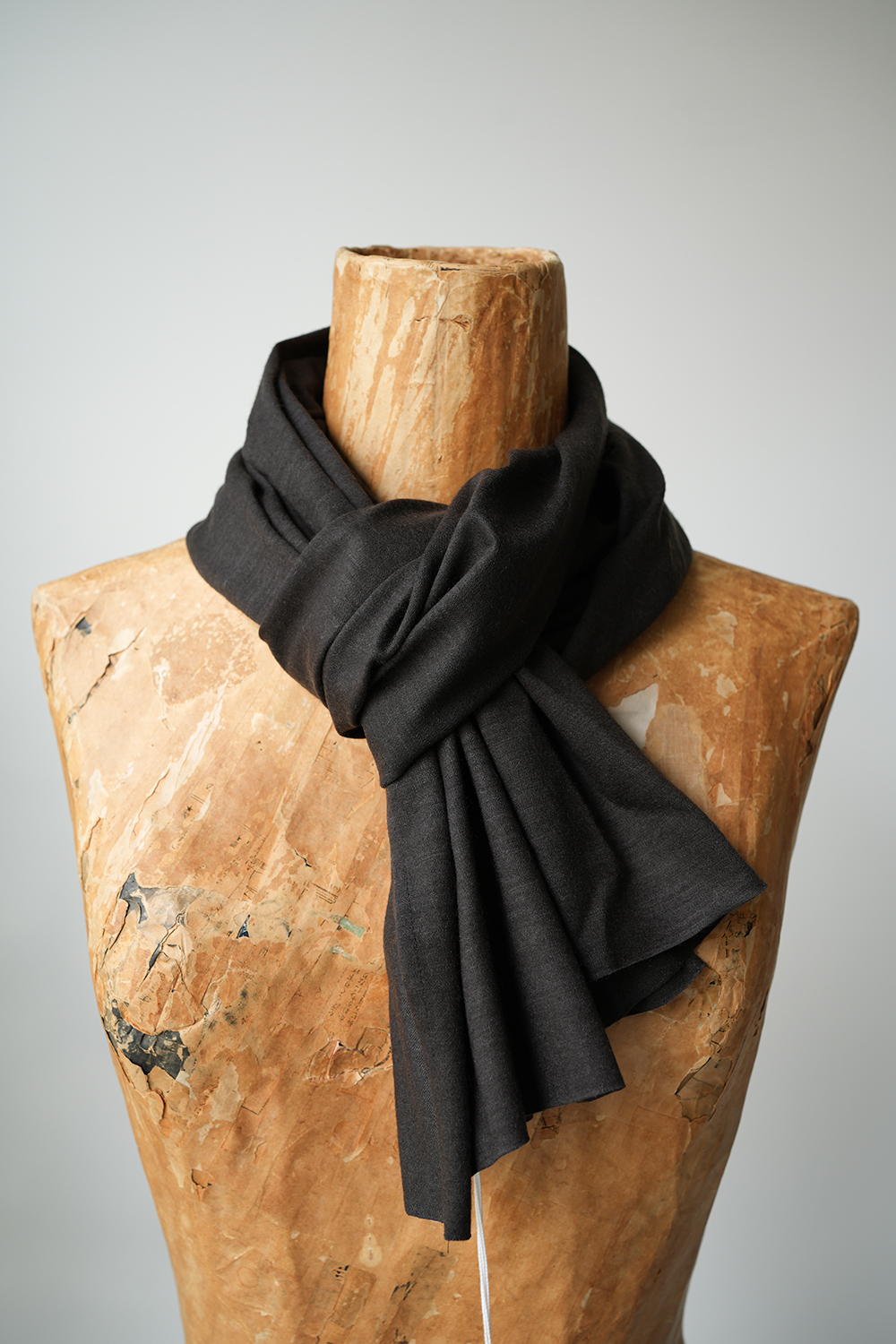 ドイツの紡績メーカーと別注で開発した丸編み用最高級カシミアを100%使用しました。最大限のしなやかさと光沢感を出しております。36ゲージ別注丸編み機で高密度にタイプライター組織に編み立てました。この機械で編める最大限の細さの糸 1/60を使用しています。また、生地での最終工程で縮絨加工をすることで軽く毛羽立たせ、ハイゲージメルトン生地を実現。高級感と粗々しさを持ち合わせたテキスタイルです。ももちろん、カシミアの機能性(軽量、保温性、抗菌性)は維持されたまま、さらりとした肌さわりとニットのストレッチ性がある今までにない高級素材。とりあえず、触ってもらえれば全てがわかるかと思います。触って着用しなければわからないこの素材。もちろん家庭洗濯可能です。洗いを繰り返すことでよる風合いが増していき、育てていくことができる素材。高級原料をデイリー使いできるようなアプローチは私たちKANEMASA PHIL.にしかできないモノづくり。※縮絨加工・・・ウールの仕上げの工程で、組織を緻密にし、また毛端を絡ませてフェルト状にすること。